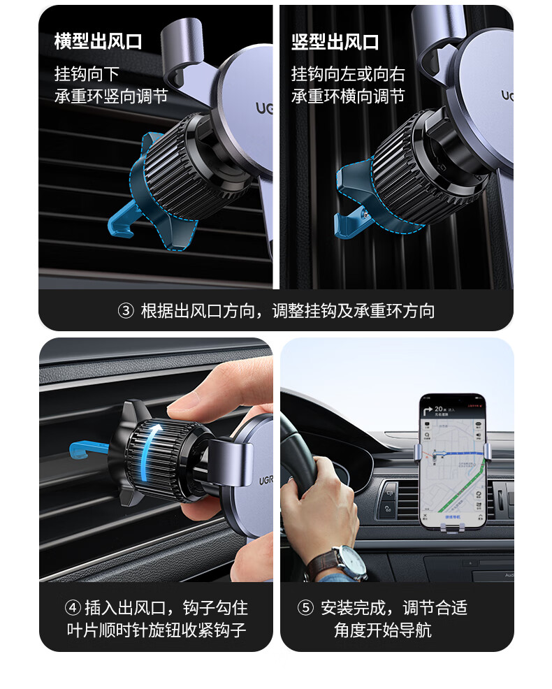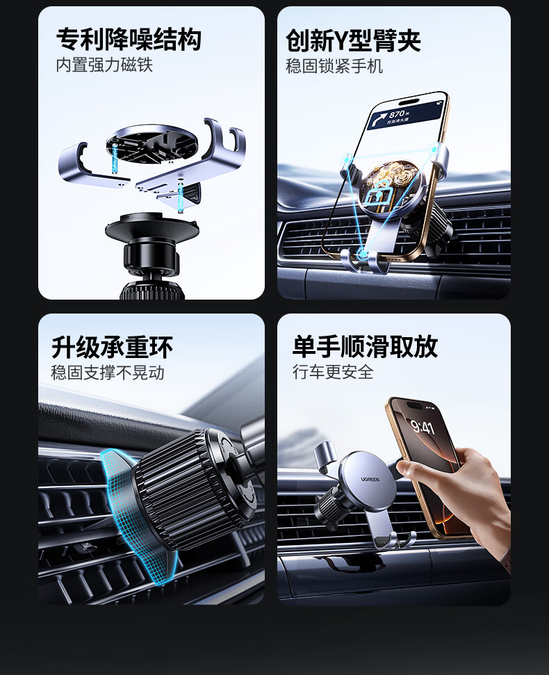 绿联车载手机支架汽车导航车用手机架出风口多功能夹适用苹果17手机