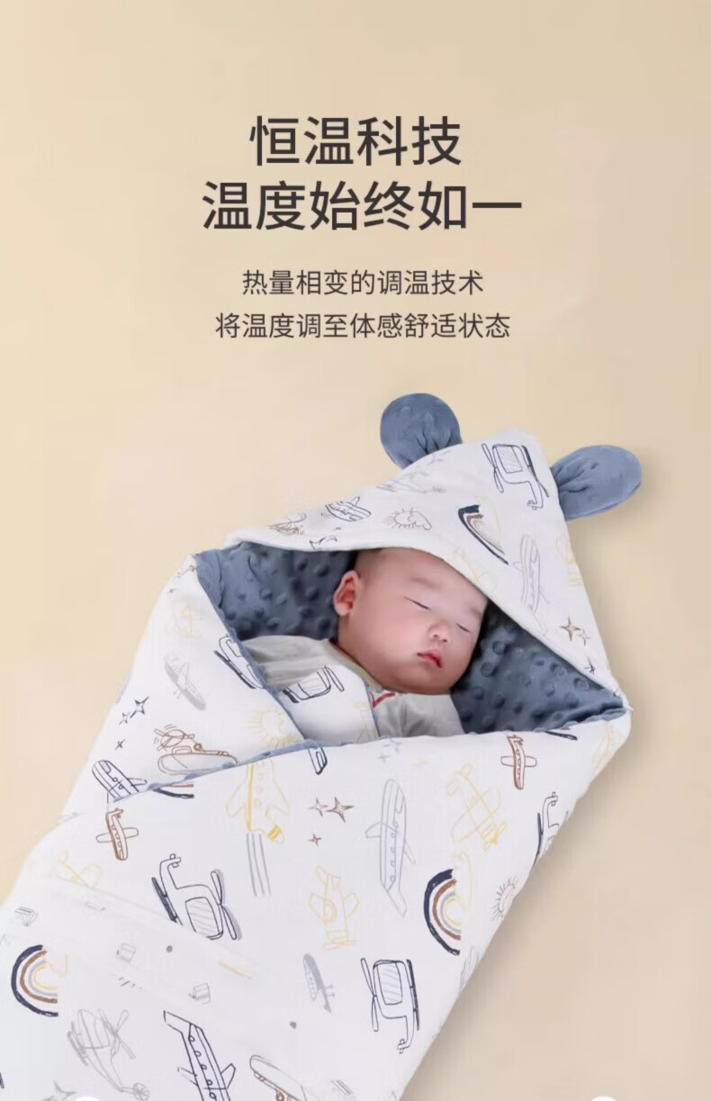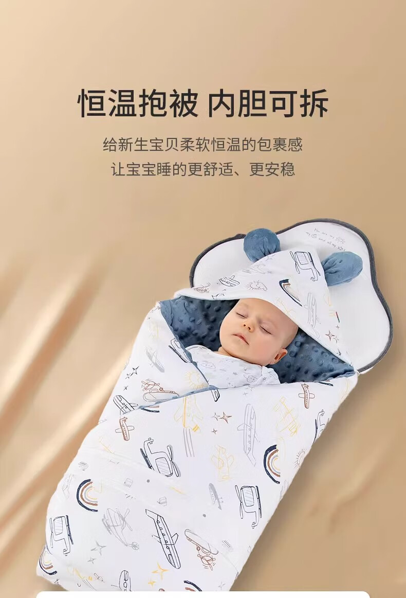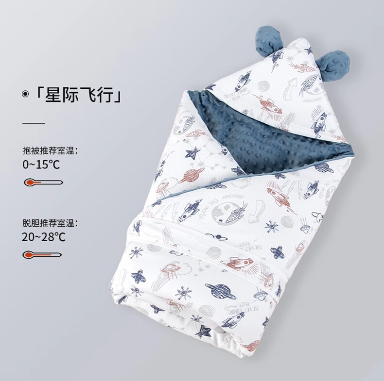 AILUKI日本高端婴儿包被四季款新生儿加厚抱毯宝宝防惊跳产房被子 秋冬加厚【星际飞行】
