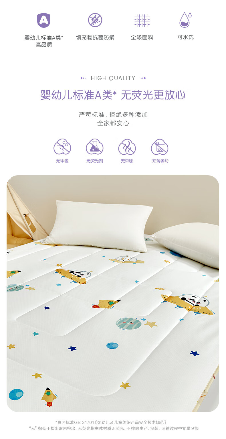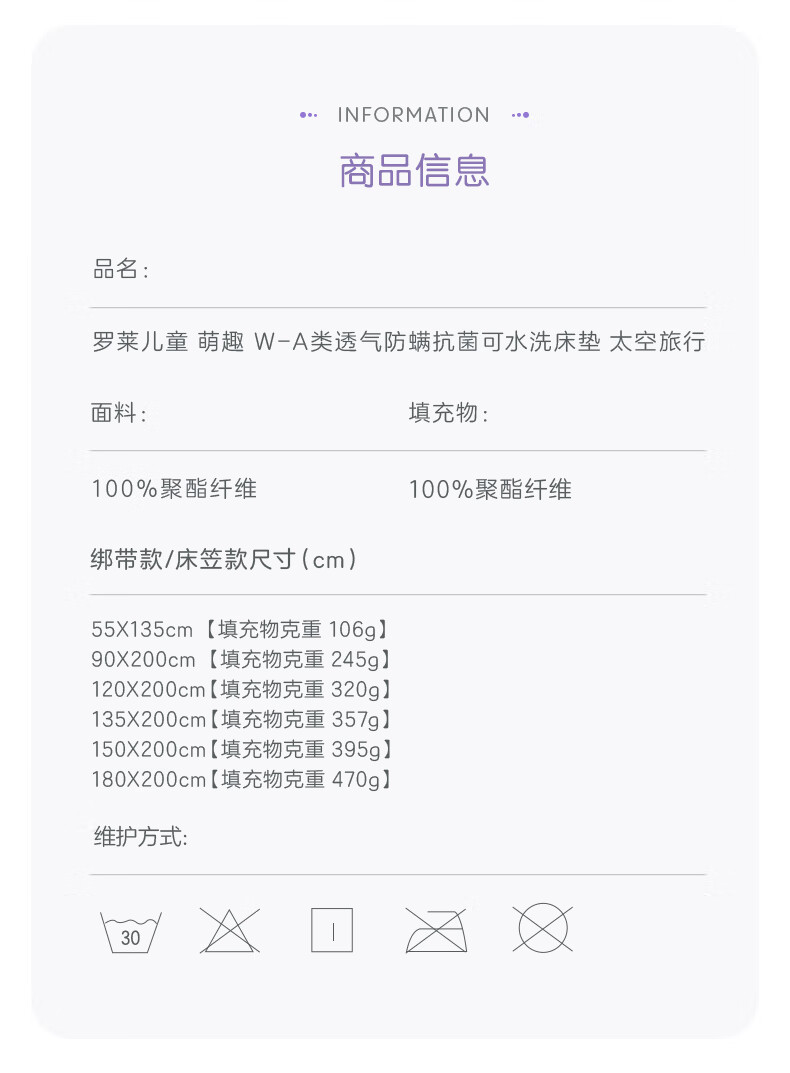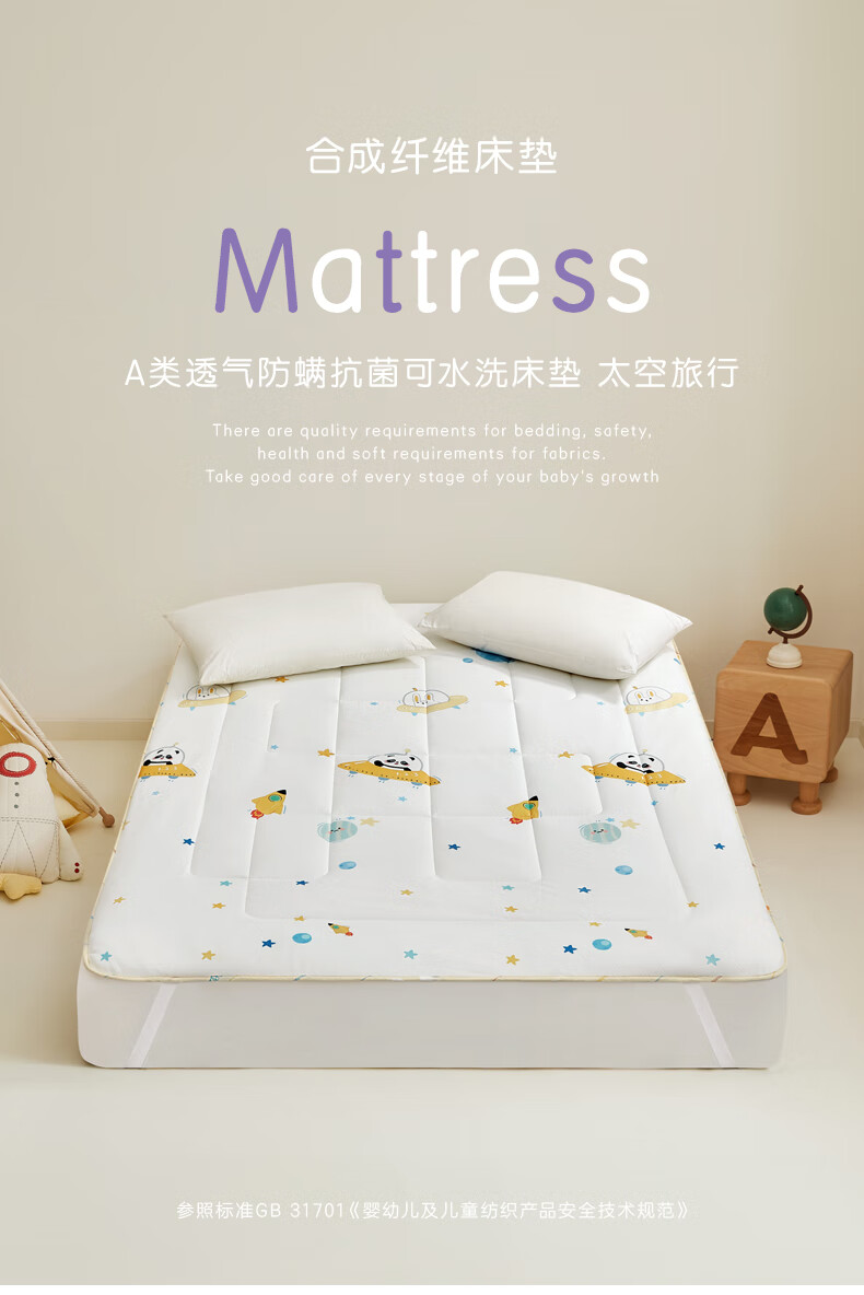 罗莱家纺儿童床垫A类抗菌防螨透气床垫褥舒适护脊垫子 【婴幼儿A类+防螨抗菌】床垫-太空旅行 55*135cm