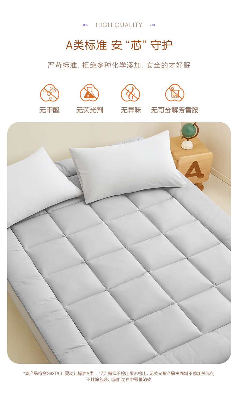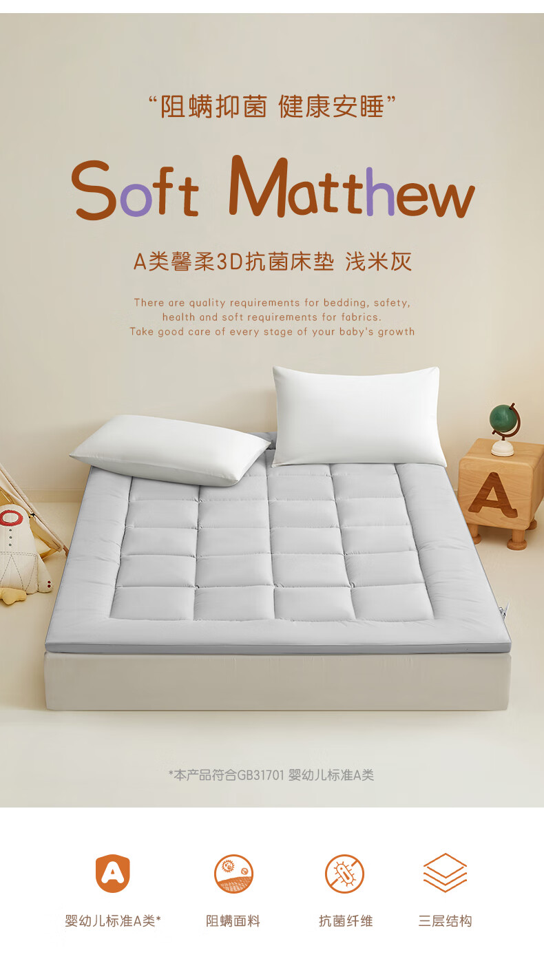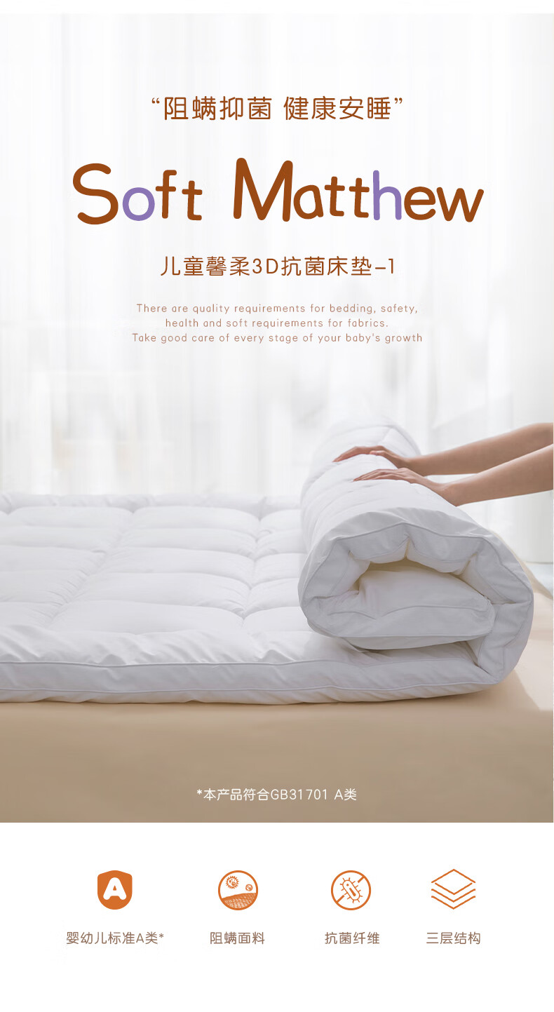 罗莱家纺儿童床垫A类抗菌防螨透气床垫褥舒适护脊垫子 【婴幼儿A类+防螨抗菌】床垫-太空旅行 55*135cm