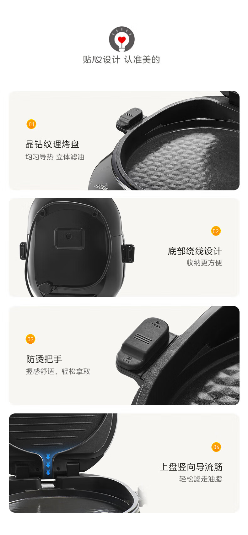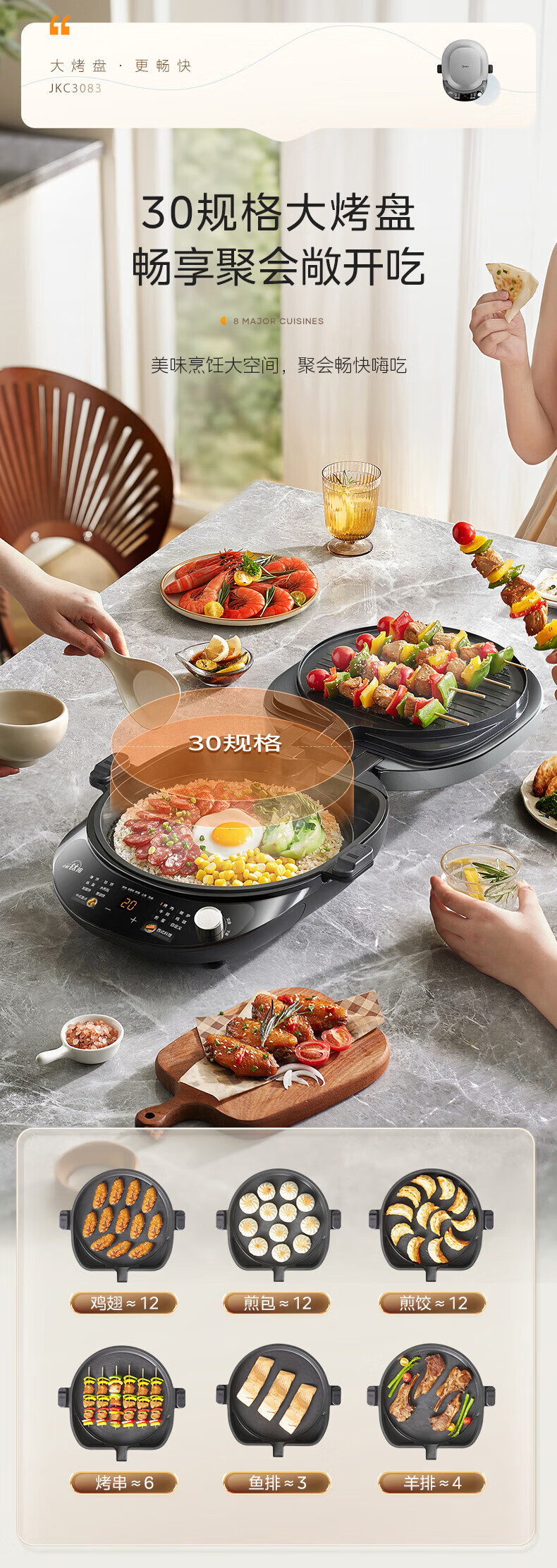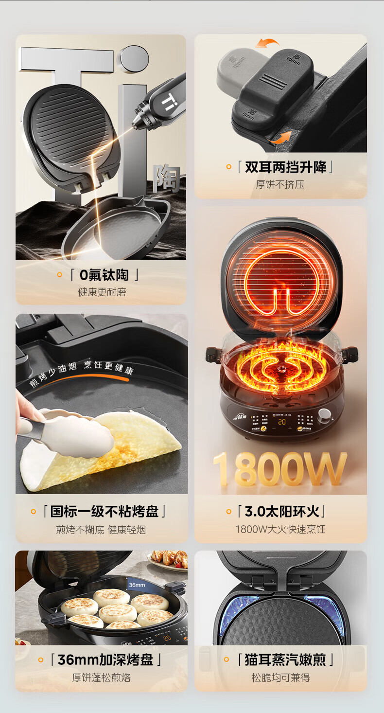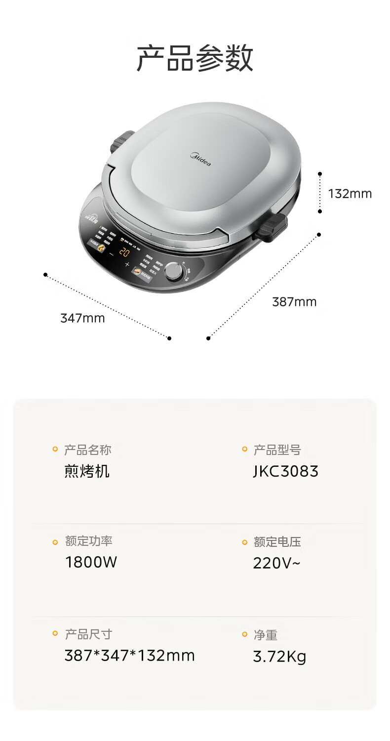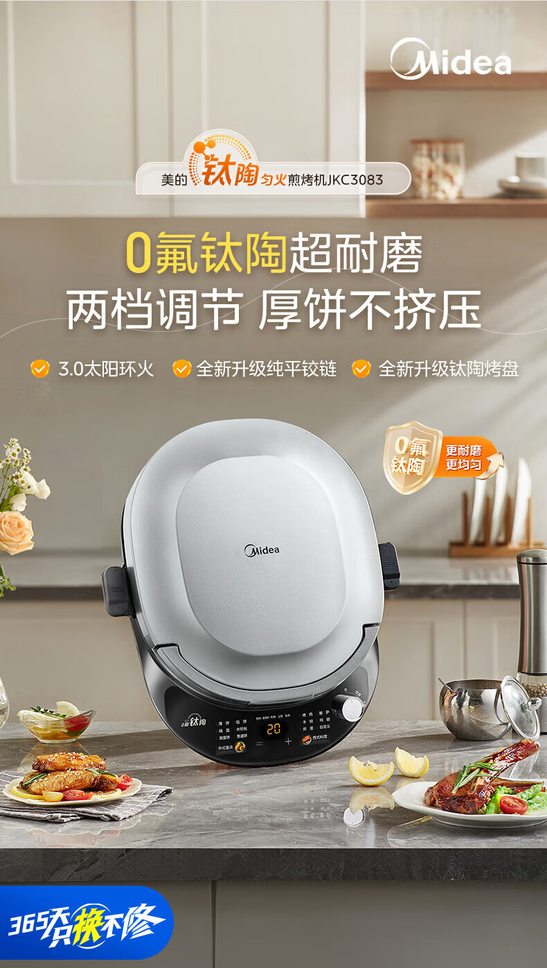 美的(Midea)钛陶电饼铛 30cm烤盘煎饼锅家用双面加热煎烤机烙饼大尺寸加深烤盘上下盘可拆洗早餐机烤肉电饼档 钛陶健康涂层丨三环加热