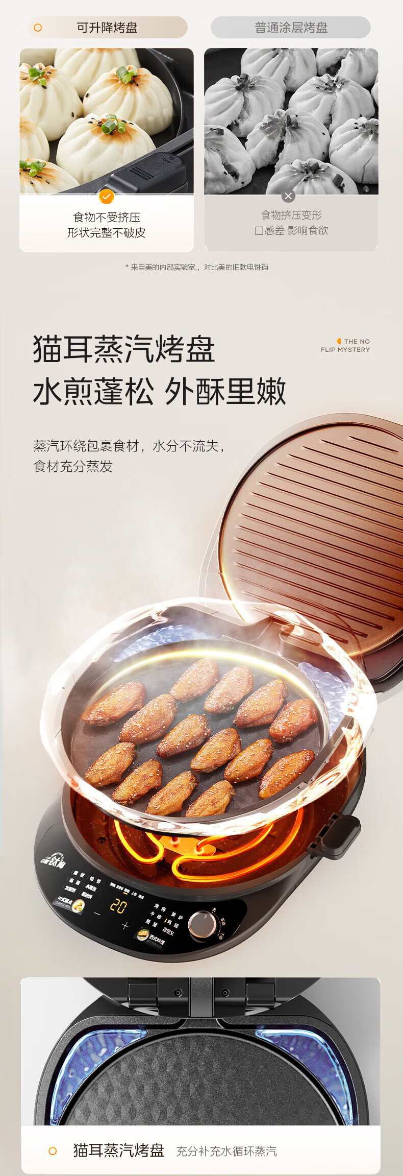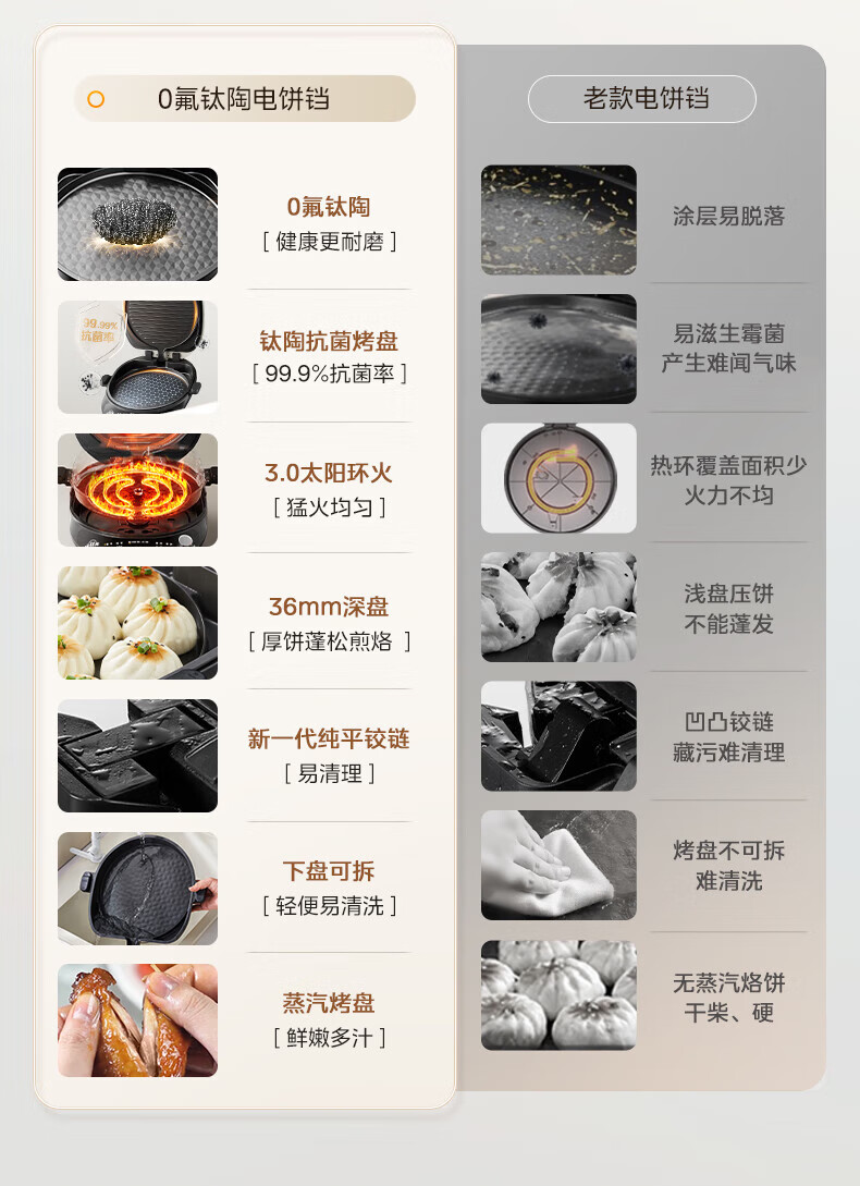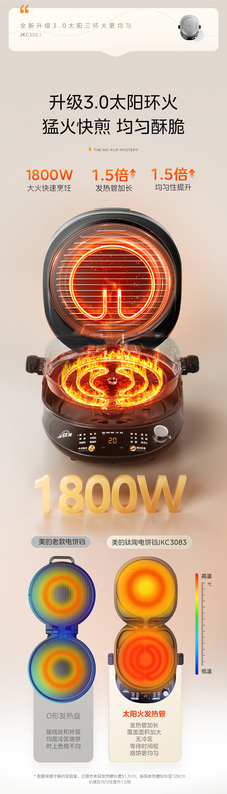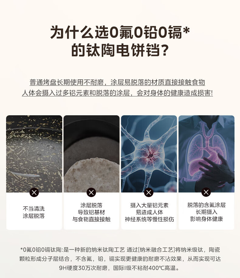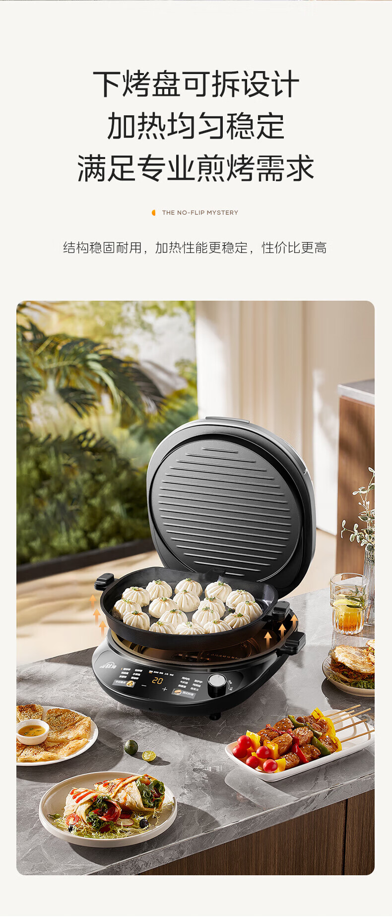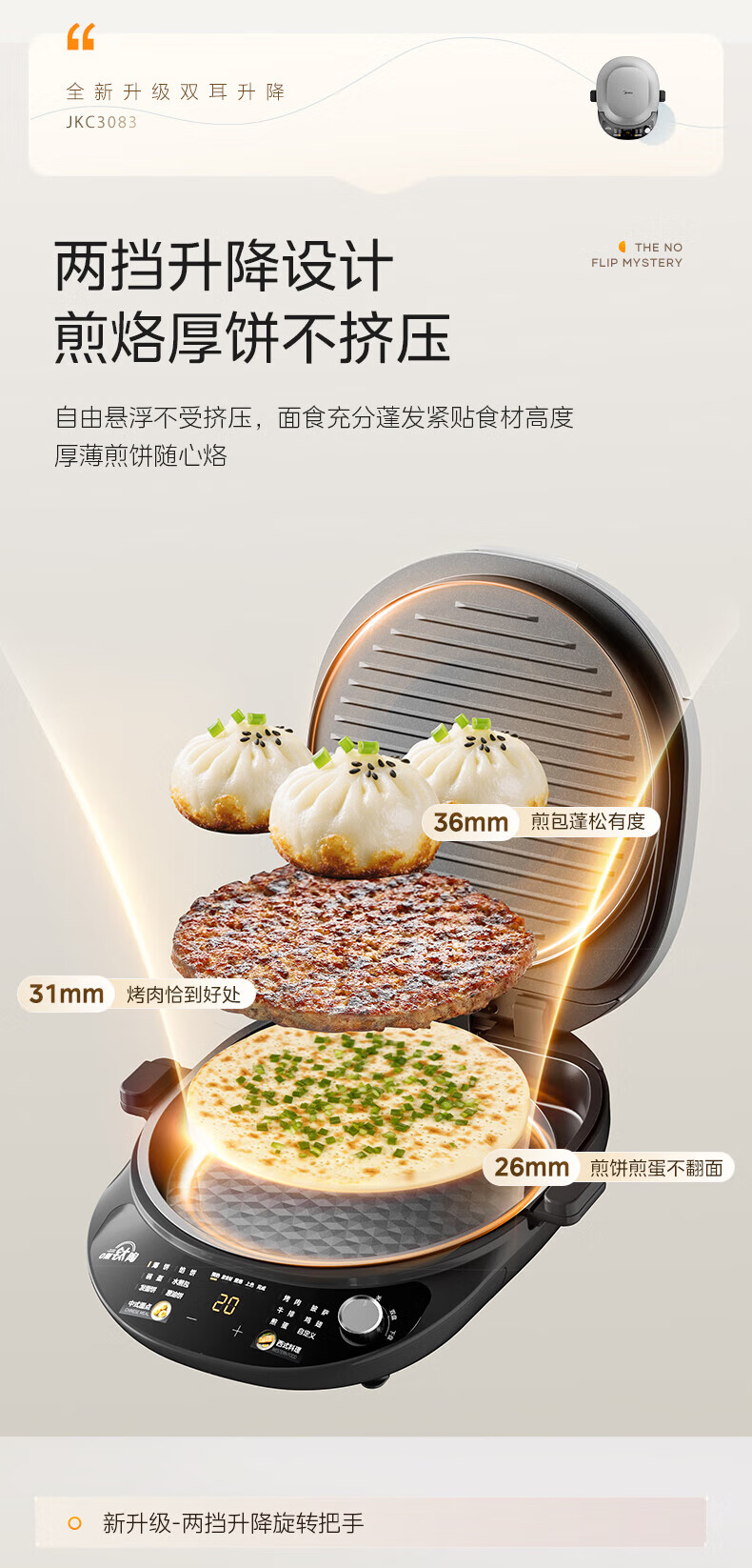 美的(Midea)钛陶电饼铛 30cm烤盘煎饼锅家用双面加热煎烤机烙饼大尺寸加深烤盘上下盘可拆洗早餐机烤肉电饼档 钛陶健康涂层丨三环加热