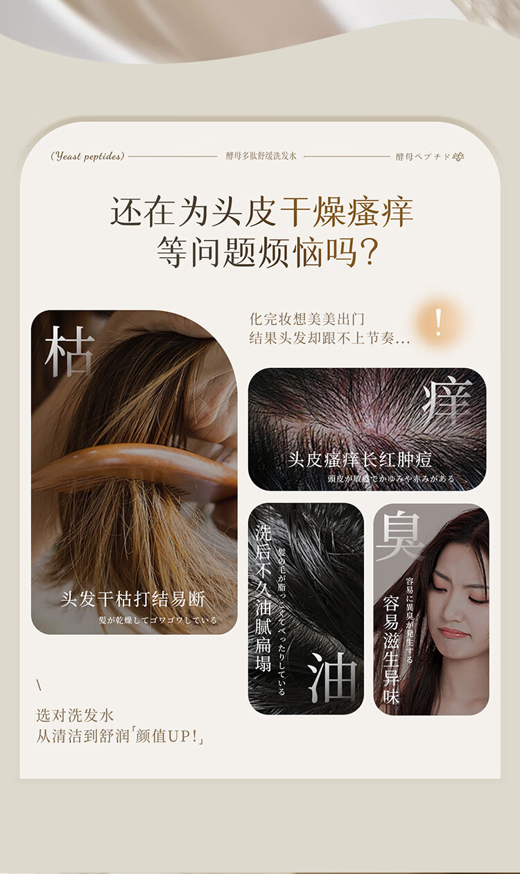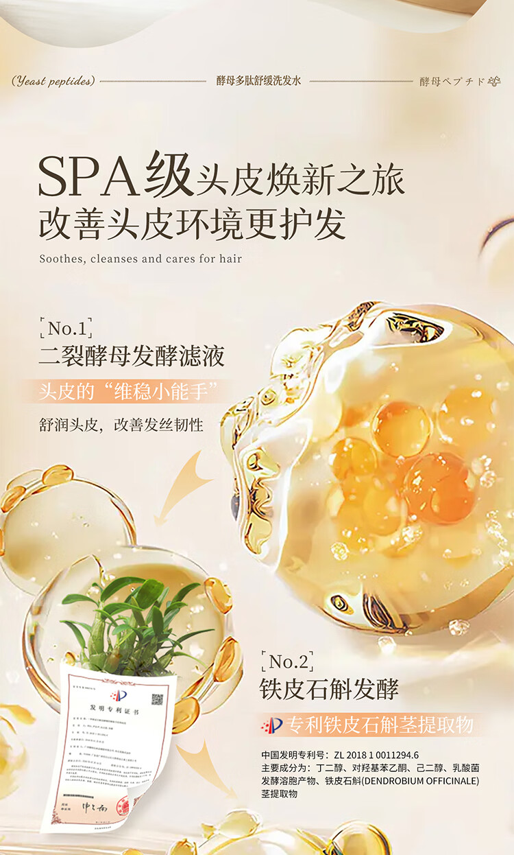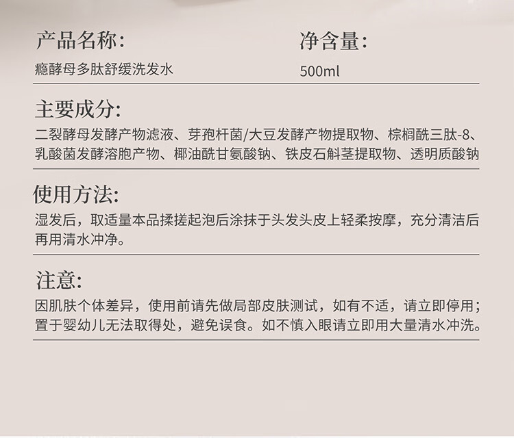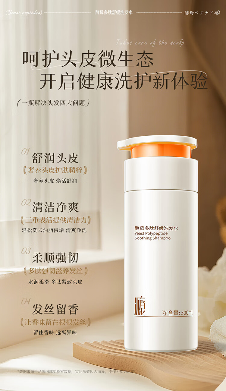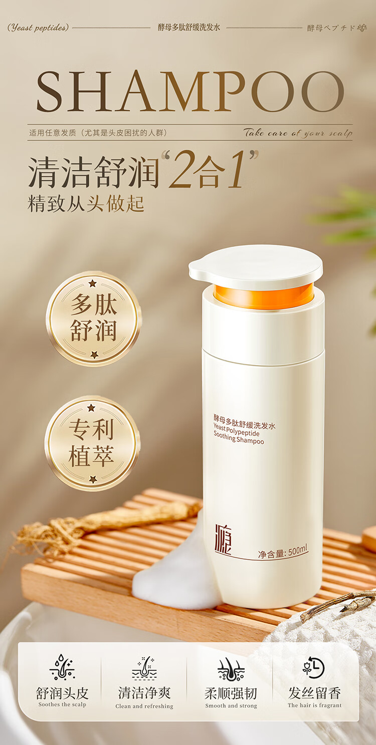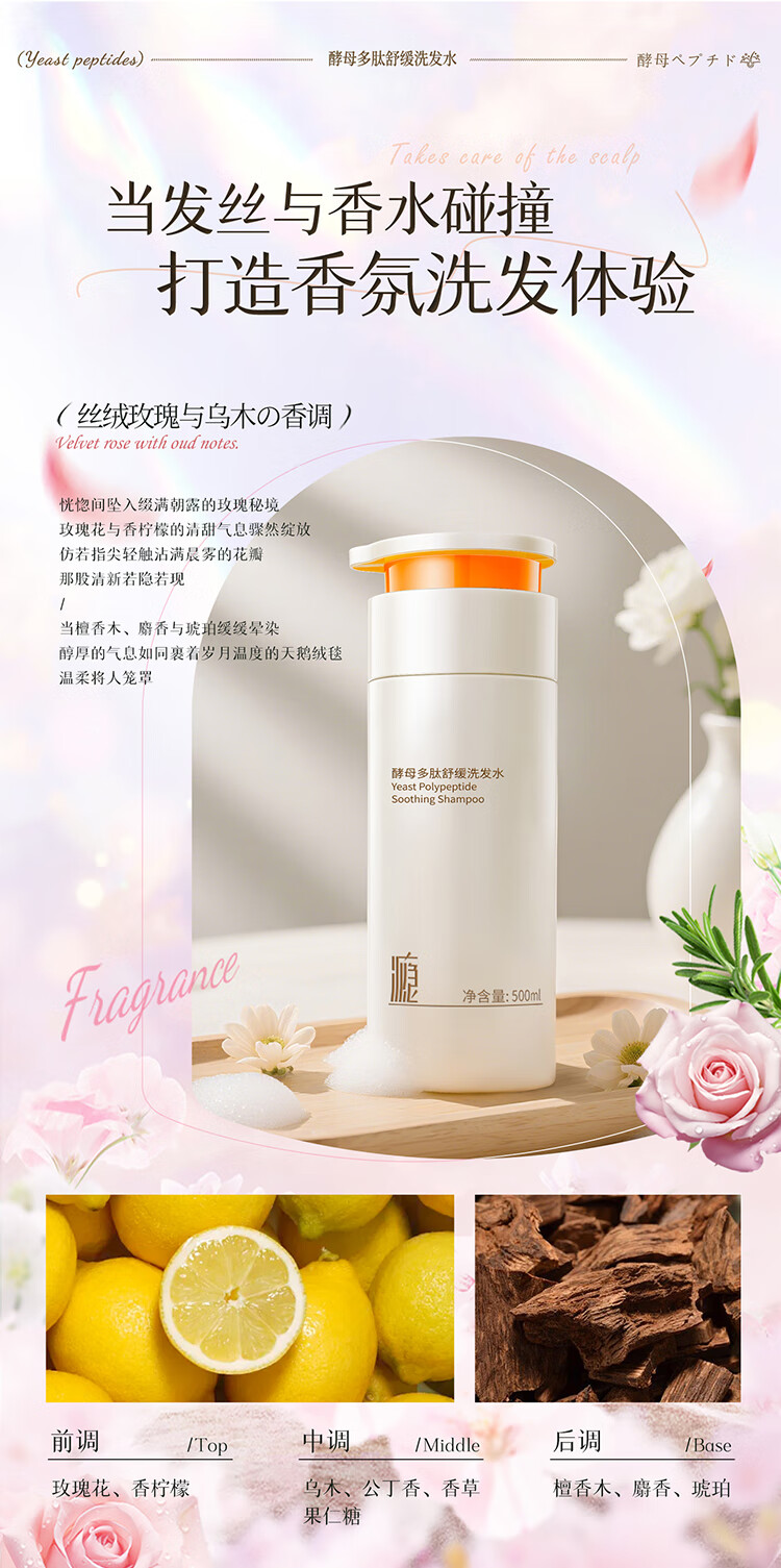 瘾酵母多肽舒缓洗发水改善毛躁干枯持久留香72H男女士洗头膏液500ml