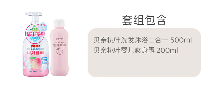 贝亲(Pigeon)贝亲桃叶精华洗护组( 爽身露200ml+洗发沐浴二合一 500ml)