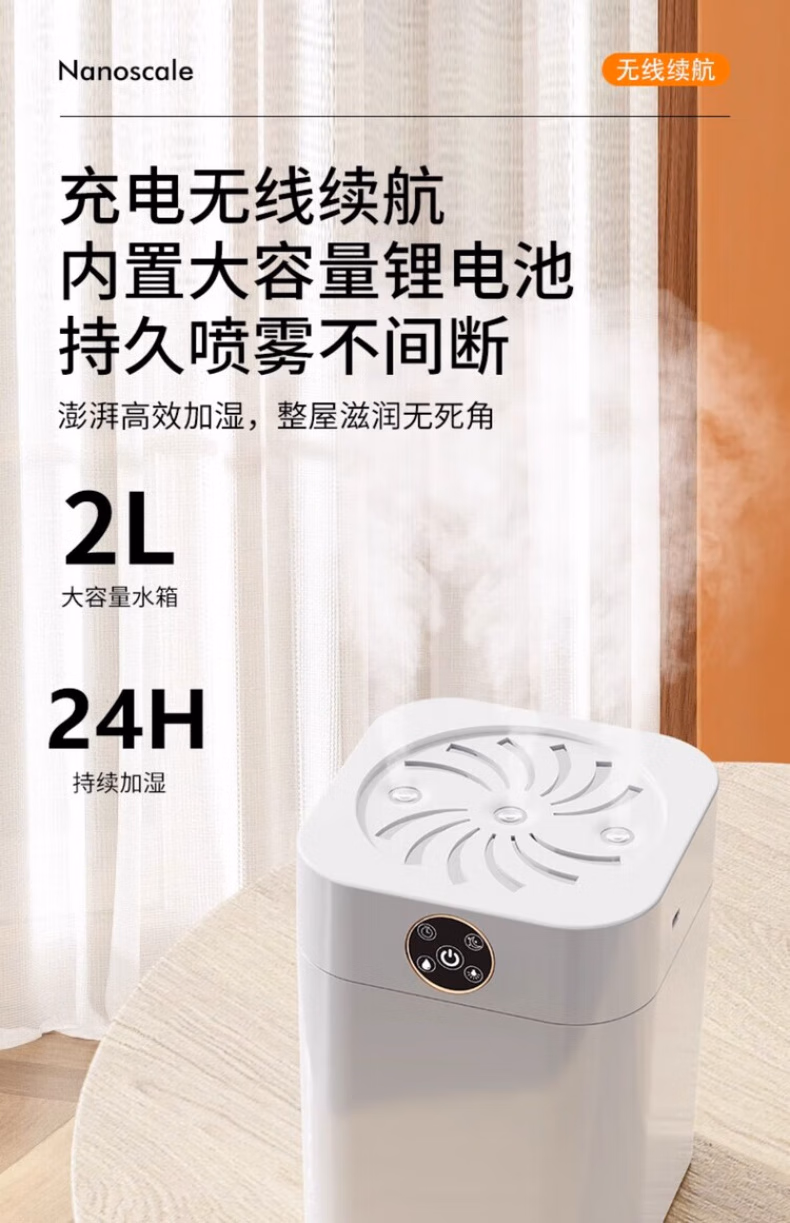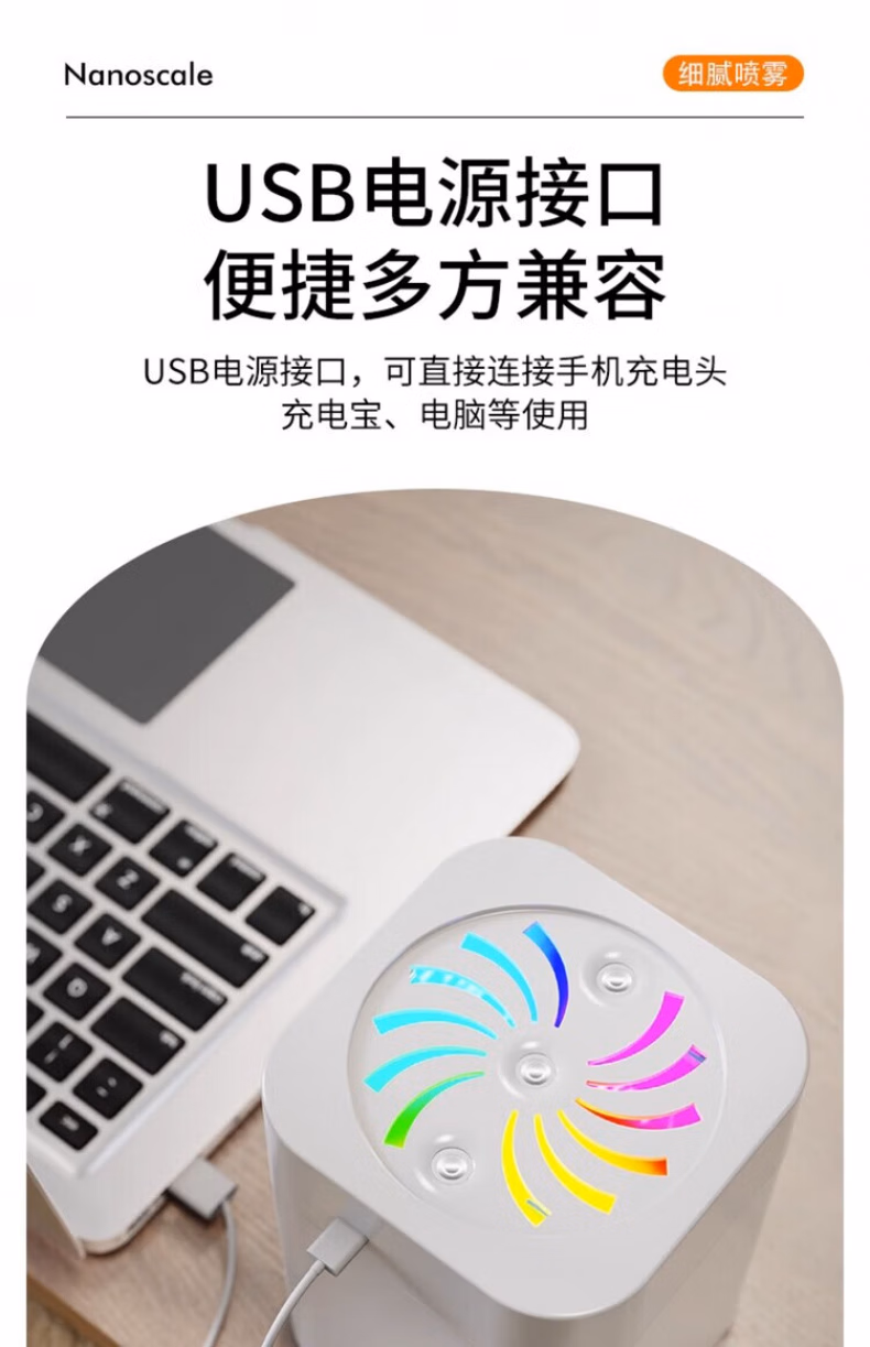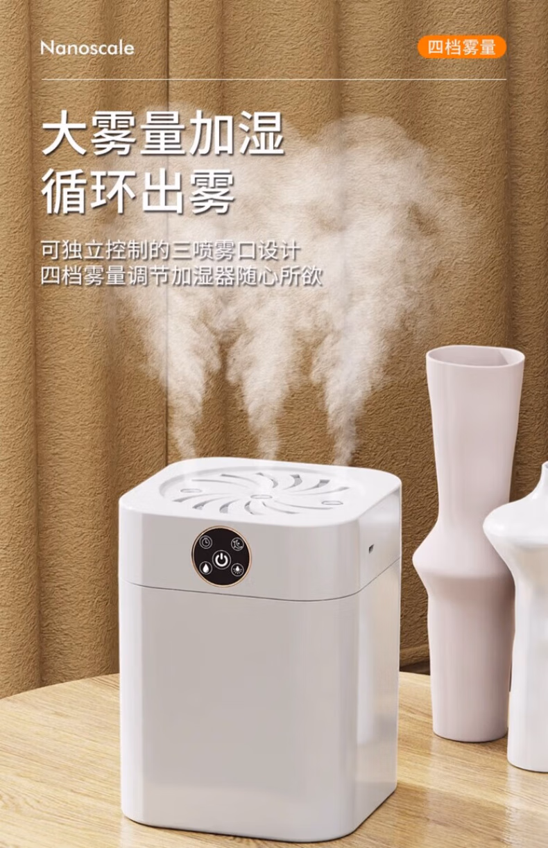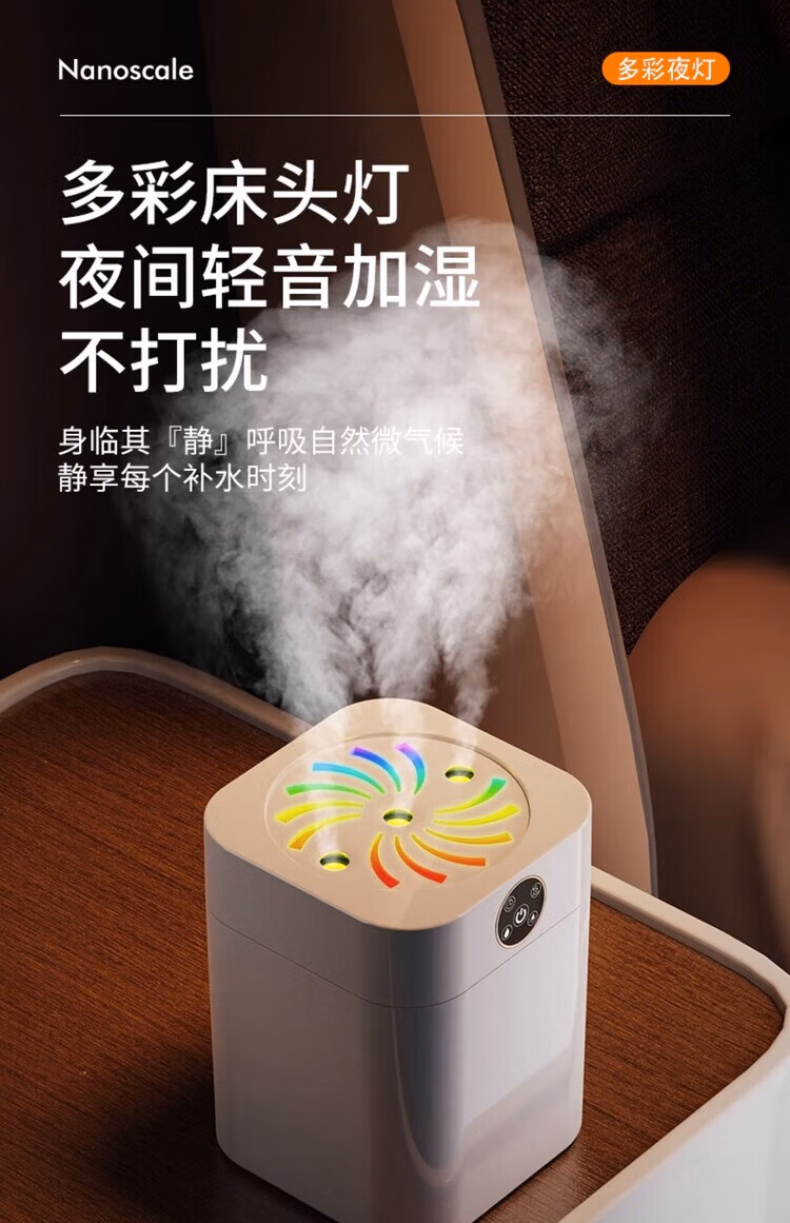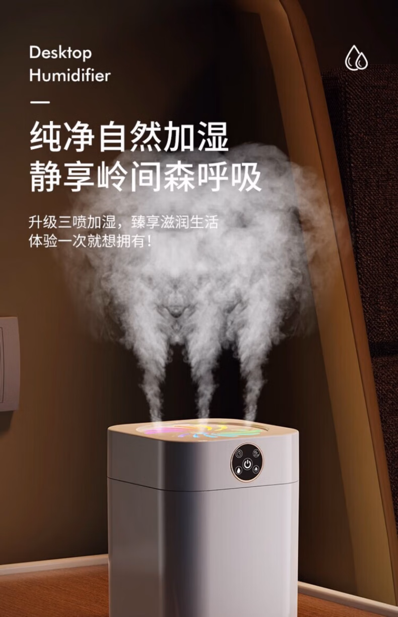 WCZ德国三喷超大雾加湿器家用静音卧室可充电孕妇婴儿空气加湿香薰空调房小型大容量办公室桌面 插电式+四档雾调节+床头灯+断电保护