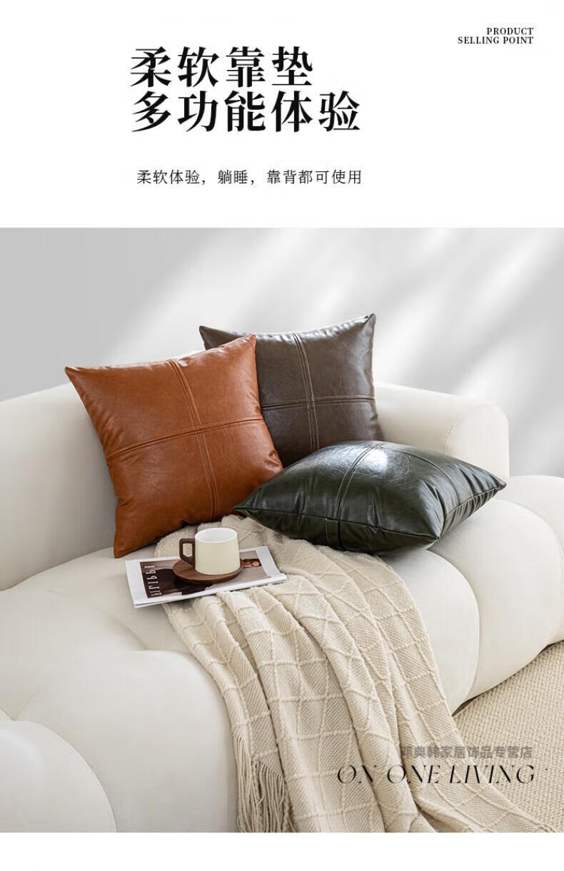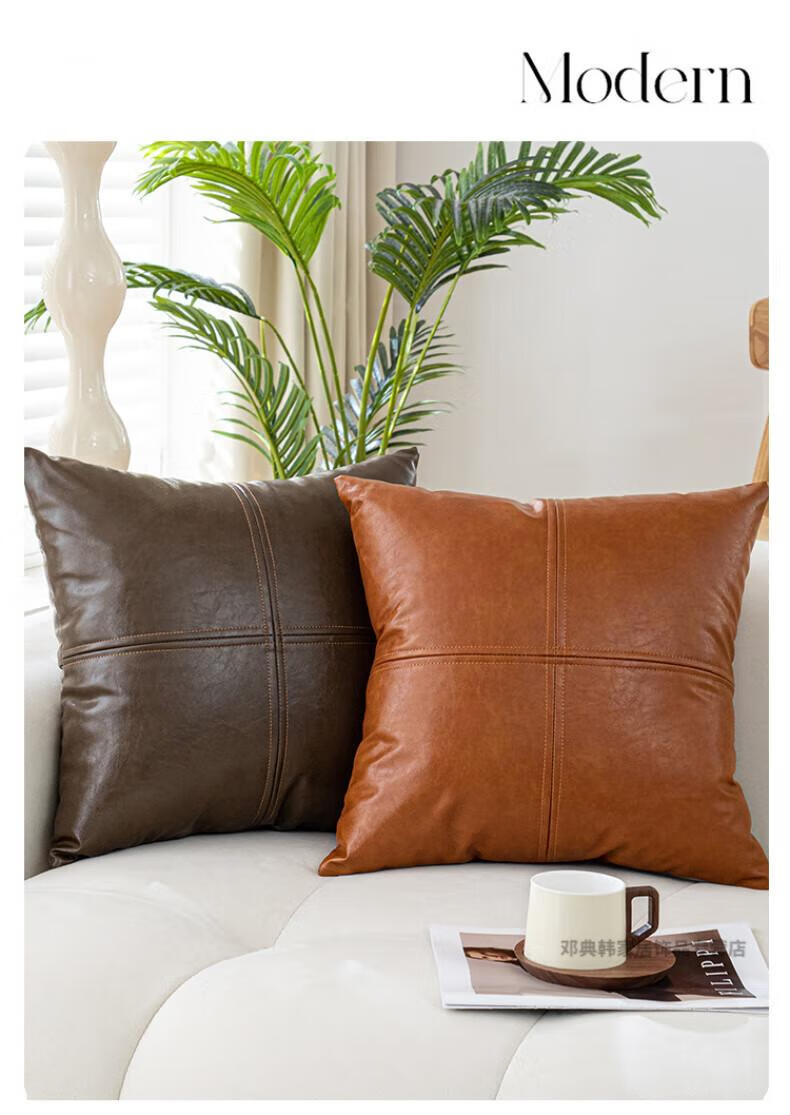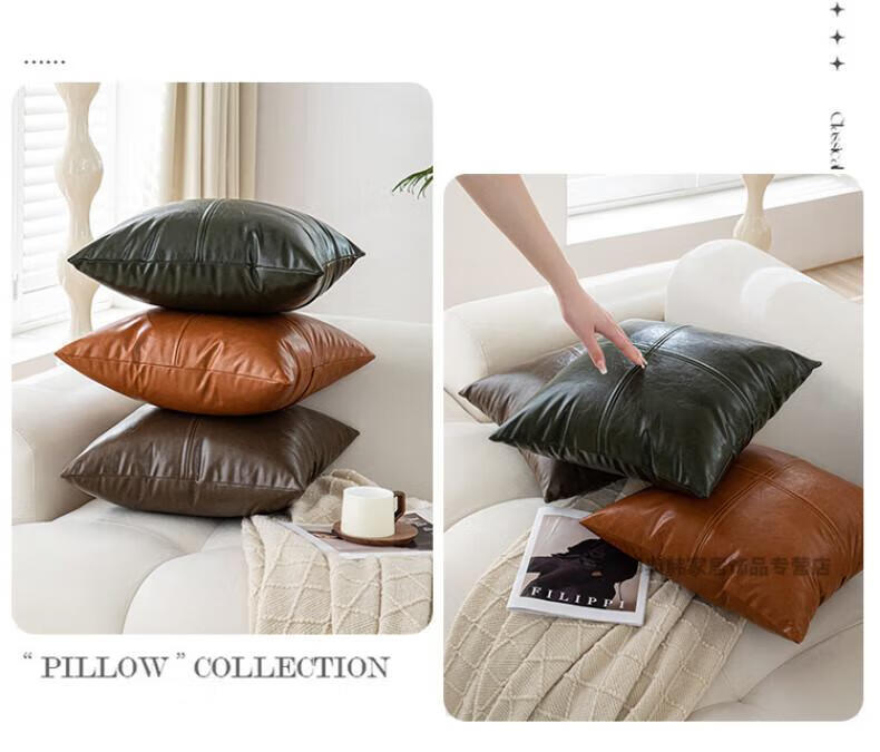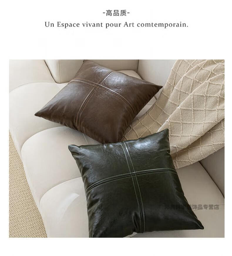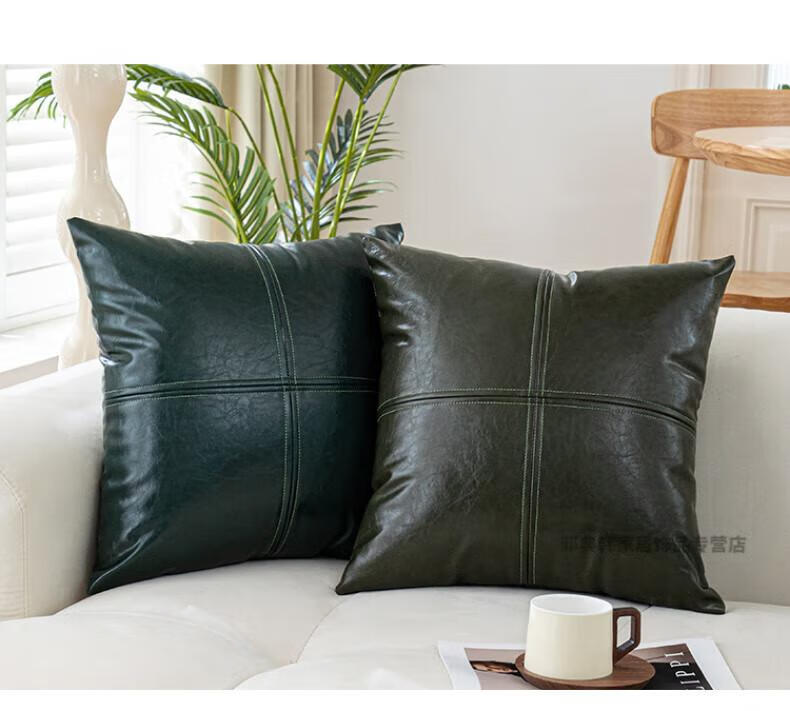 DEATKN德国高端轻奢皮质沙发抱枕客厅靠垫靠枕卧室床头靠背垫子腰靠枕 油蜡皮-墨绿 40cm*40cm 枕套 (含芯)