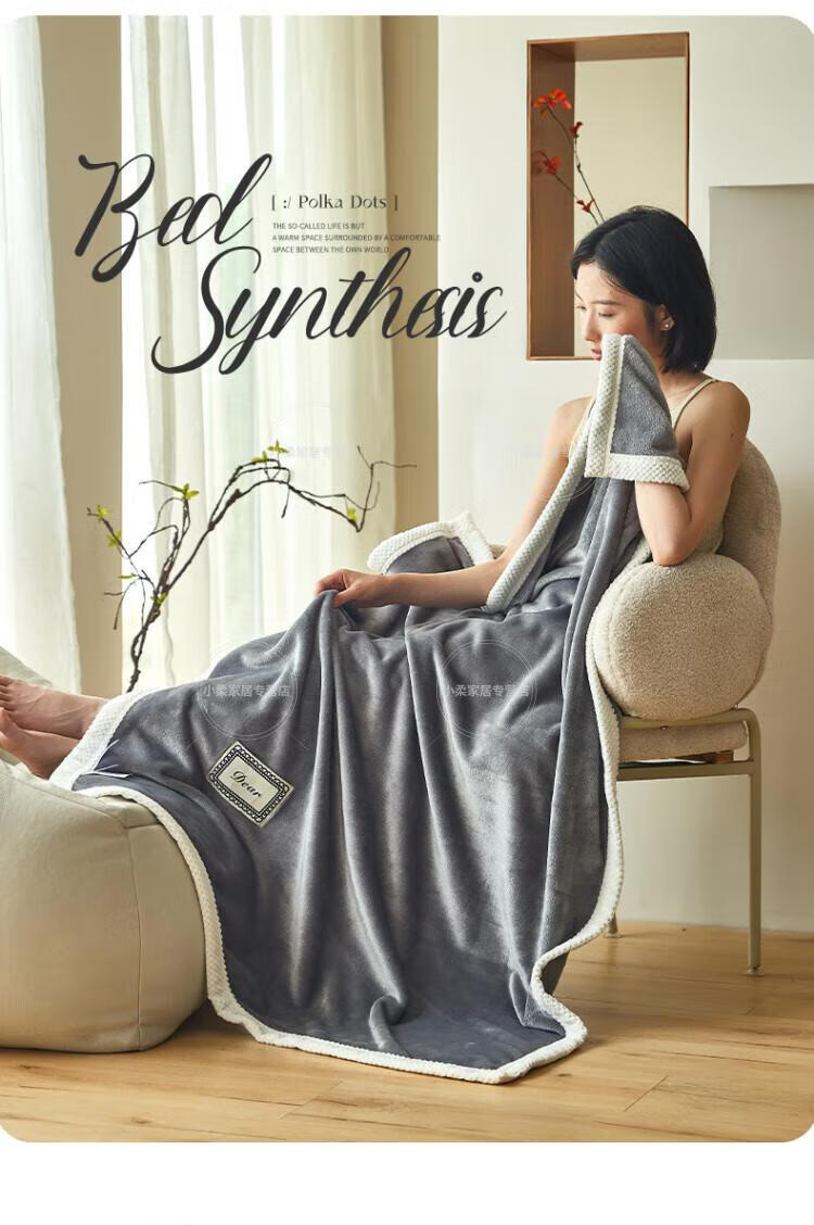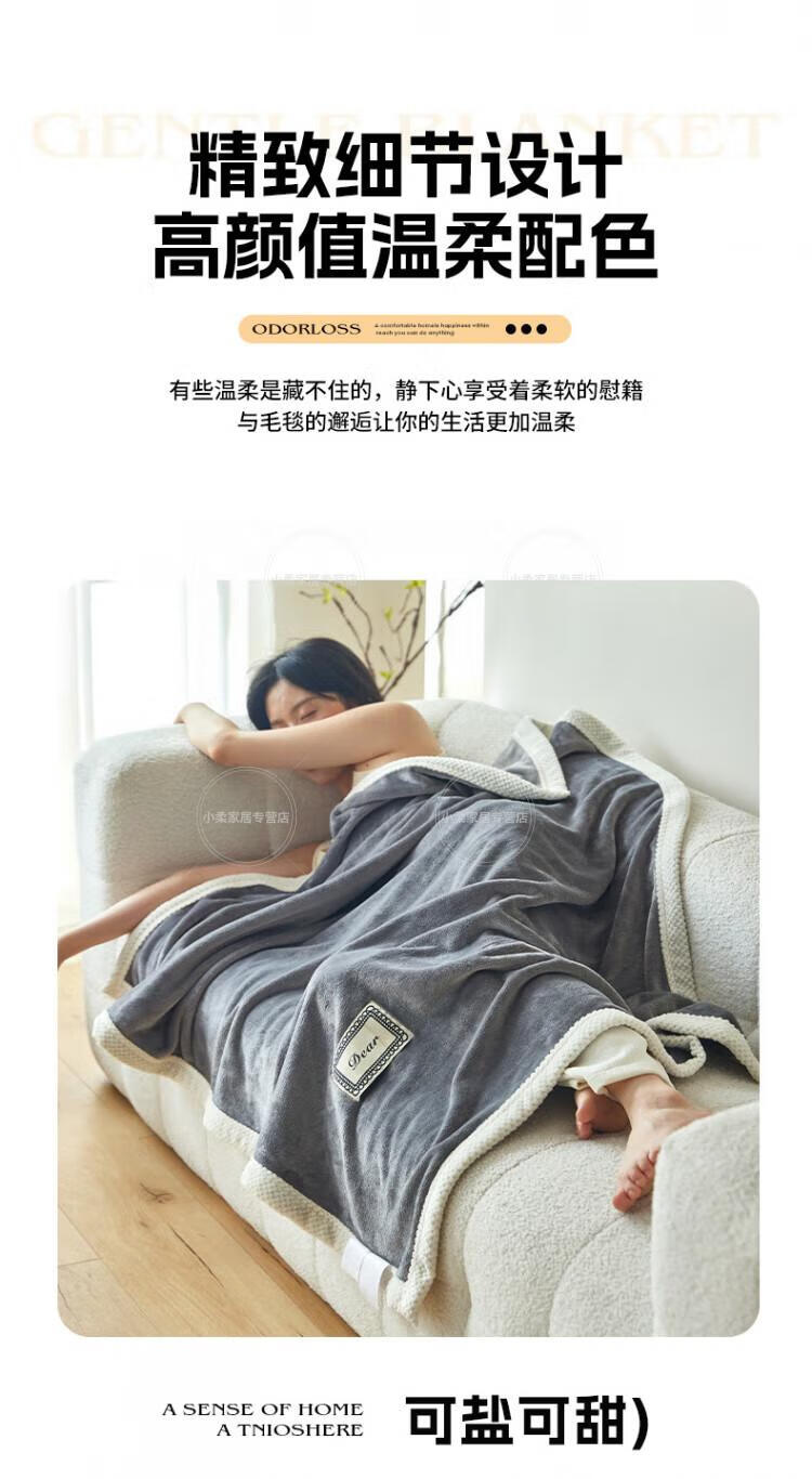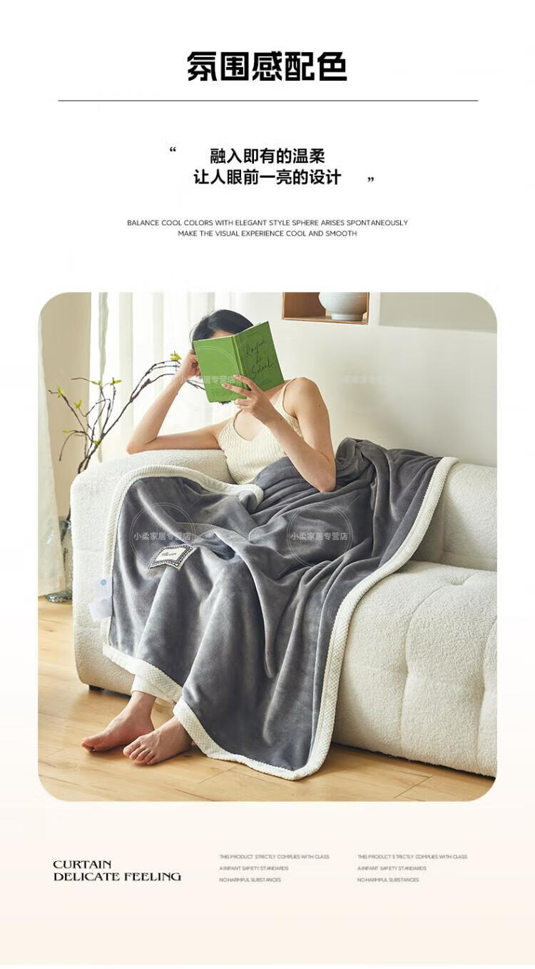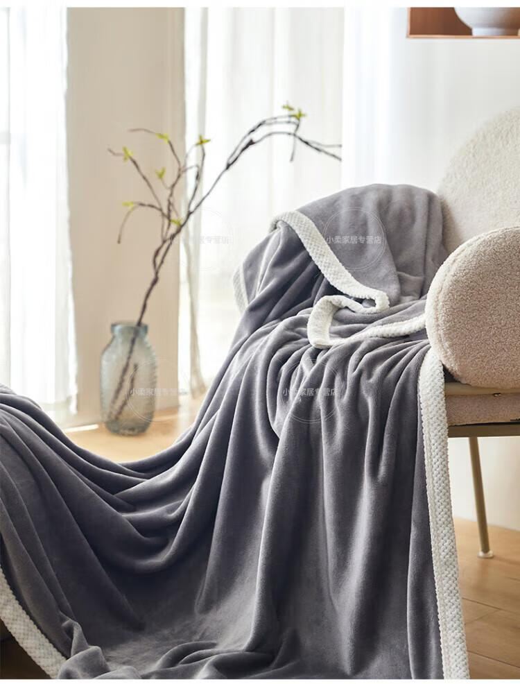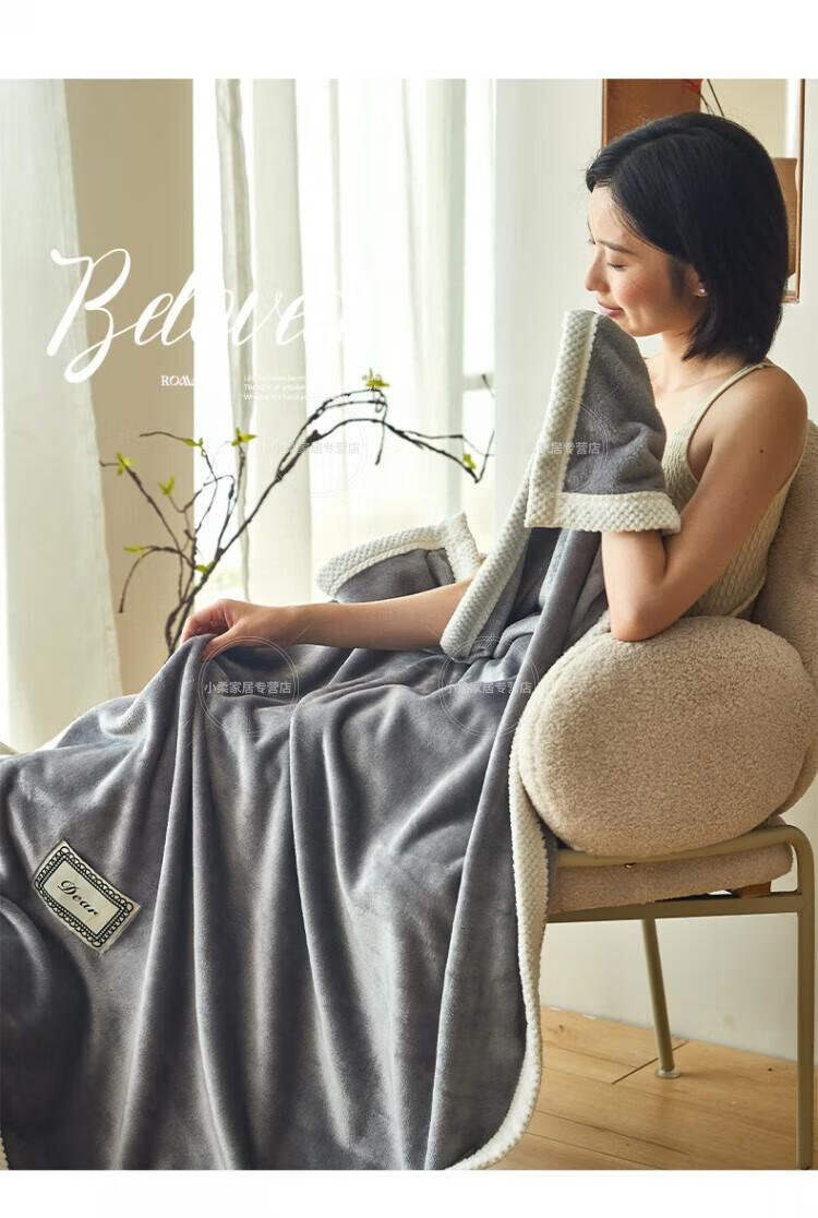 WCZ德国2025新款毛毯子盖毯被子空调牛奶珊瑚绒办公室午睡四季通 蓝灰可铺可盖,四季皆宜 100cm*150cm 已质检,双面毛绒