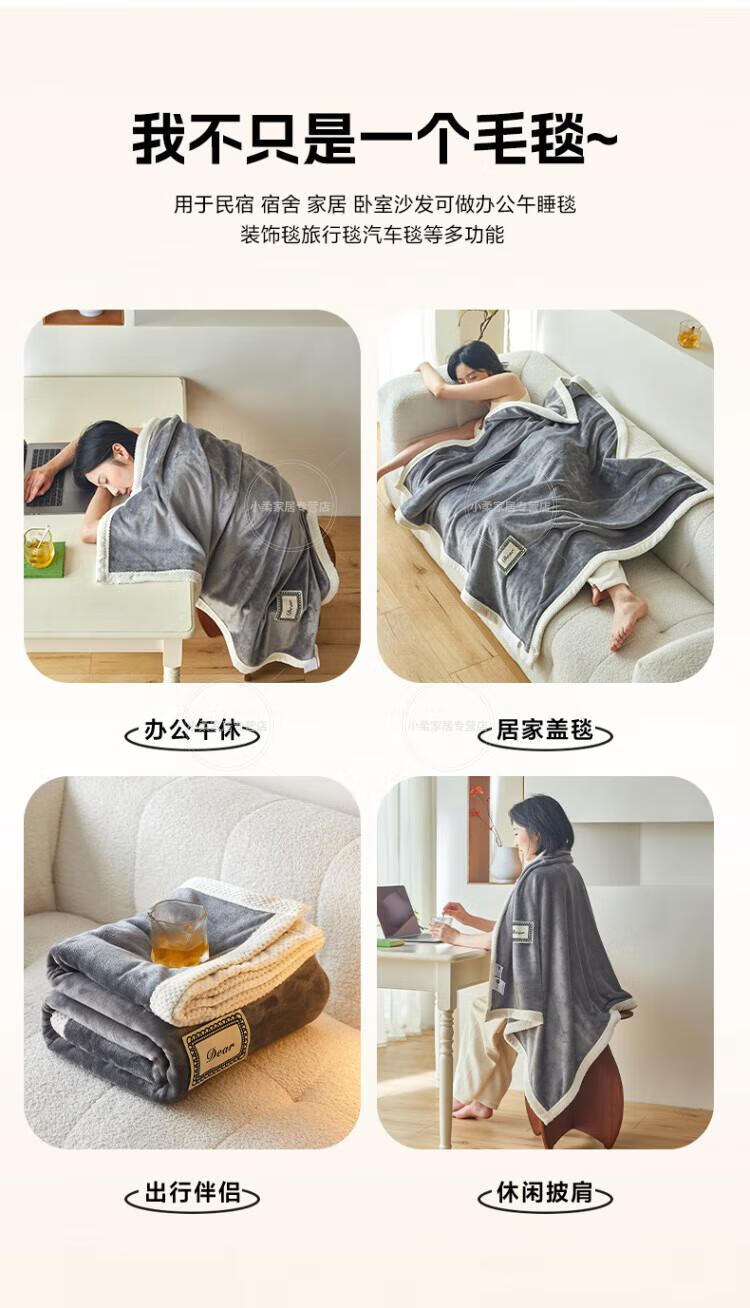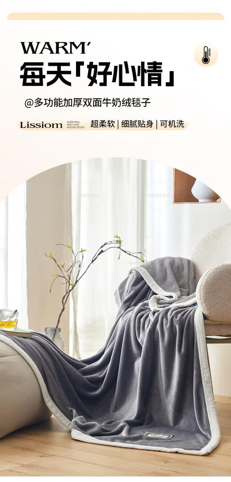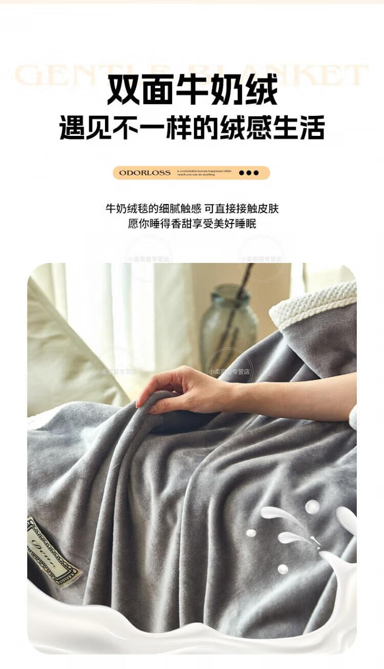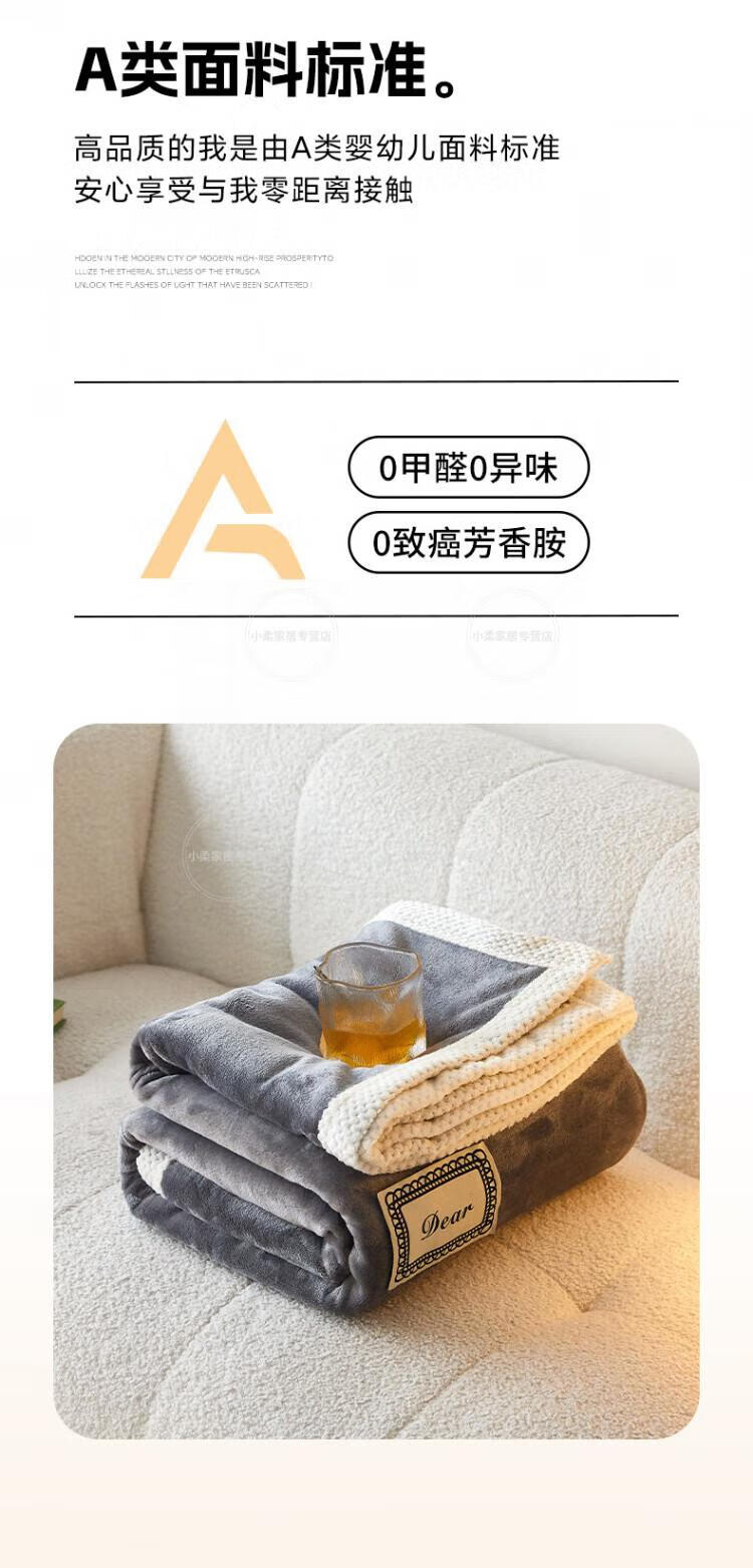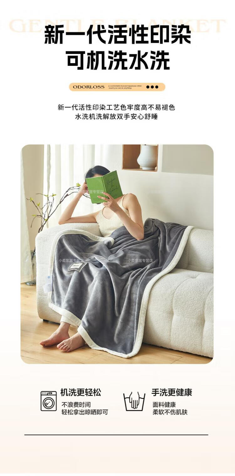 WCZ德国2025新款毛毯子盖毯被子空调牛奶珊瑚绒办公室午睡四季通 蓝灰可铺可盖,四季皆宜 100cm*150cm 已质检,双面毛绒