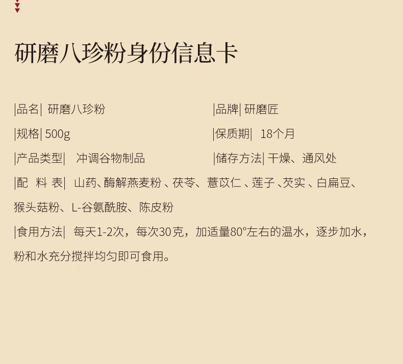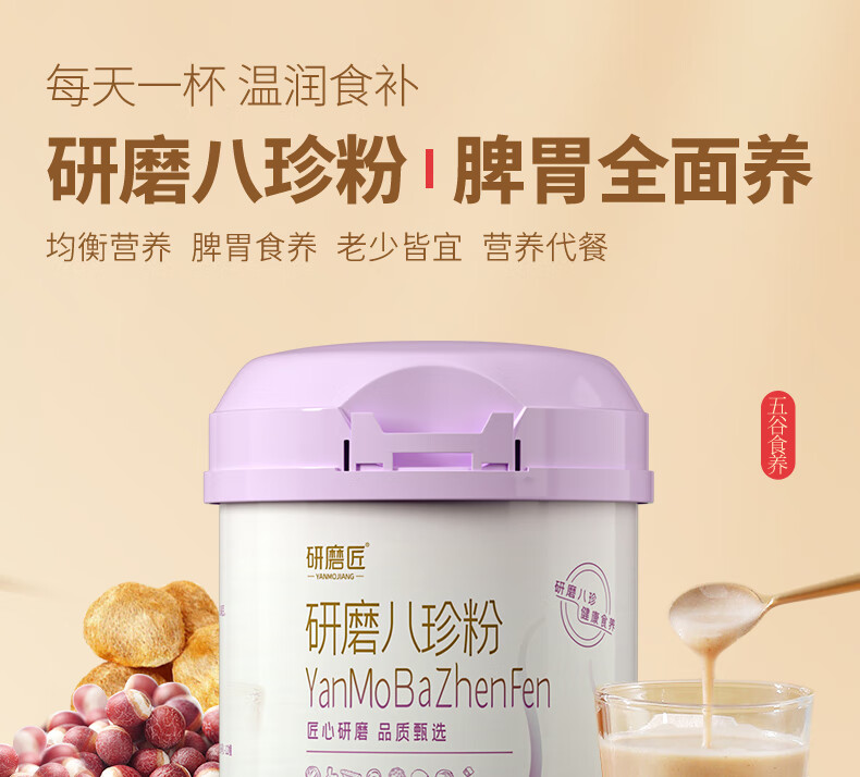 研磨匠八珍粉调养理脾胃儿童成人营养品代餐山药粉猴头菇500g*3罐