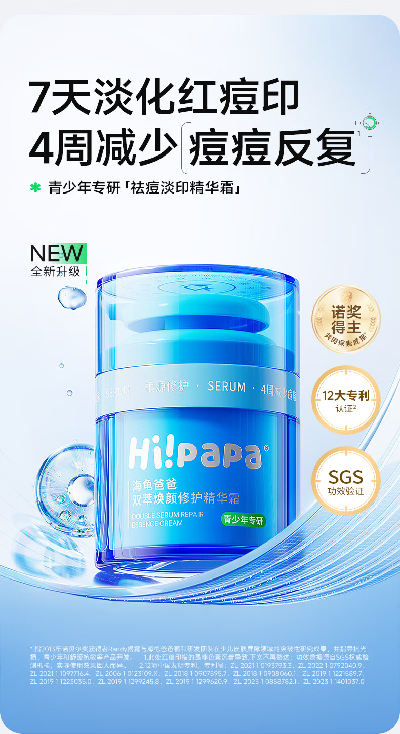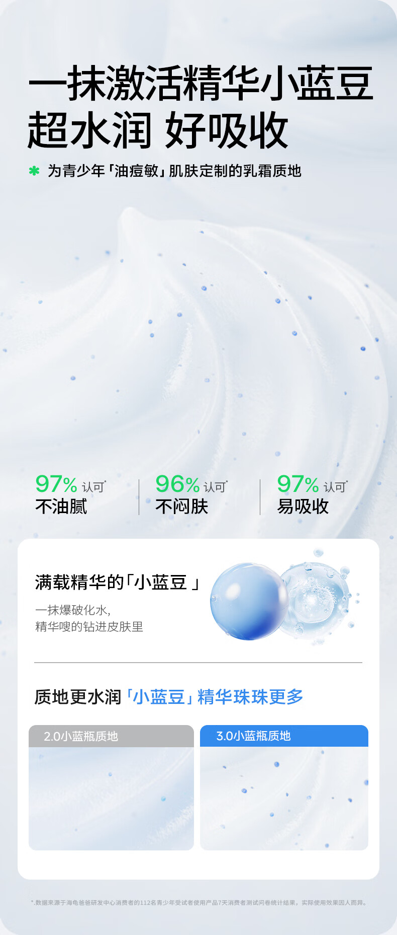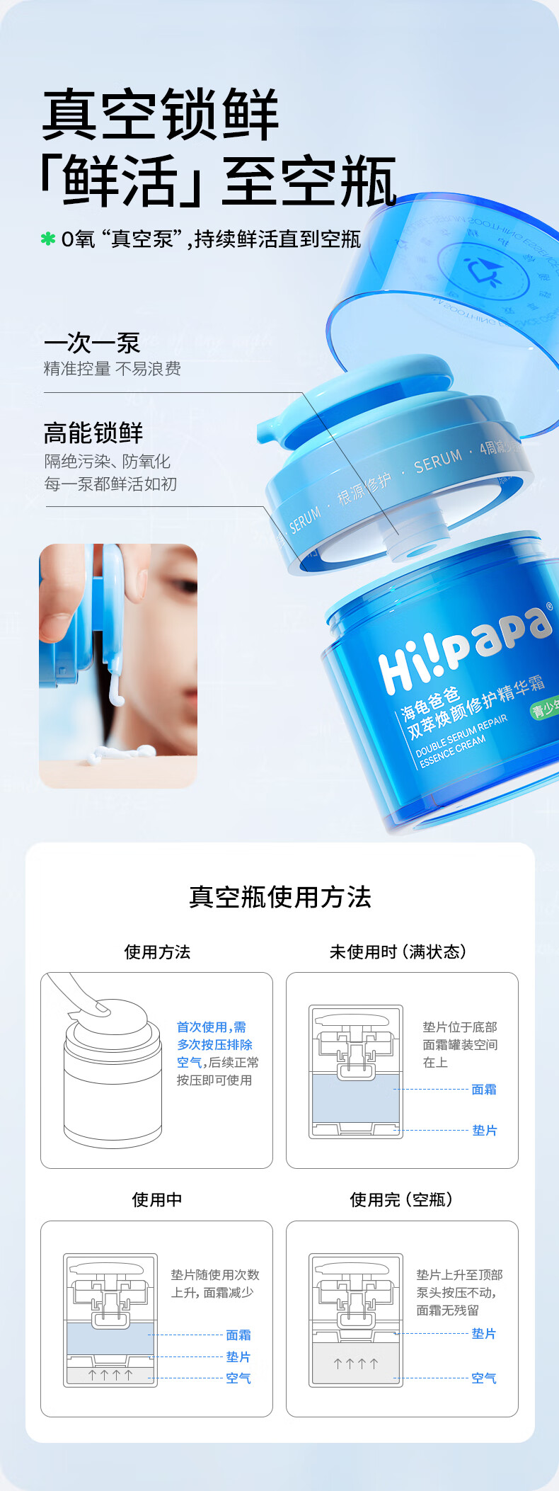 Hi!papa海龟爸爸青少年小蓝瓶 保湿滋润女孩男孩儿童面霜精华霜 【全肤质四季款】祛痘小蓝瓶