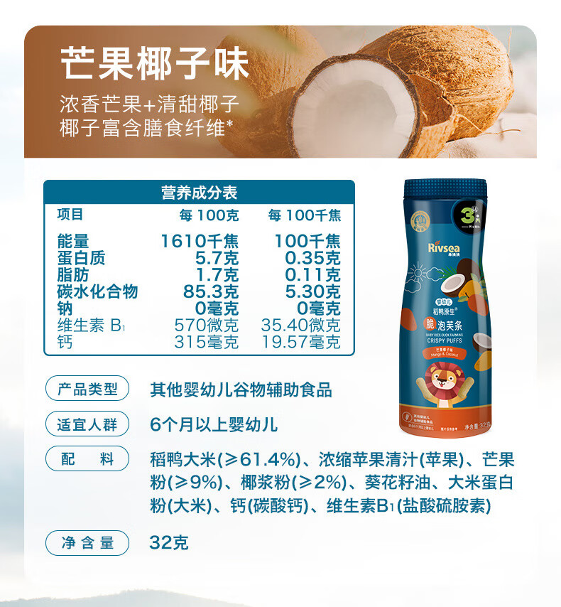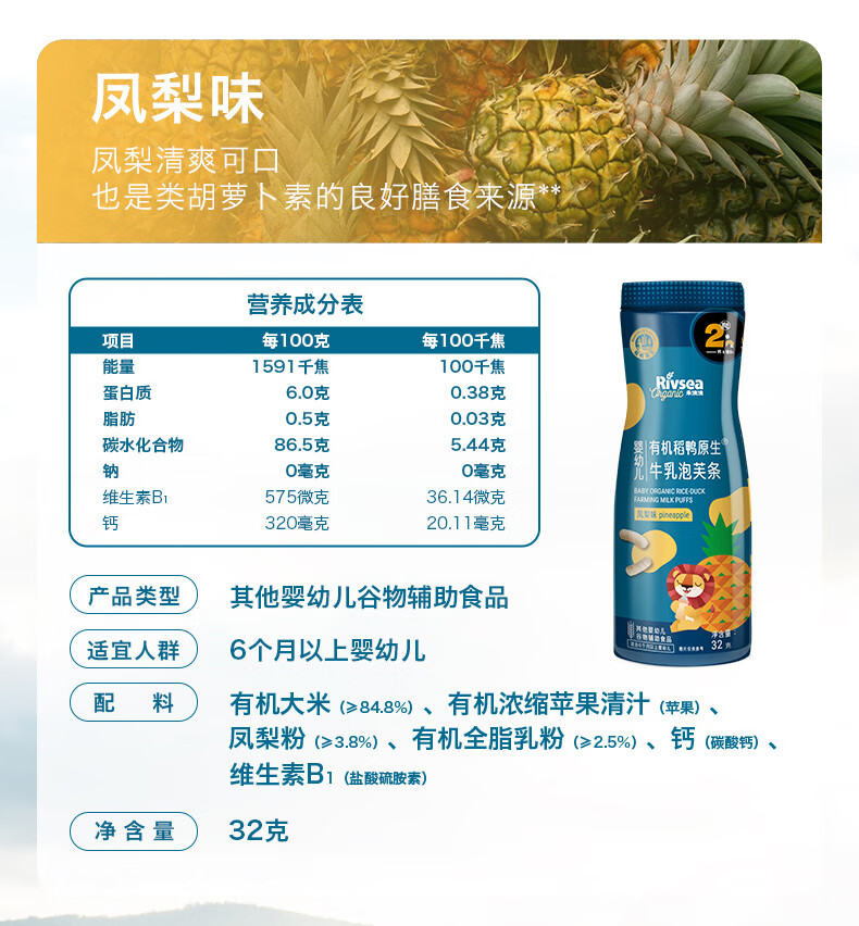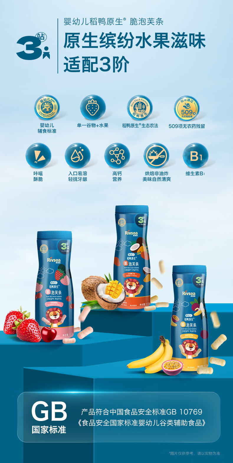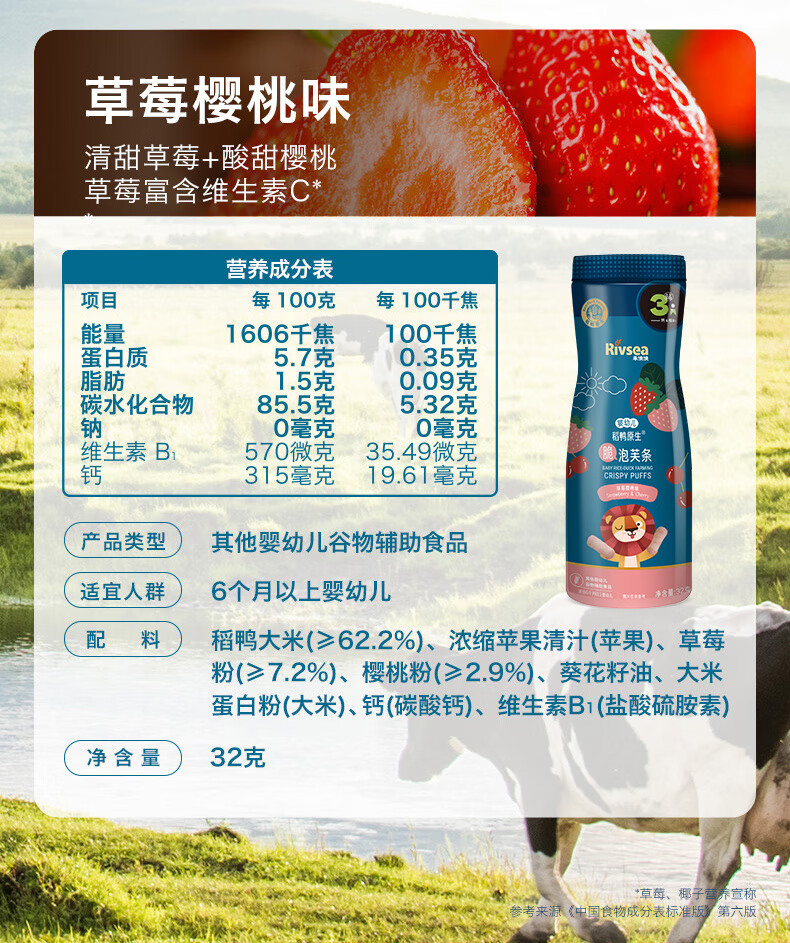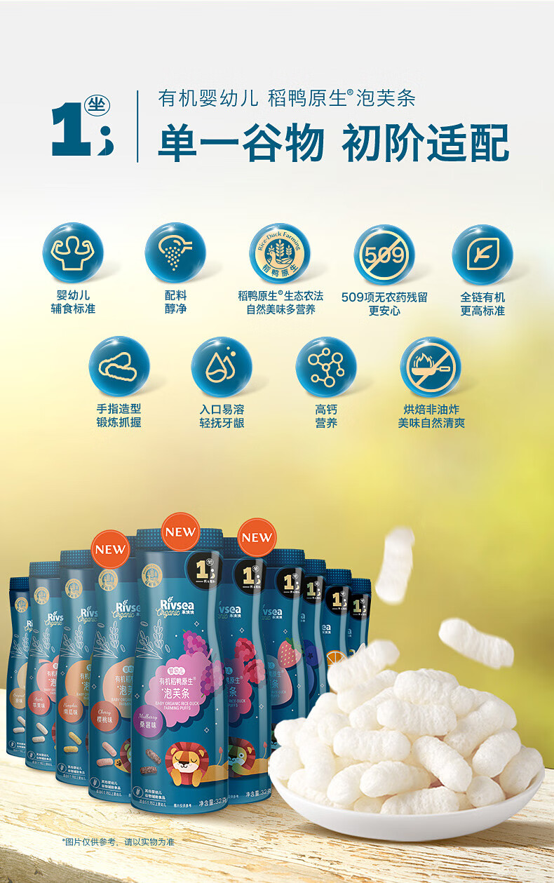 禾泱泱婴幼儿泡芙条 宝宝儿童零食辅食6个月以上 高钙锻炼抓握入口易溶 有机泡芙条6罐(热卖推荐)