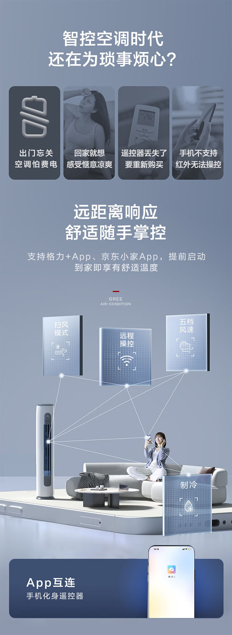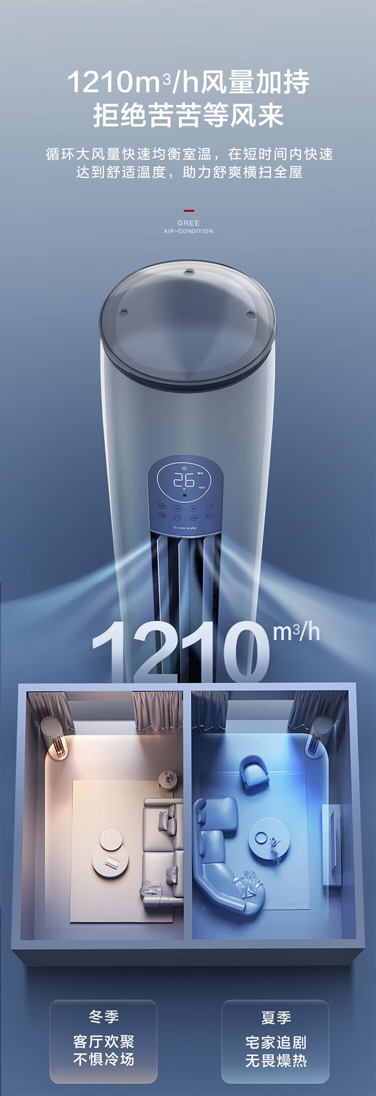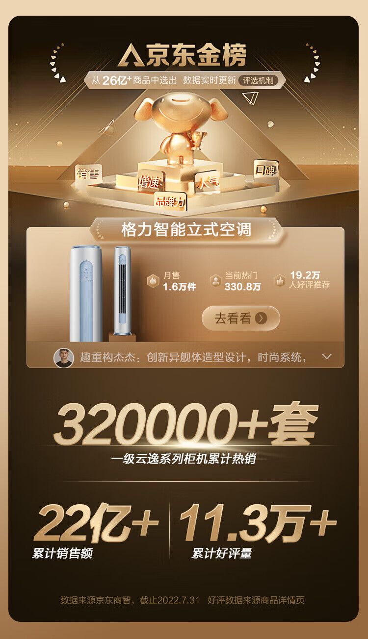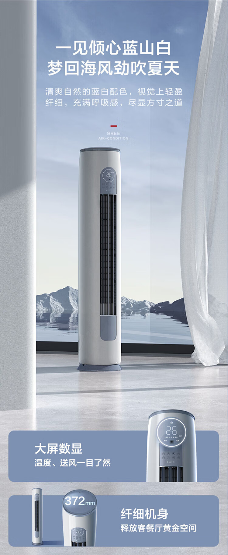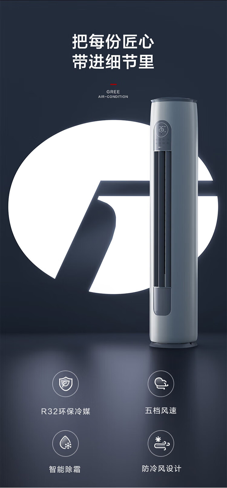 格力(GREE)空调云逸Ⅱ3匹柜机 新一级能效省电 变频快冷暖手机智能 大风量客厅圆柱立式 家电补贴20%空调 3匹 一级能效 【适用30-40平方】