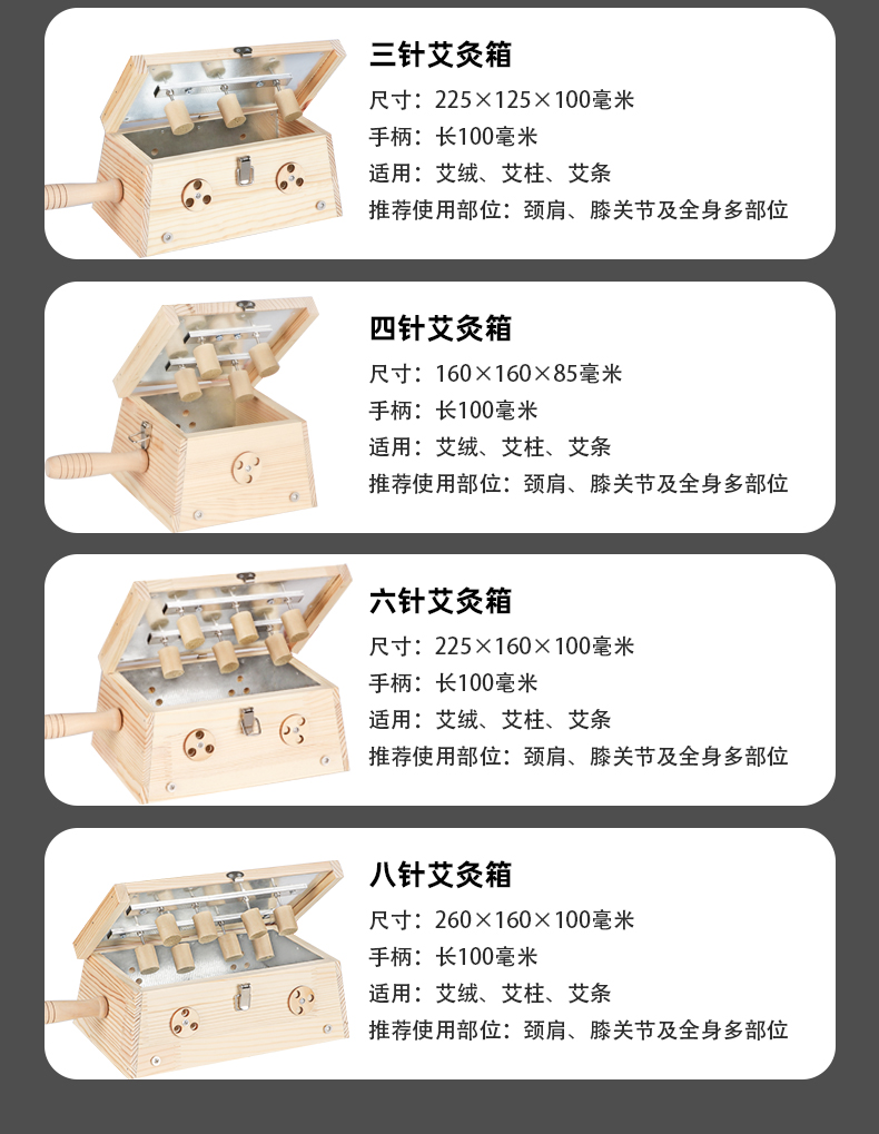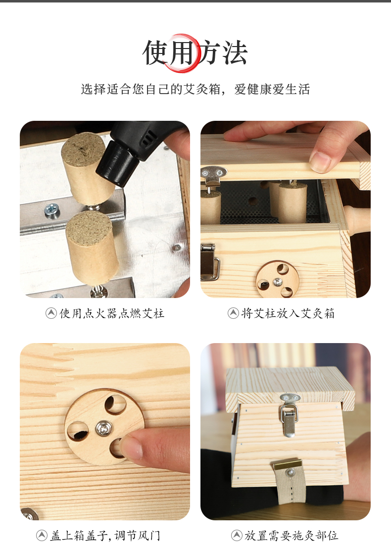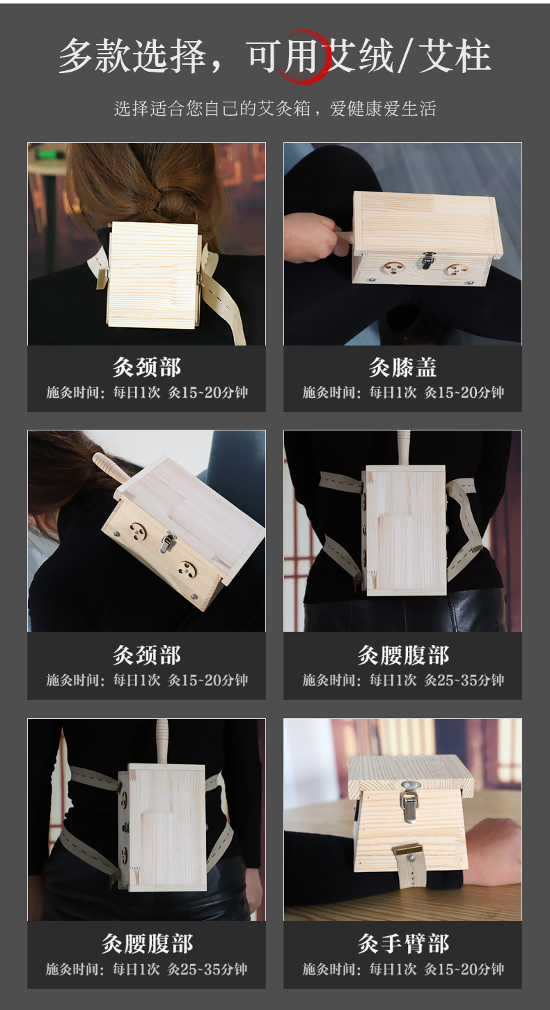 大明古艾六针艾灸盒松木艾灸箱木制随身灸家用后背熏美容院腹部艾灸盒家用