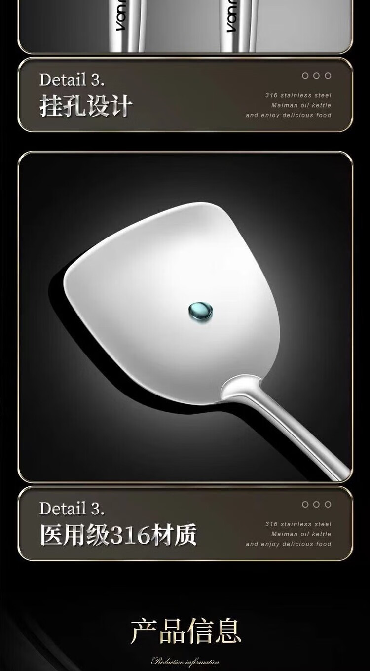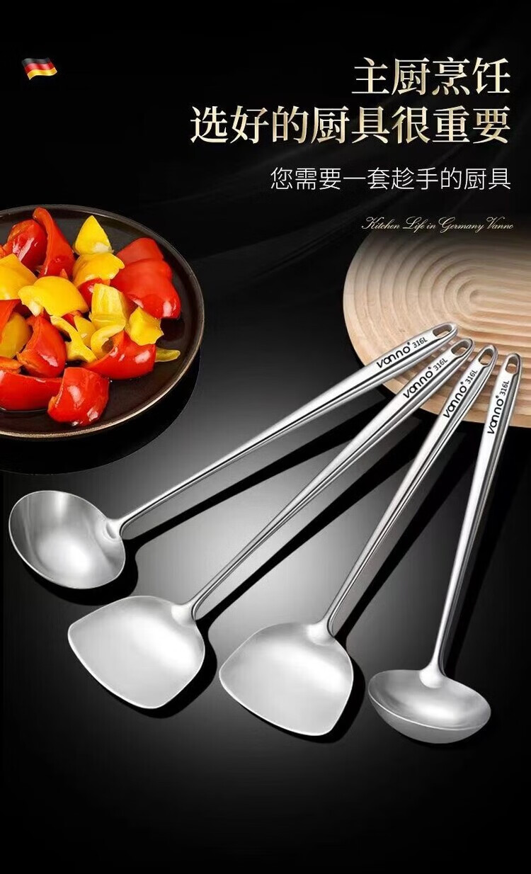 DEATKN德国316L不锈钢锅铲长柄加厚炒菜铲子厨师专用炒菜勺家用汤勺套装 316全钢锅铲【加长手柄防烫耐高温