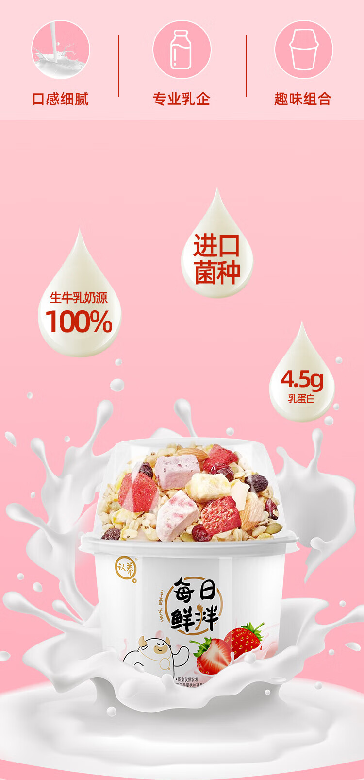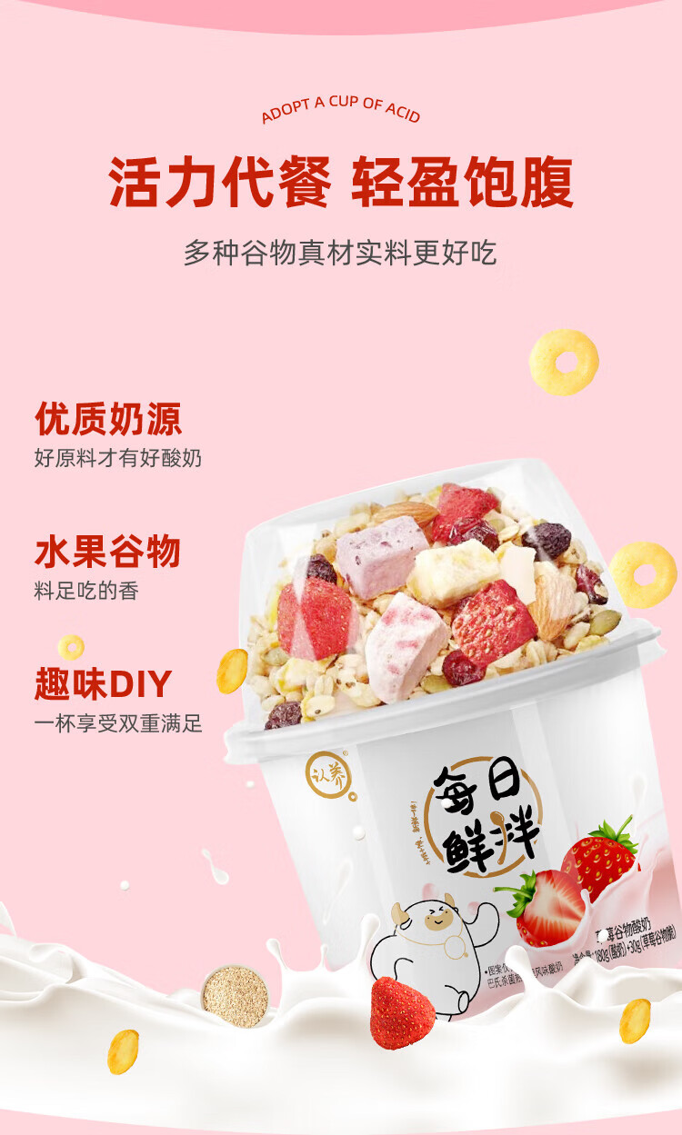 认养每日鲜拌酸奶180g*6杯搅拌酸奶杯搅谷物水果麦片早餐代餐零食