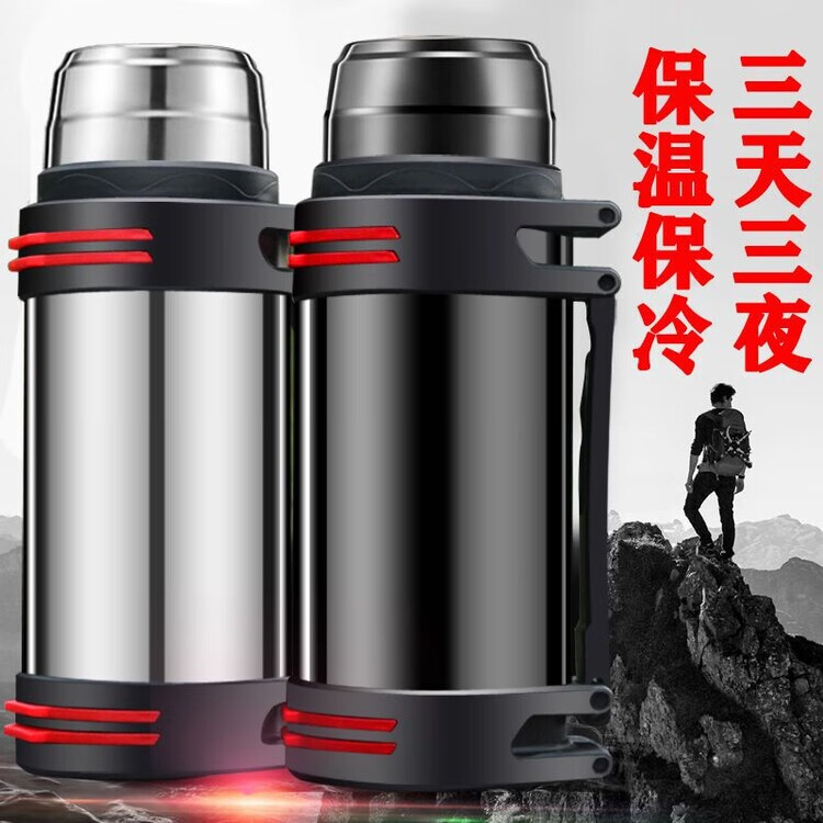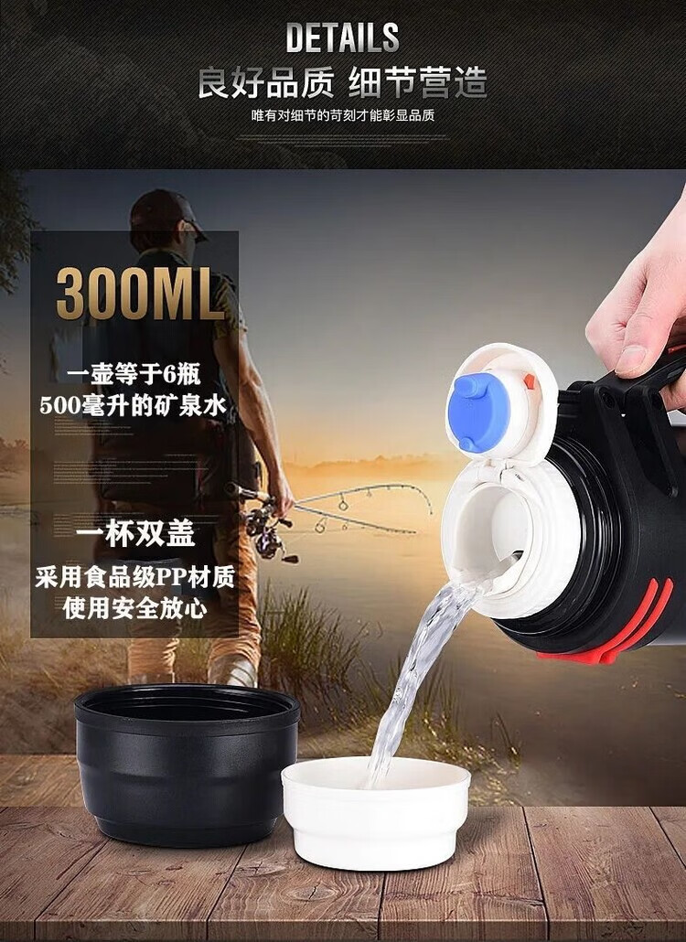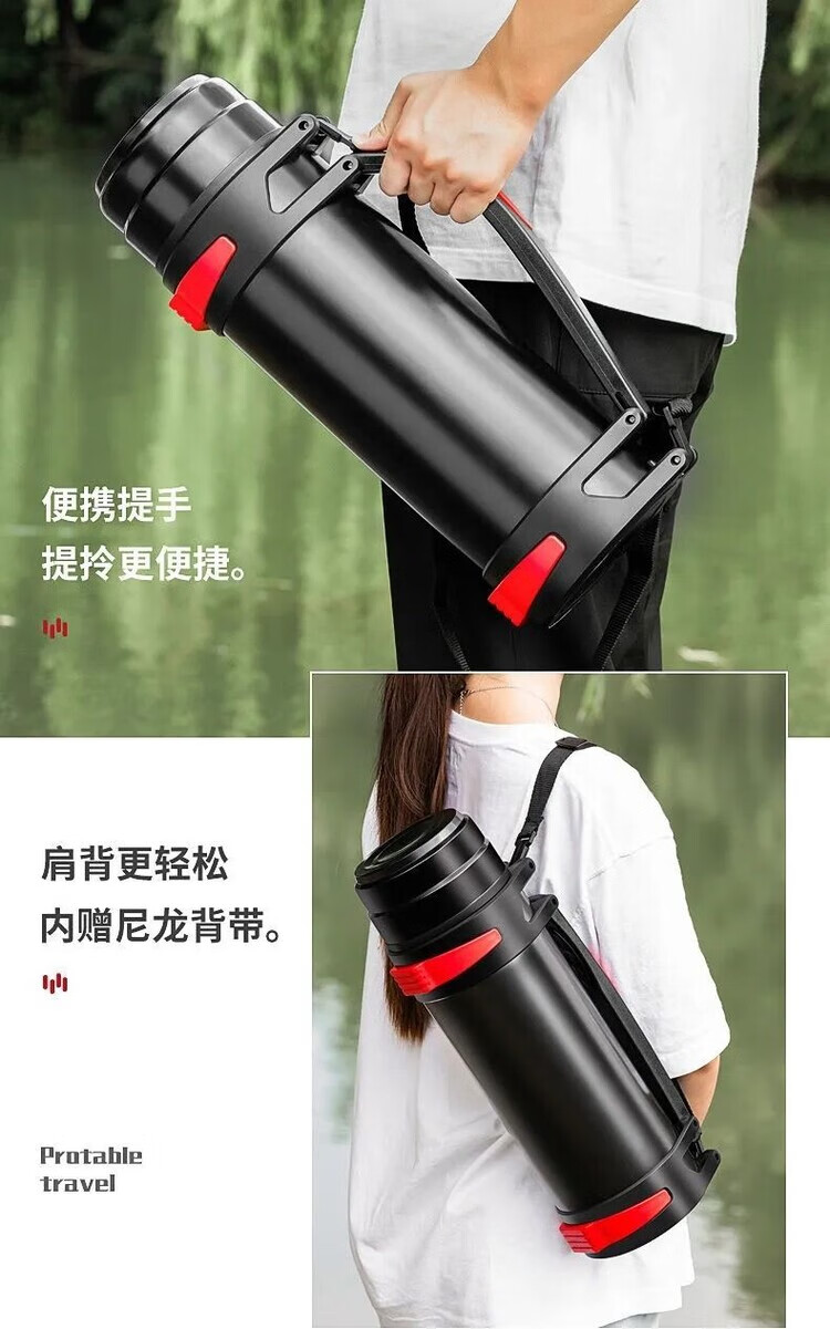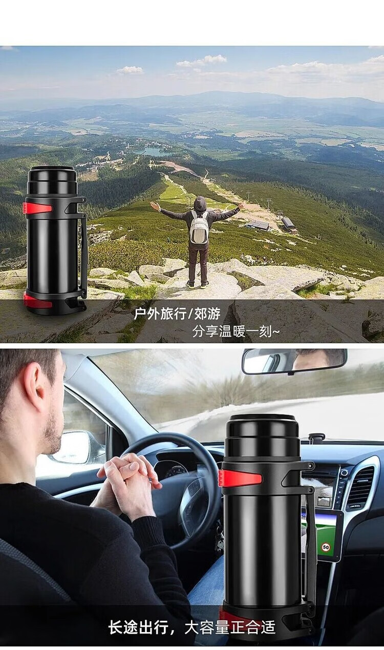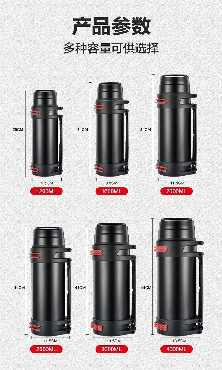 DEATKN304不锈钢保温壶户外保温杯大容量男水壶热水瓶车载旅行壶 黑色 送背带储水碗+壶包【加厚内胆】 1ml 1200毫升(2斤水)