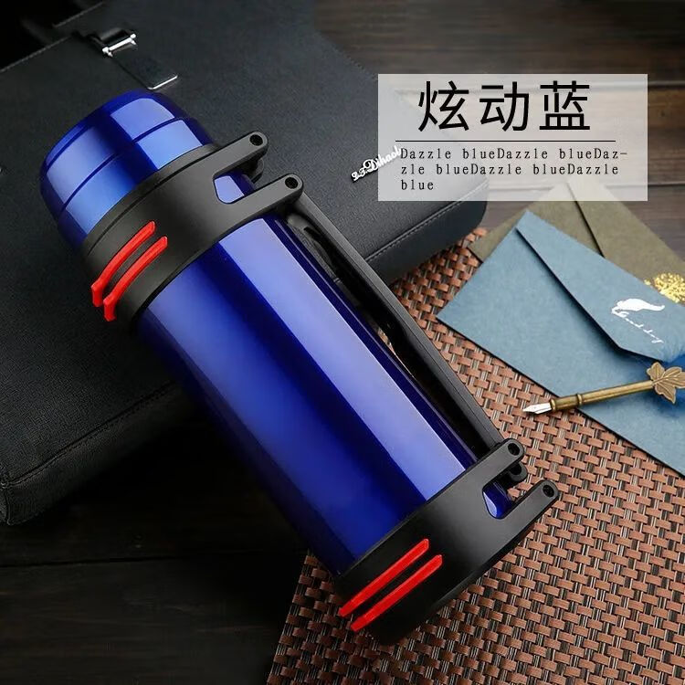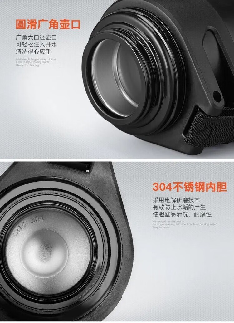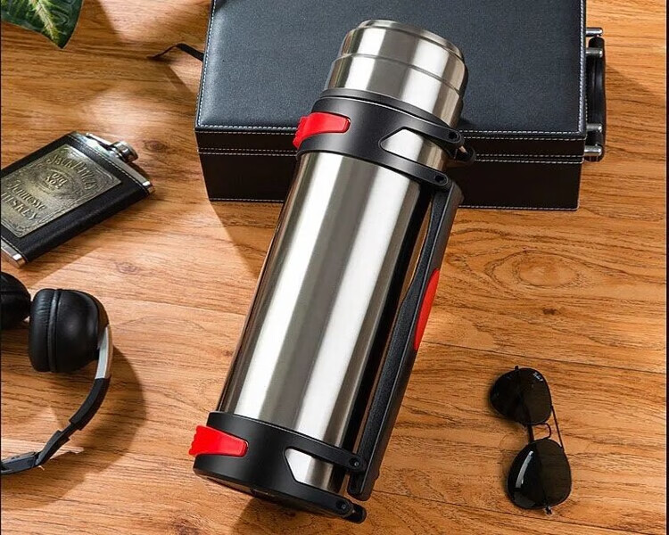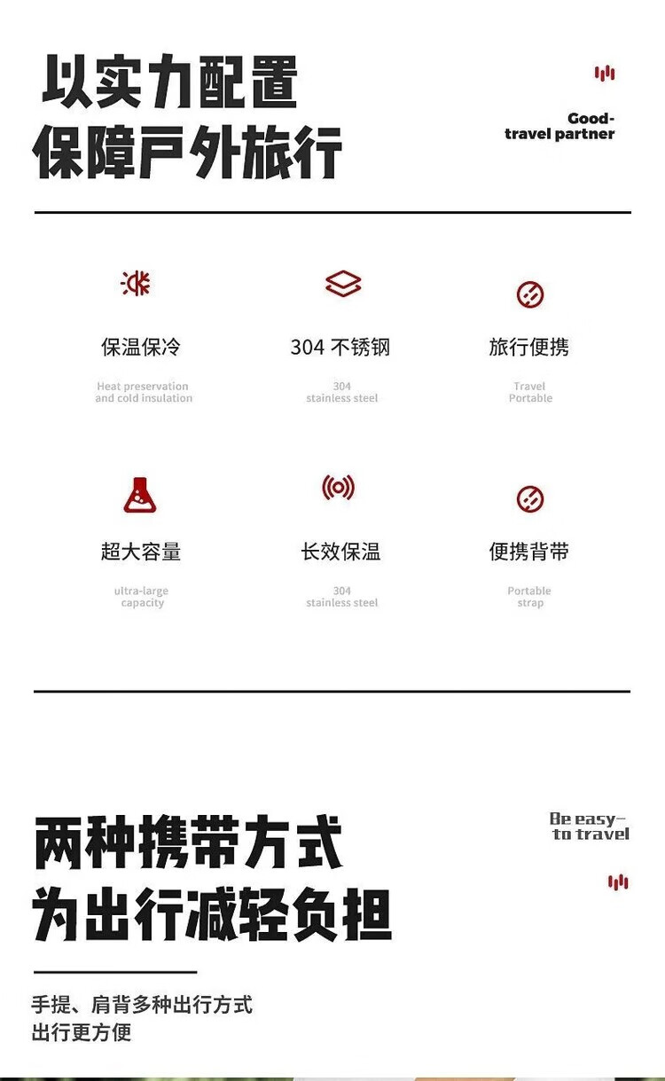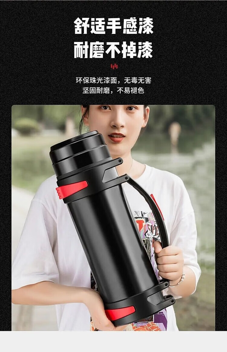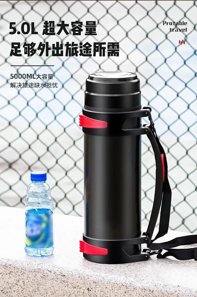 DEATKN304不锈钢保温壶户外保温杯大容量男水壶热水瓶车载旅行壶 黑色 送背带储水碗+壶包【加厚内胆】 1ml 1200毫升(2斤水)