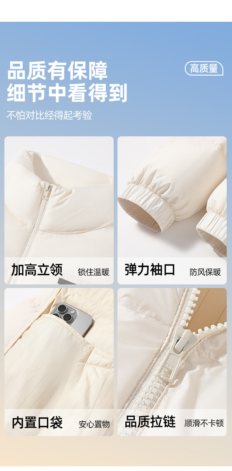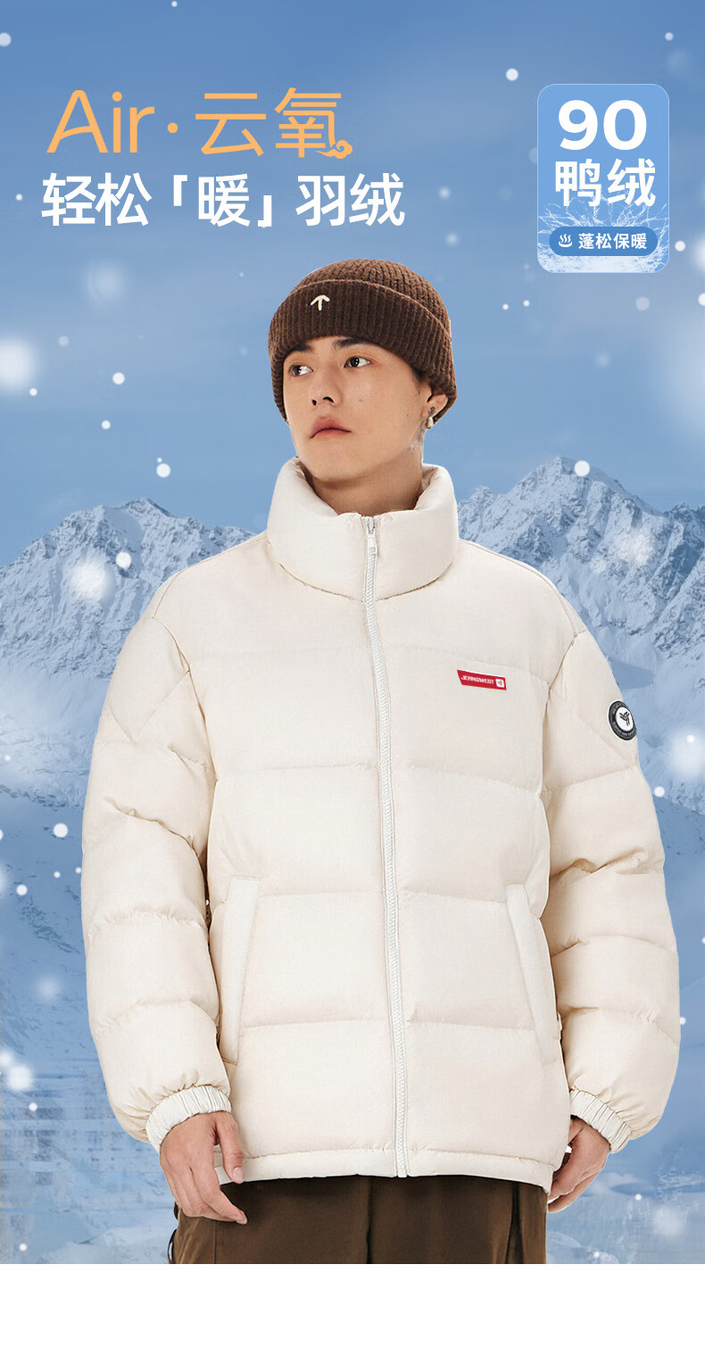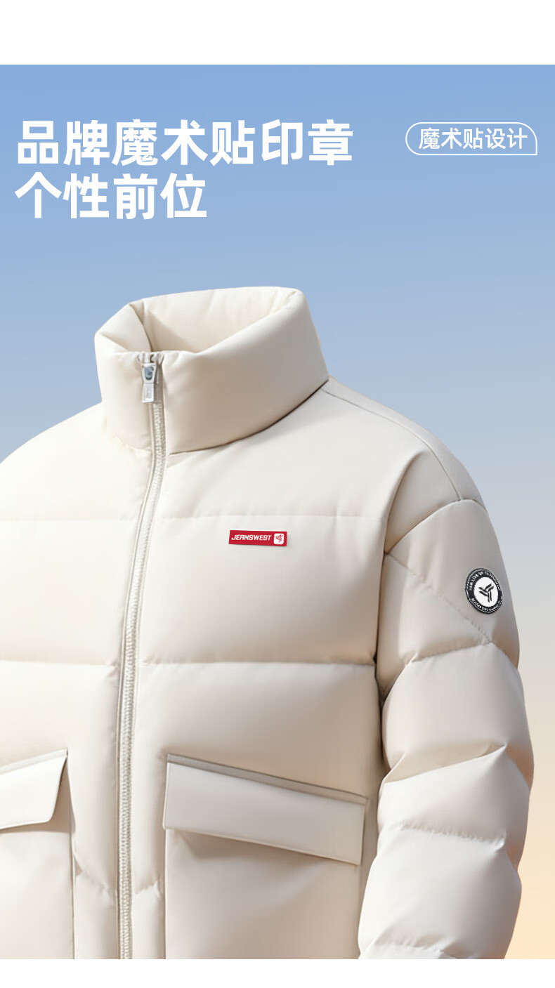 真维斯(Jeanswest)羽绒服男士短款冬款加绒加厚保暖外套情侣款休闲纯色立领上衣