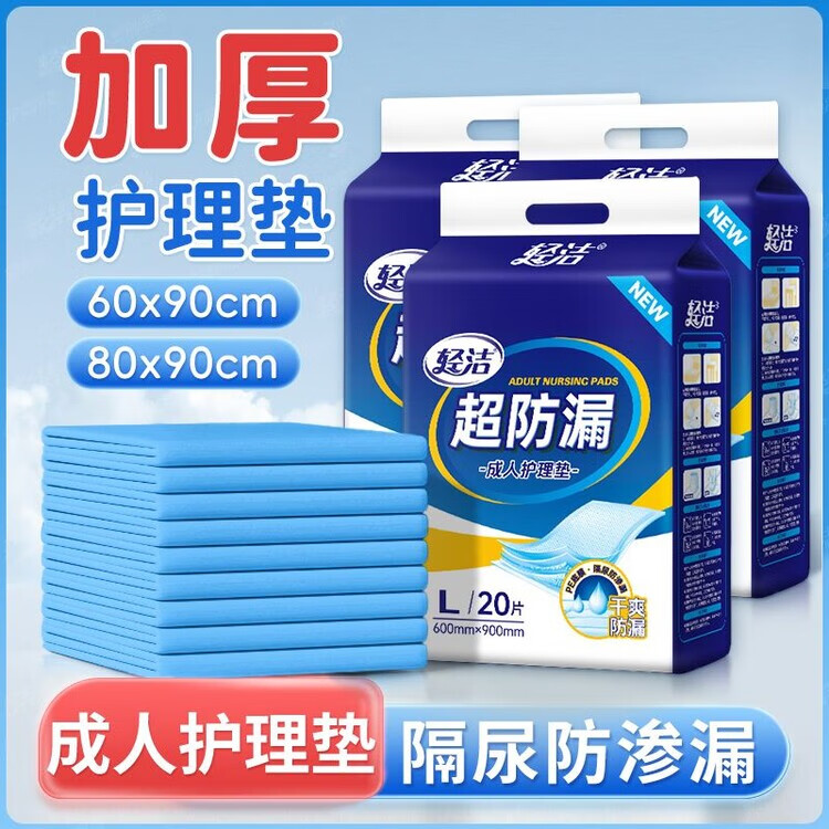 AILUKI成人护理垫老年人尿不湿一次性隔尿垫姨妈产妇专用加厚产褥垫批发 【成人护理垫.】 【60X90cm】加厚强吸款 60片护理垫