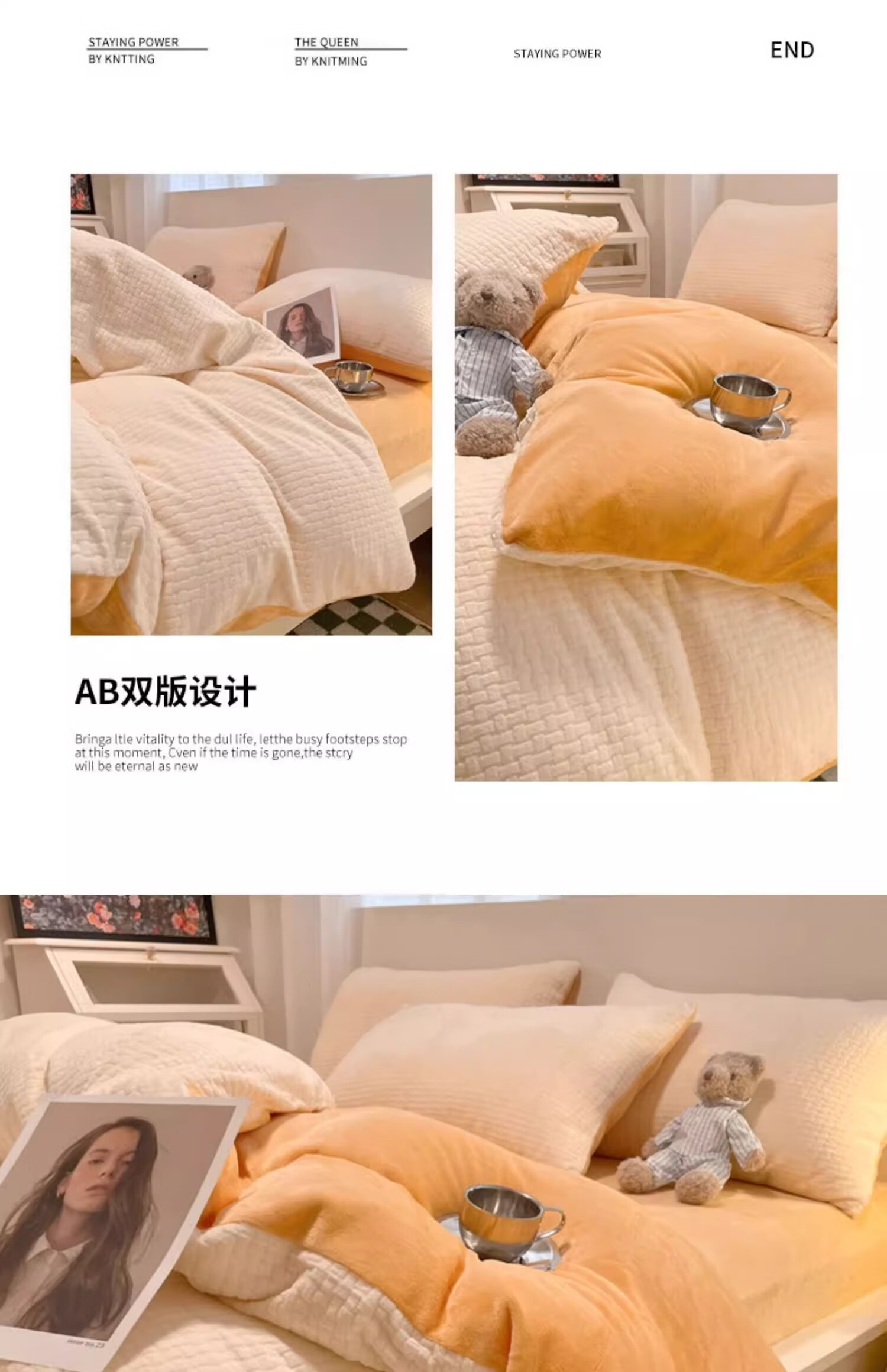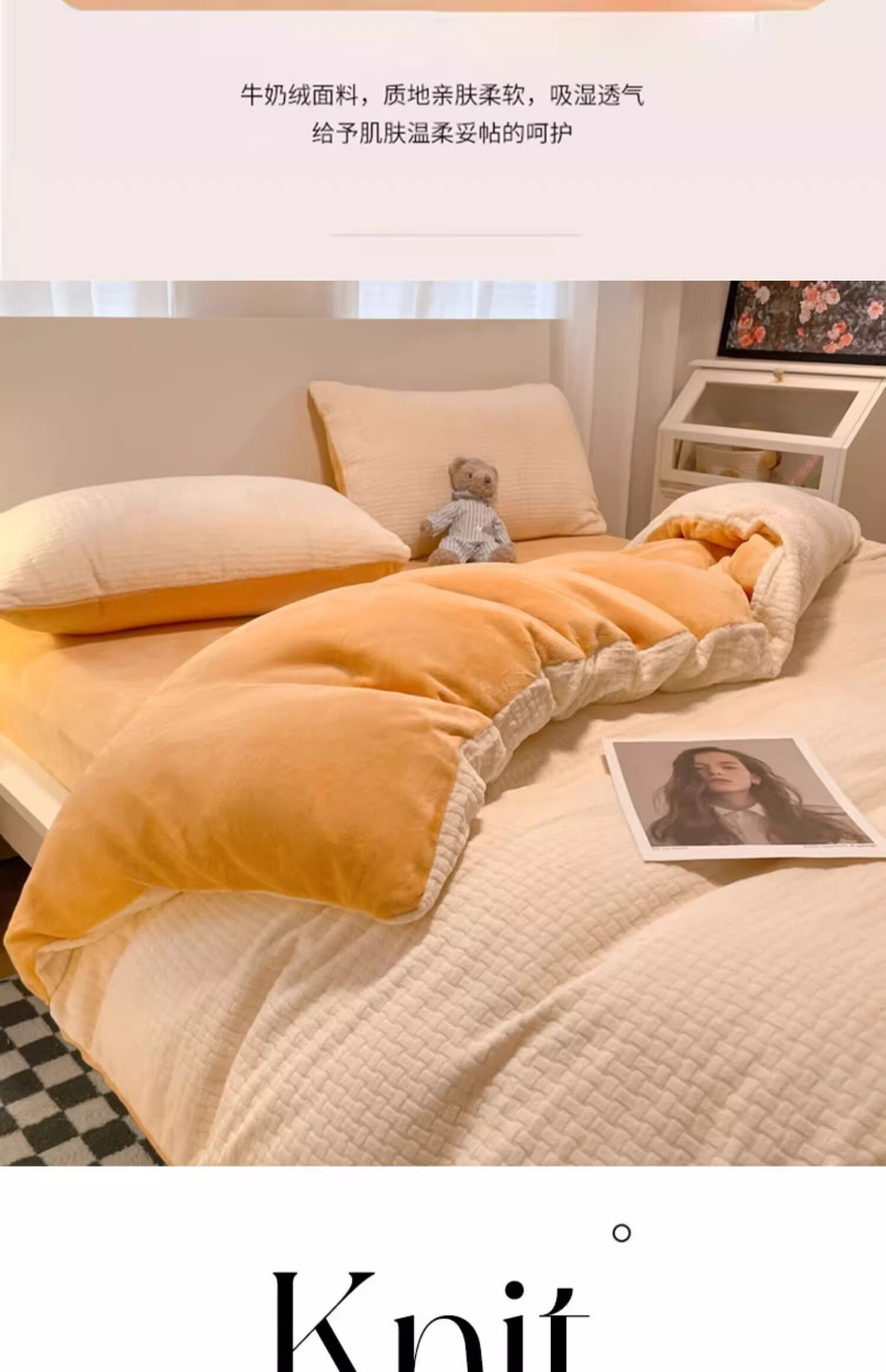 猫人(MiiOW)加厚兔毛绒牛奶绒床上四件套秋冬季双面加绒珊瑚绒床单被套三件套 豆沙粉【舒适保暖】 1.8m 床单款 四件套-200x230cm被套
