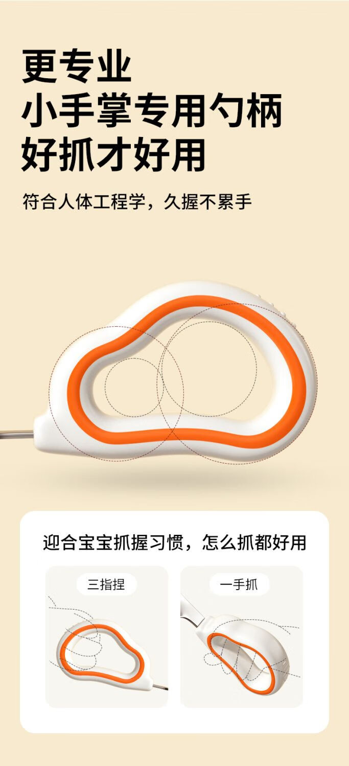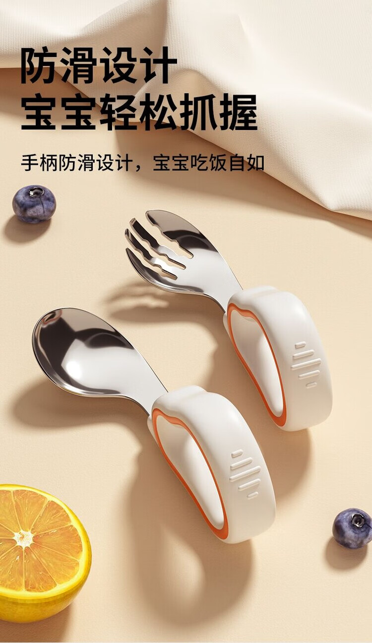 DEATKN宝宝勺子训练婴儿自主进食专用吃饭学吃不锈钢叉子辅食勺儿童餐具 【儿童弯勺】活力橙