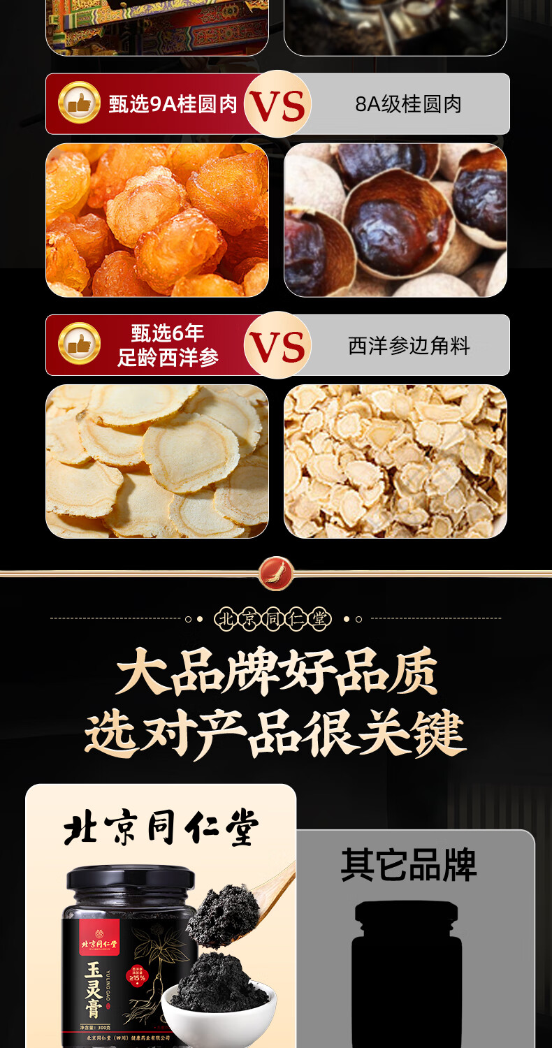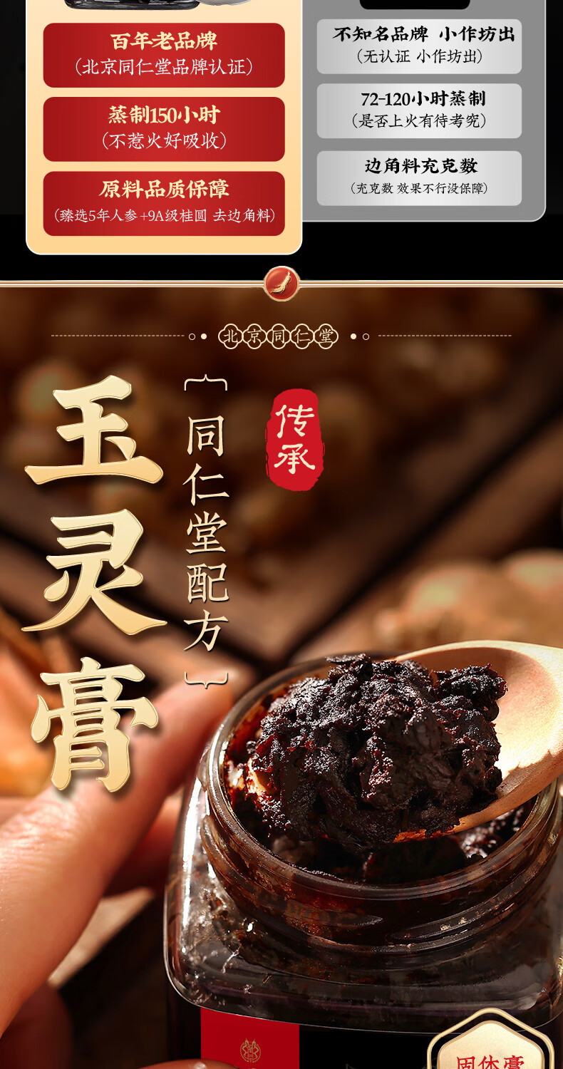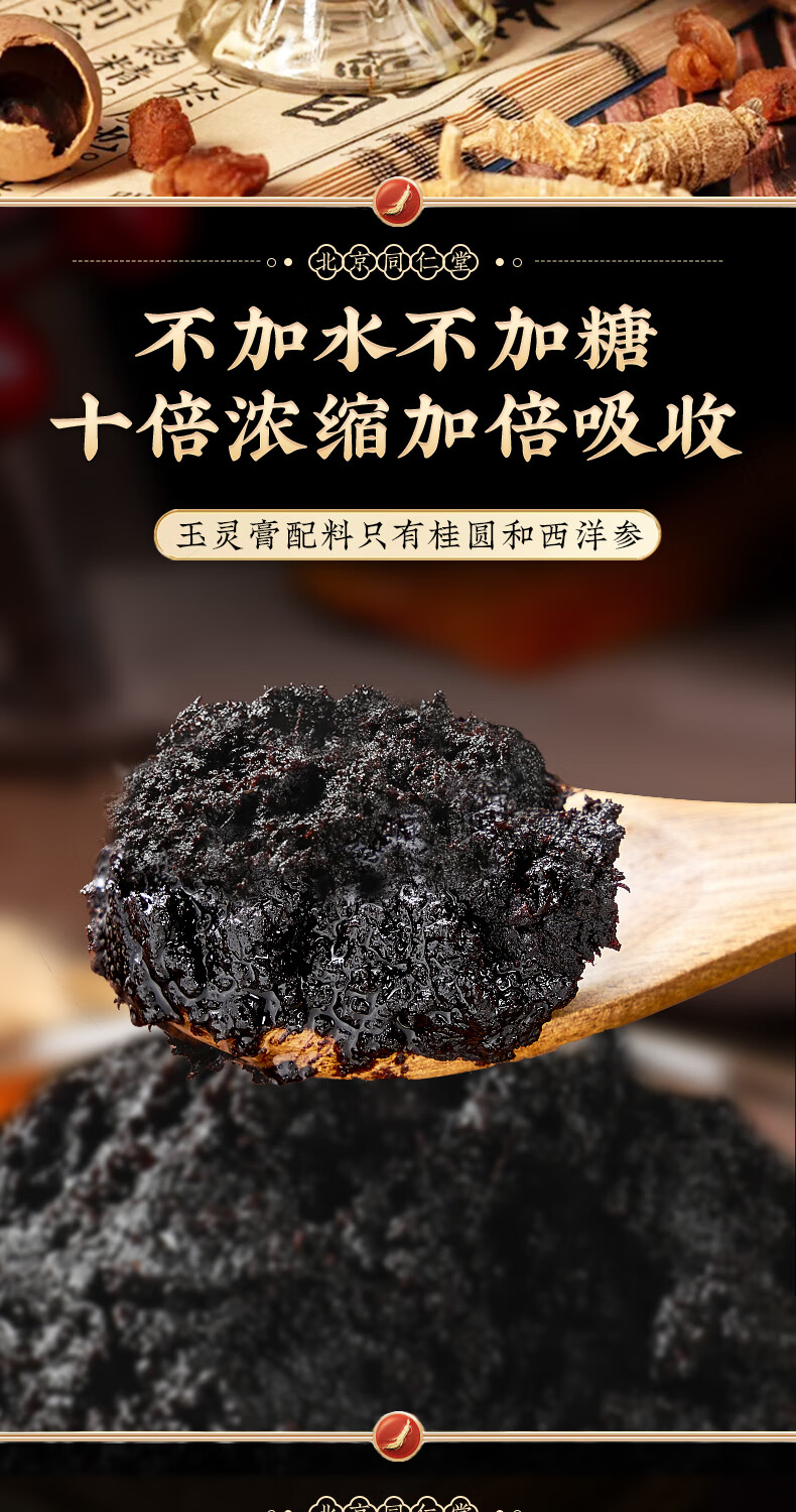内廷上用同仁堂玉灵膏西洋参桂圆男女性气血滋补古法手工蒸制养生膏3瓶装
