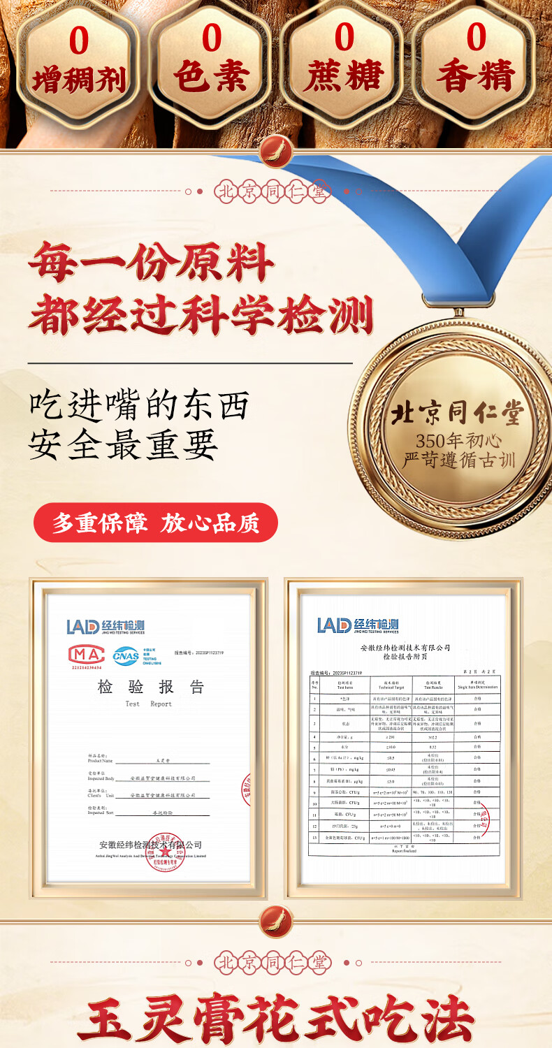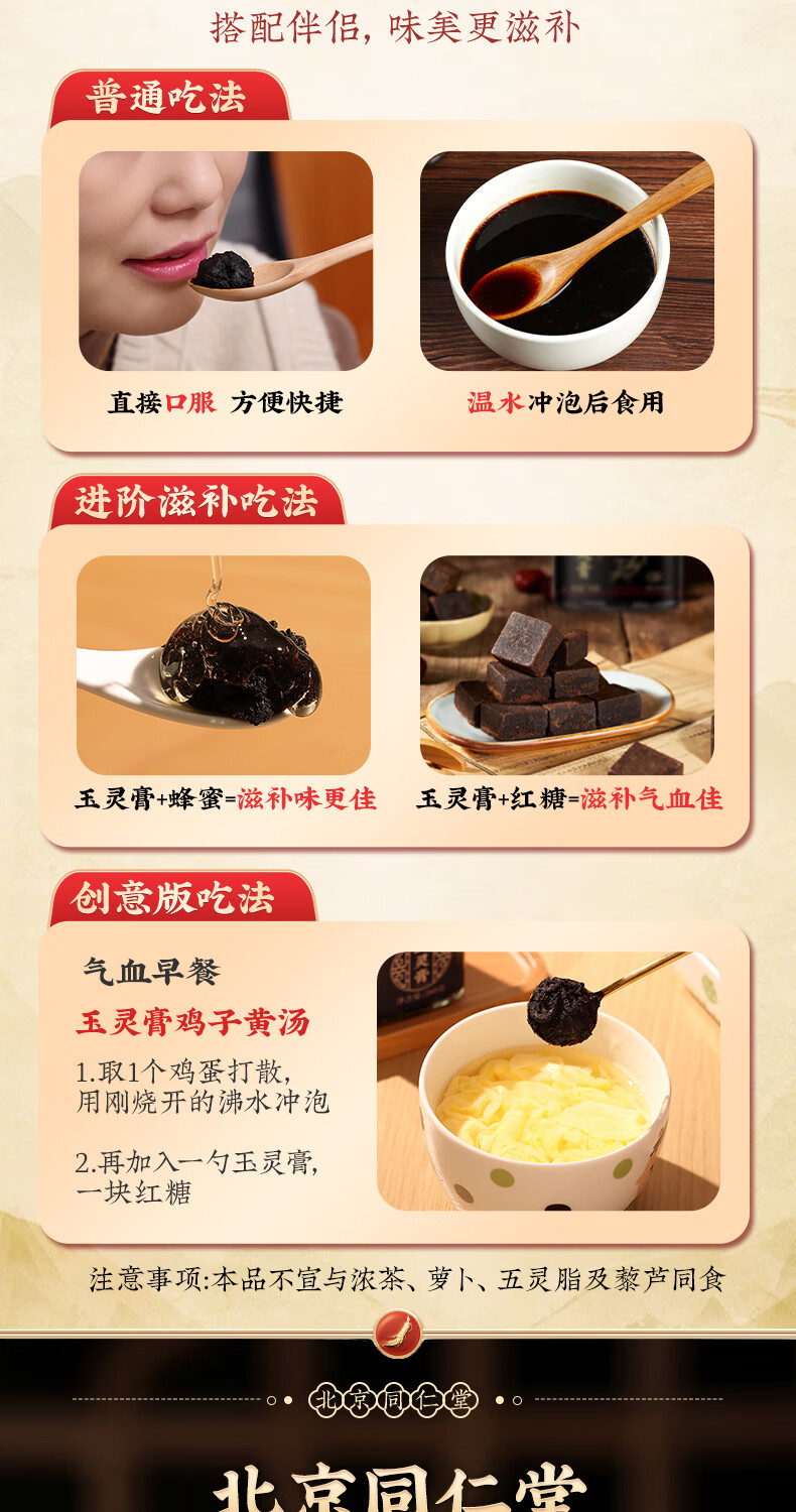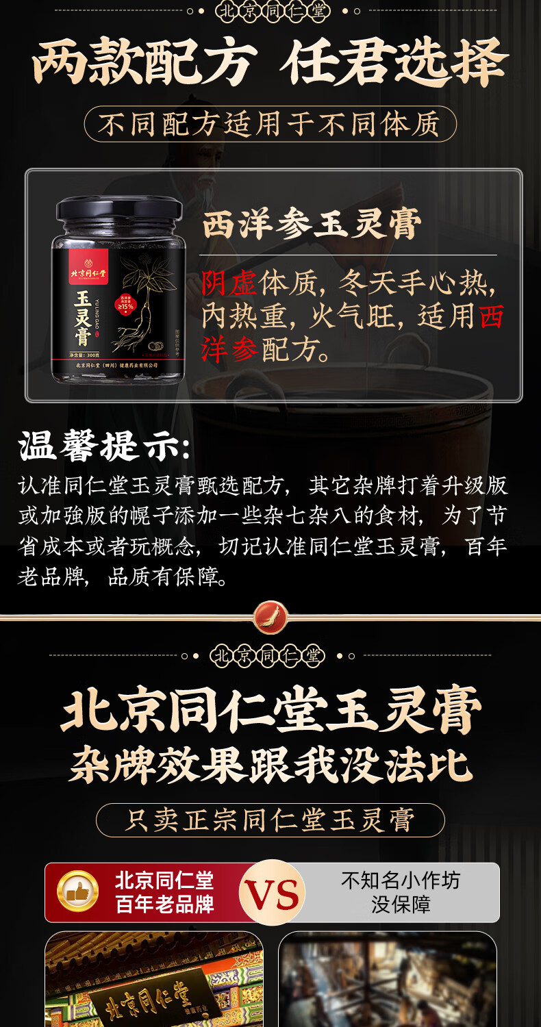 内廷上用同仁堂玉灵膏西洋参桂圆男女性气血滋补古法手工蒸制养生膏3瓶装