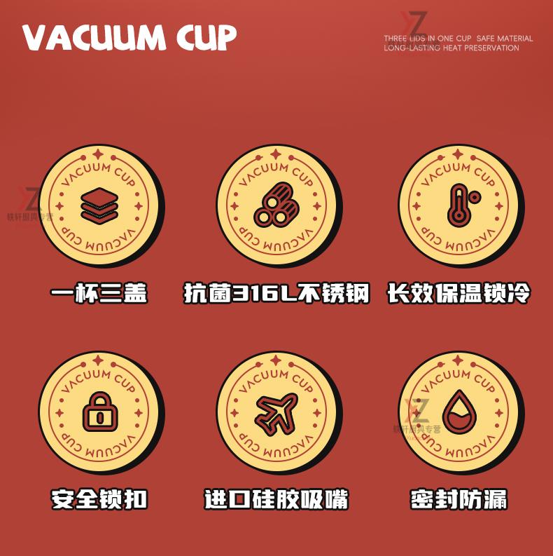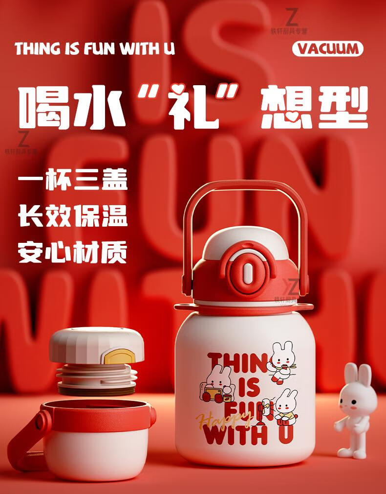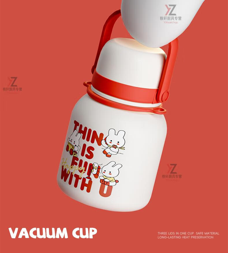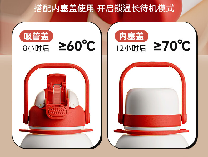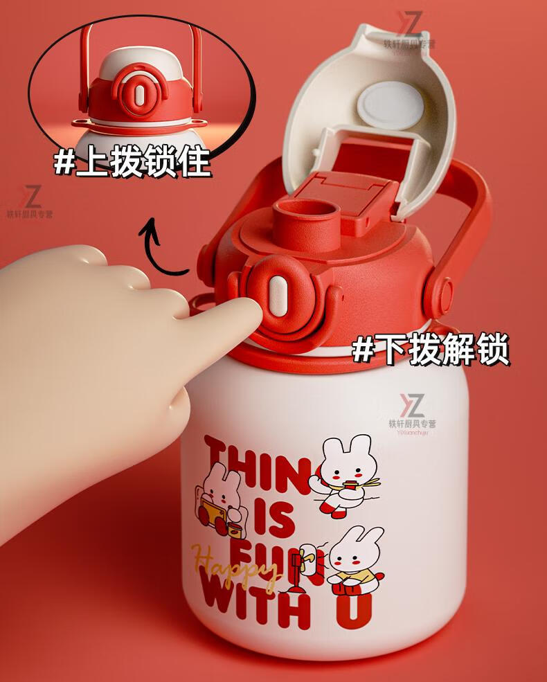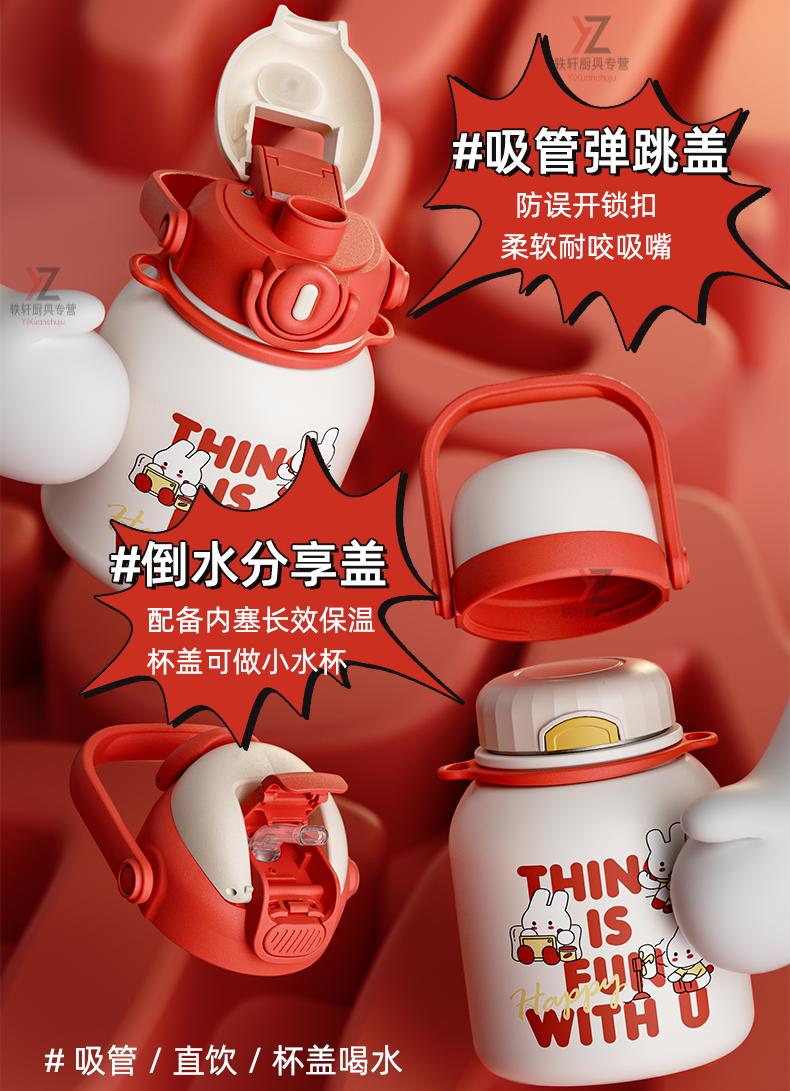 AILUKI日本儿童保温杯大容量316水壶吸管水杯女学生上学专用杯子 【双盖款】红色三饮【抗菌316+吸管直饮 800ml 316不锈钢