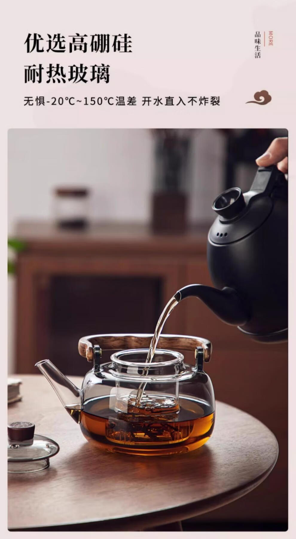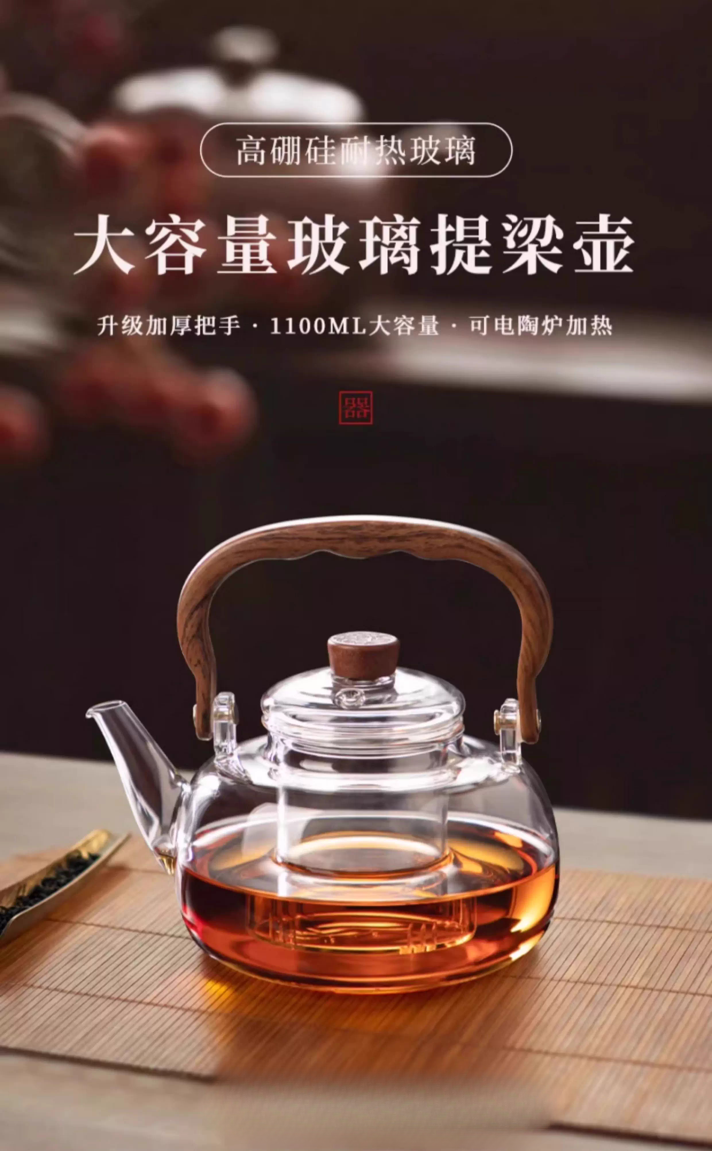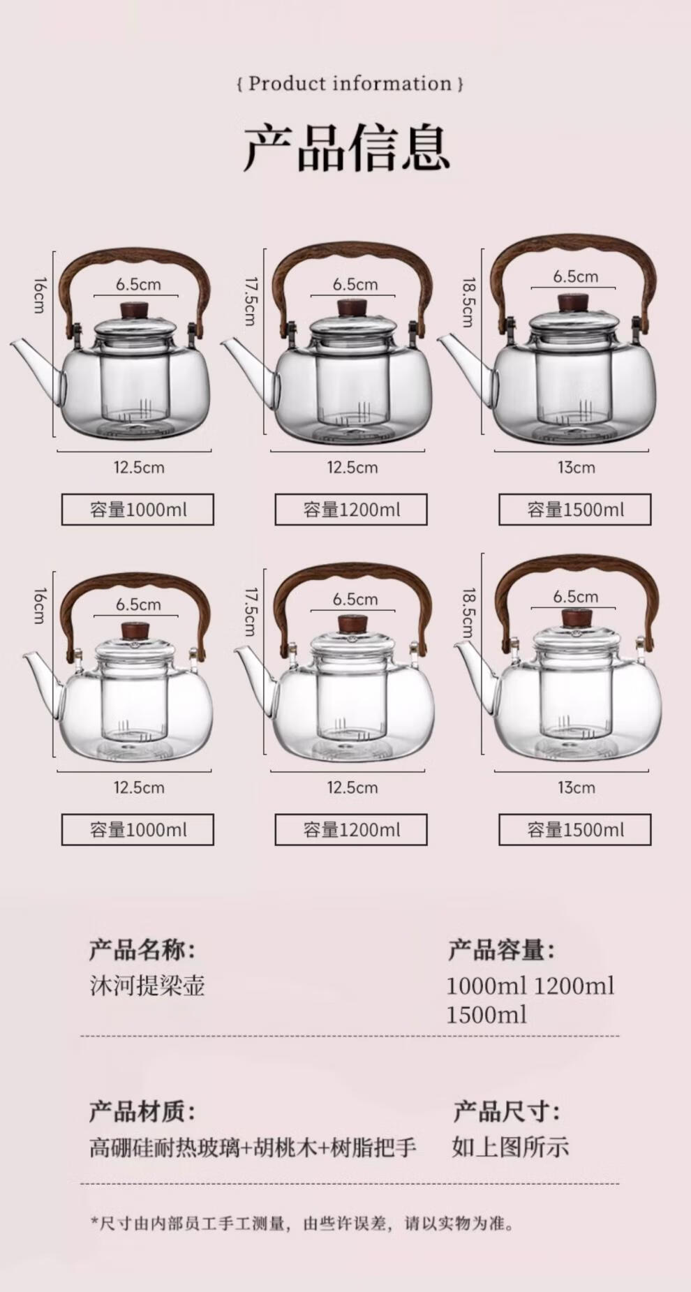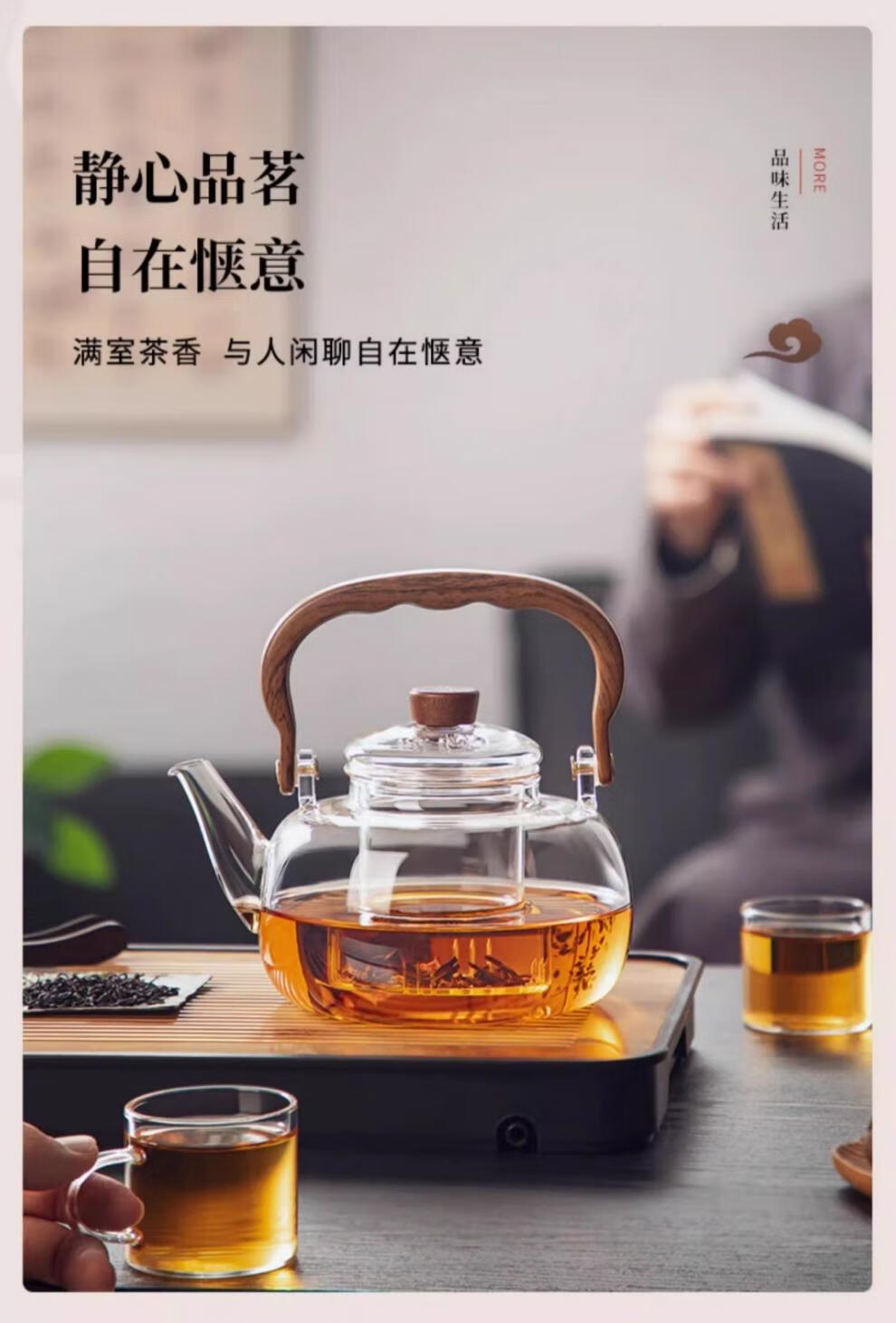 AILUKI日本玻璃煮茶壶耐高温加厚煮茶器电陶炉家用提梁壶烧水泡茶壶2025 沐河提梁单壶 1000ml 【至尊10件套】