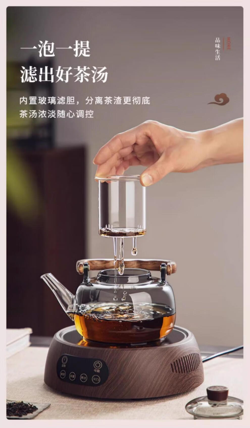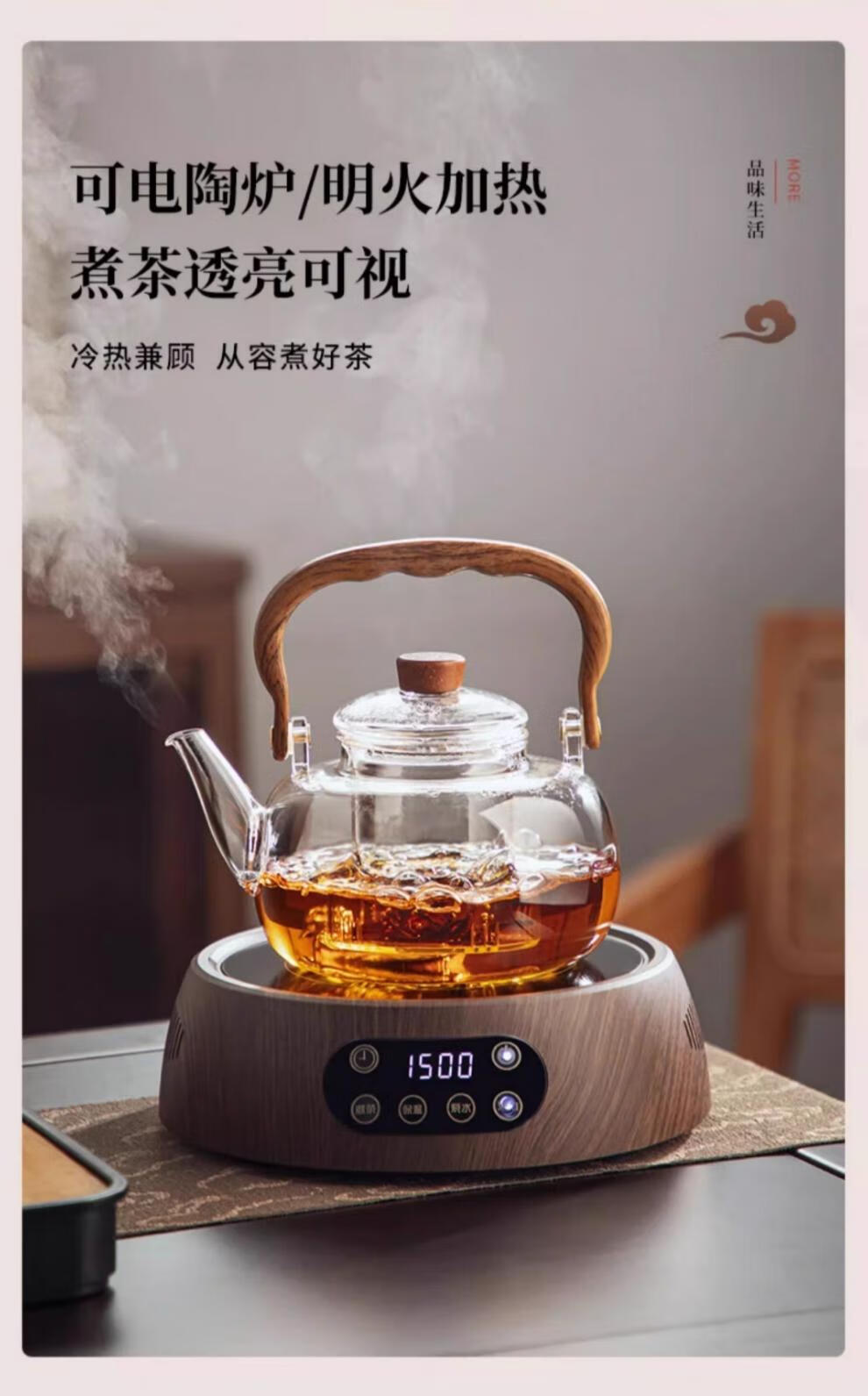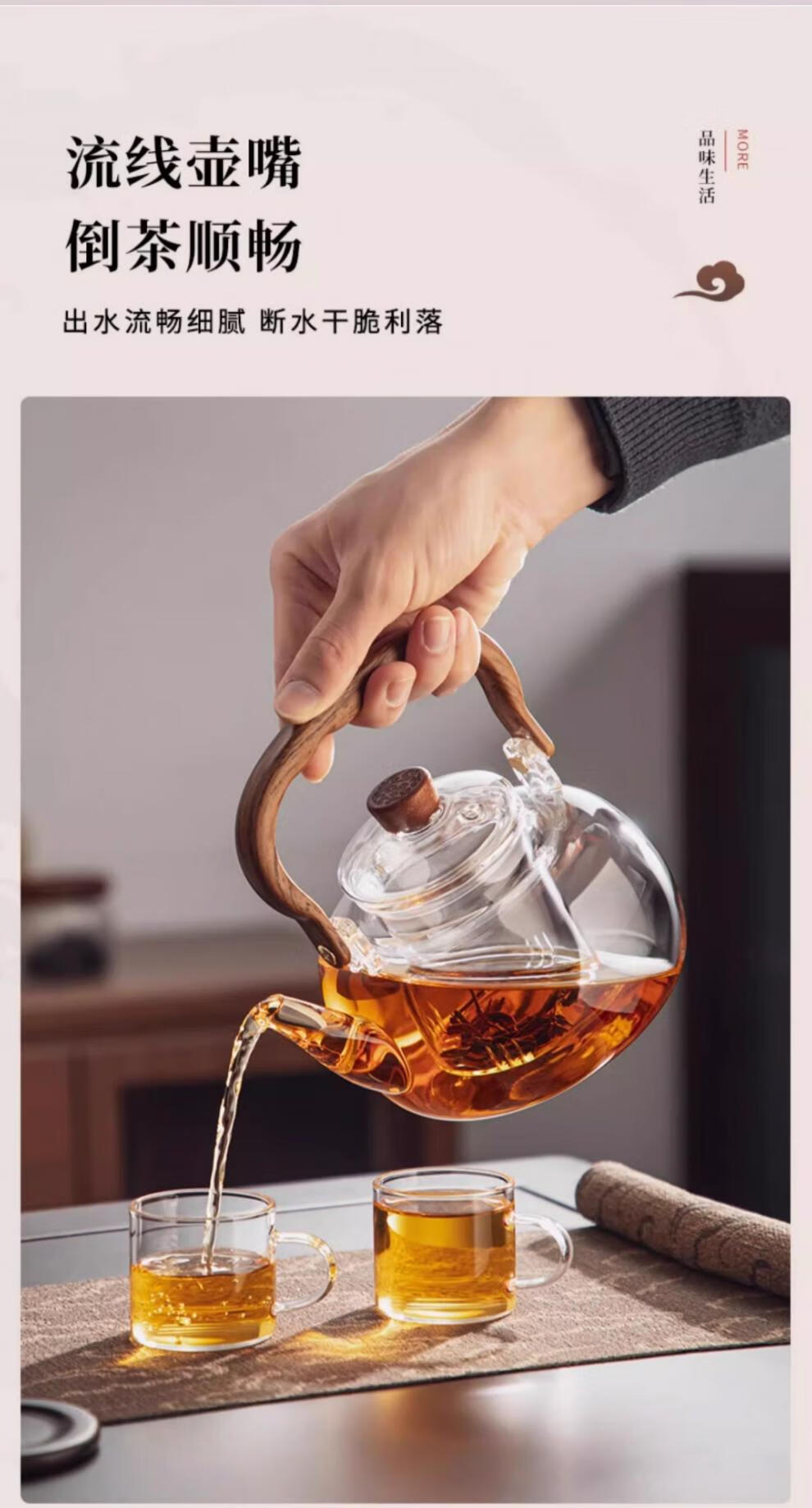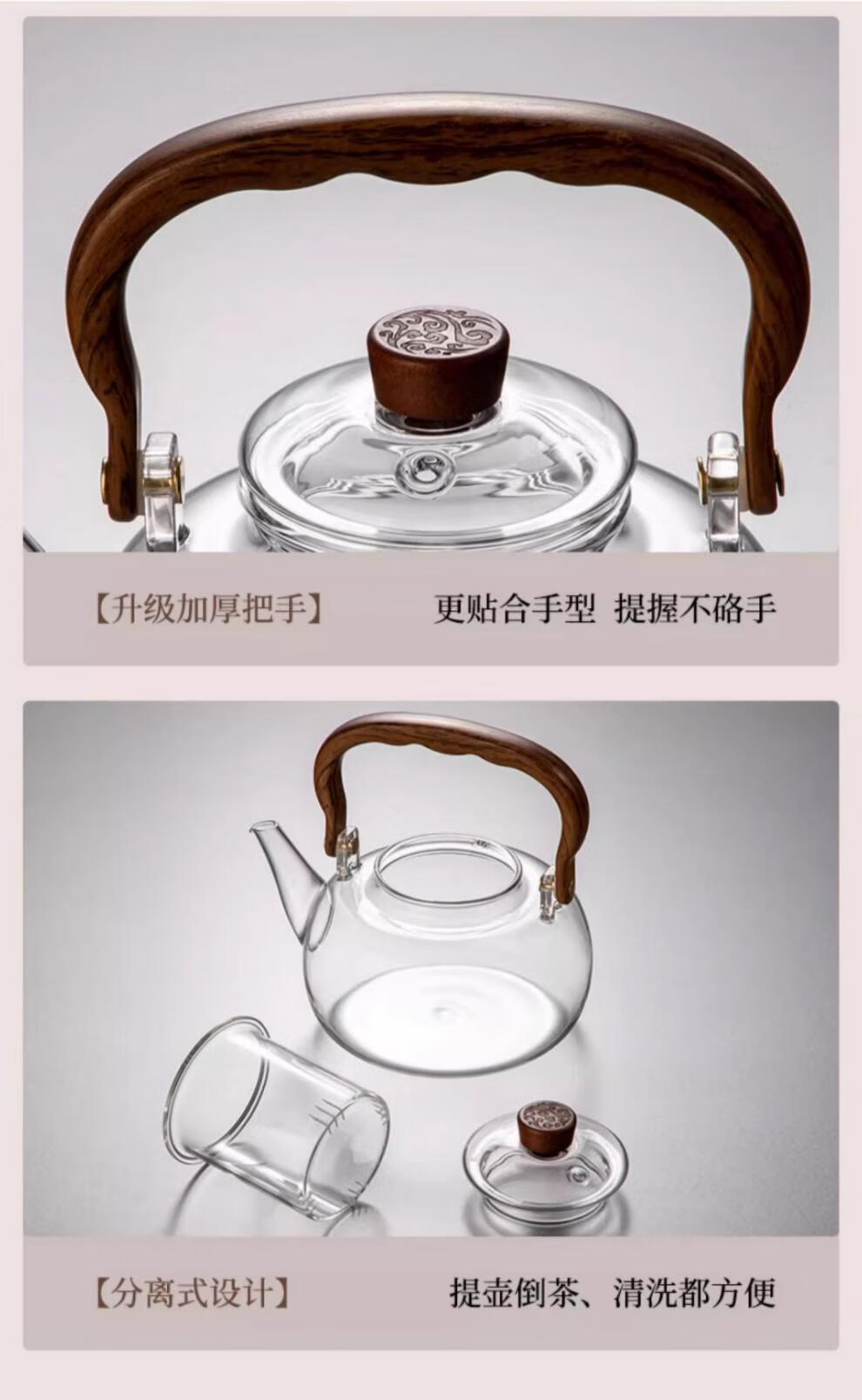 AILUKI日本玻璃煮茶壶耐高温加厚煮茶器电陶炉家用提梁壶烧水泡茶壶2025 沐河提梁单壶 1000ml 【至尊10件套】