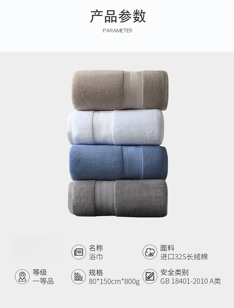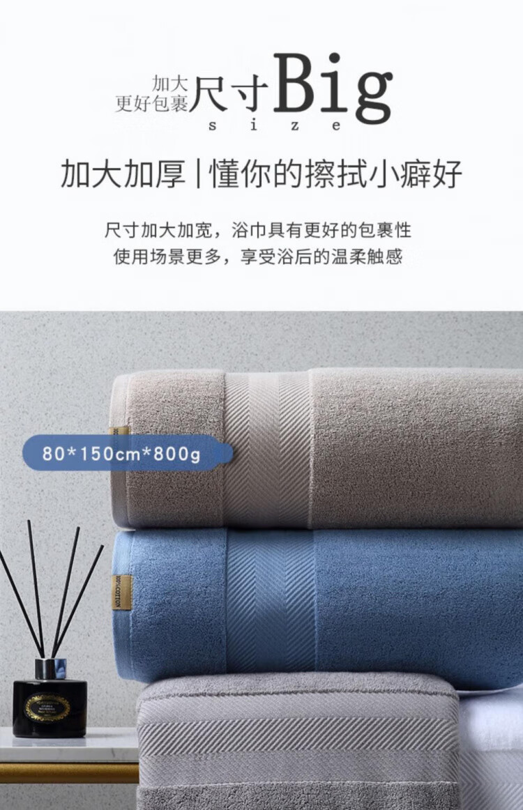 WCZ德国五星酒店浴巾加厚加大纯棉家用吸水男女大人毛巾2025新款全棉 650g_雅士灰_大浴巾 80cm*150cm