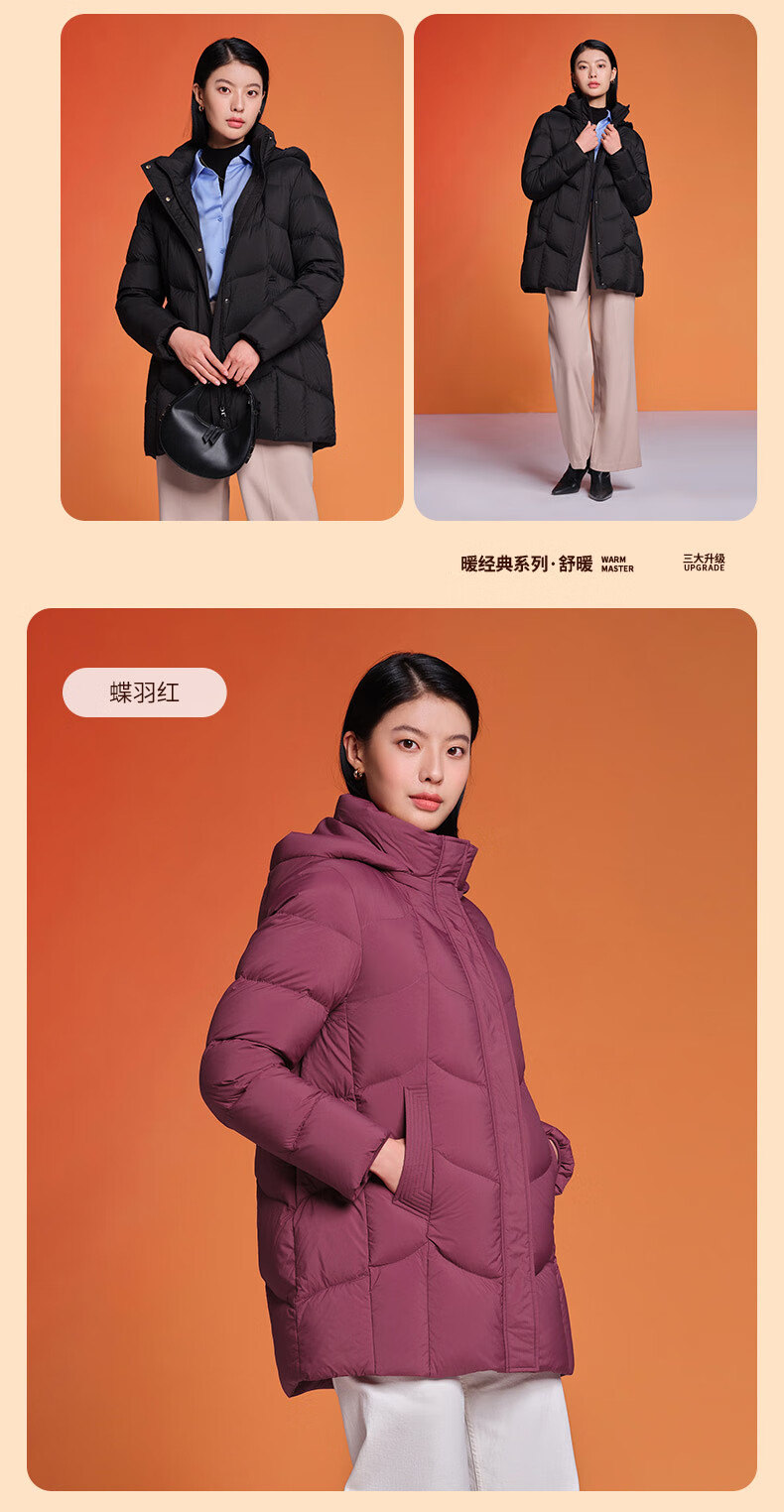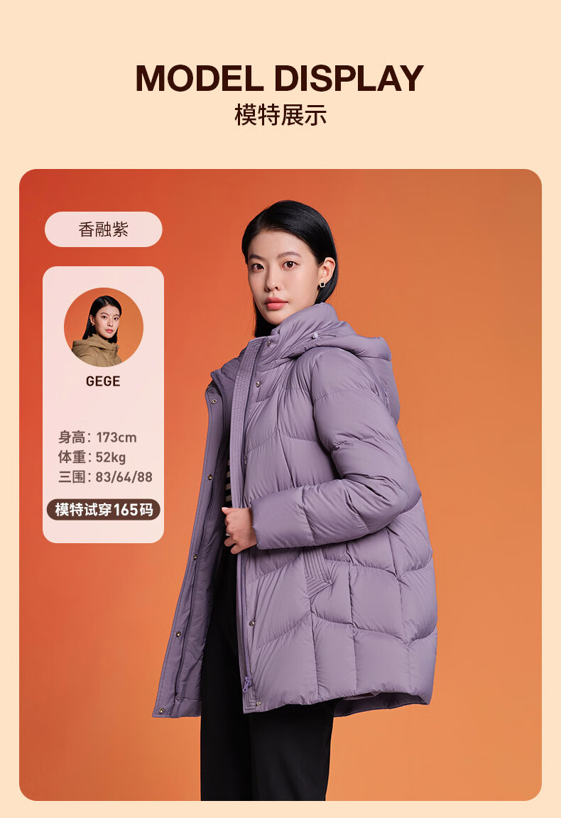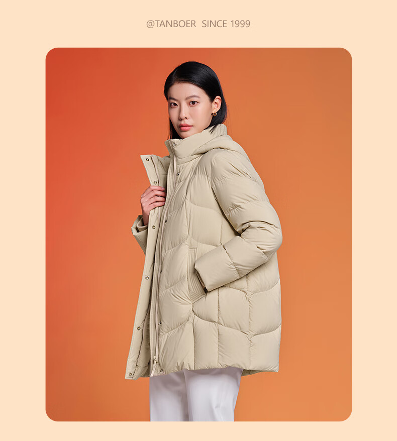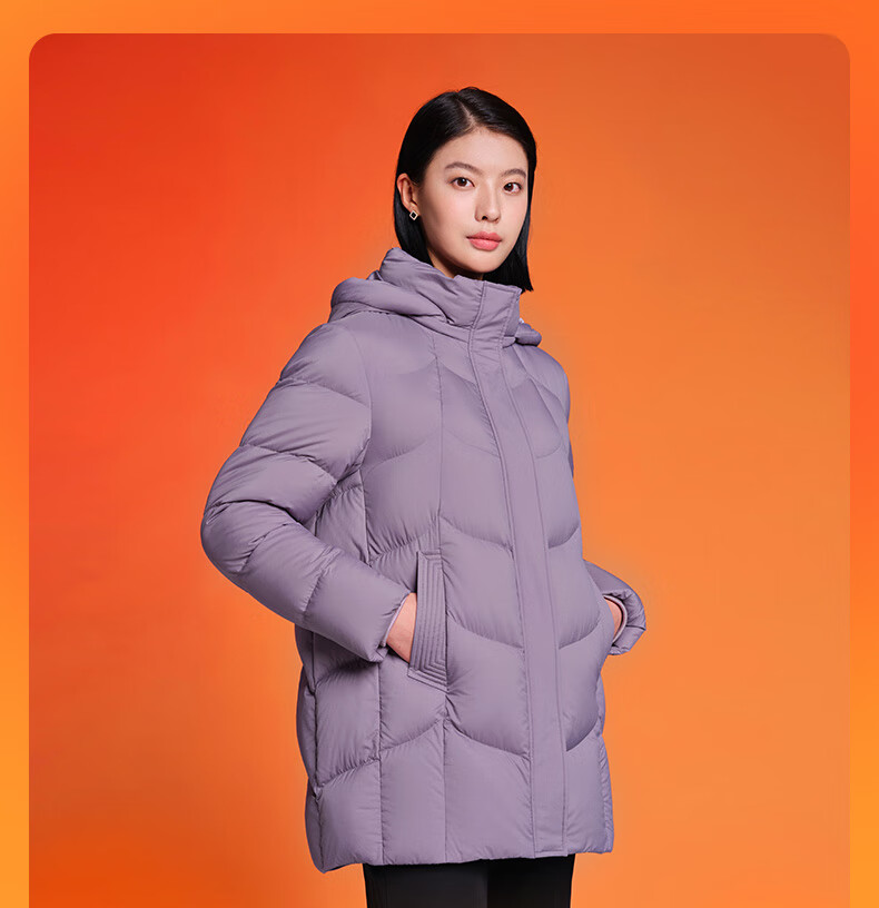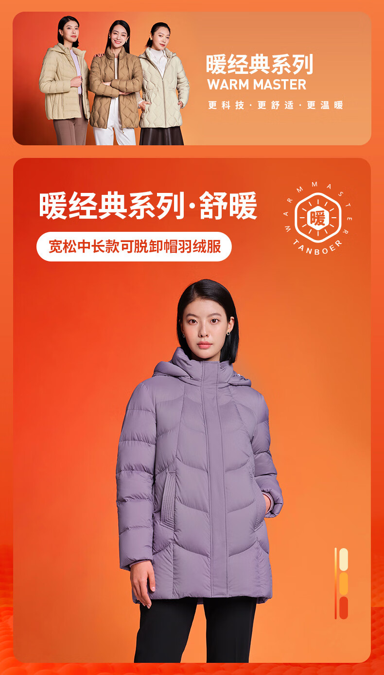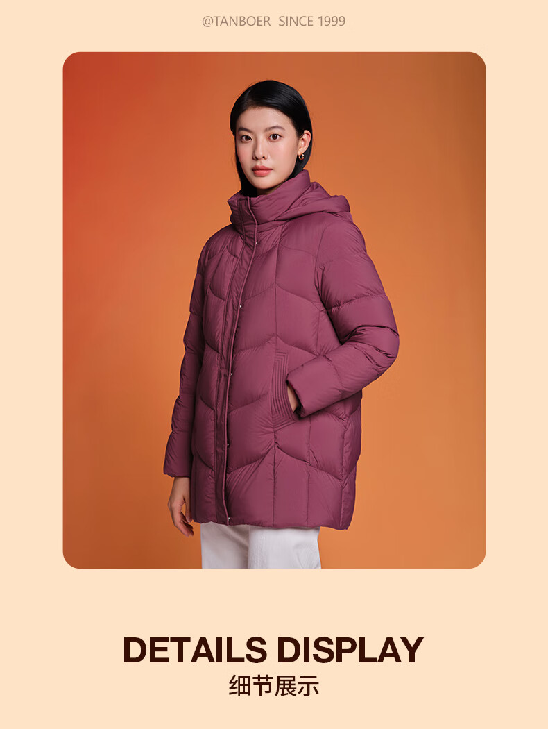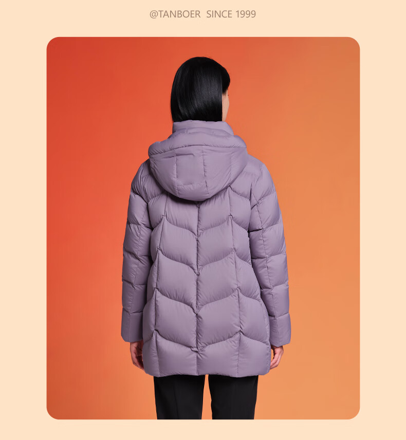 坦博尔羽绒服女中长款带帽宽松舒适保暖女士外套厚TW236558 香融紫 175