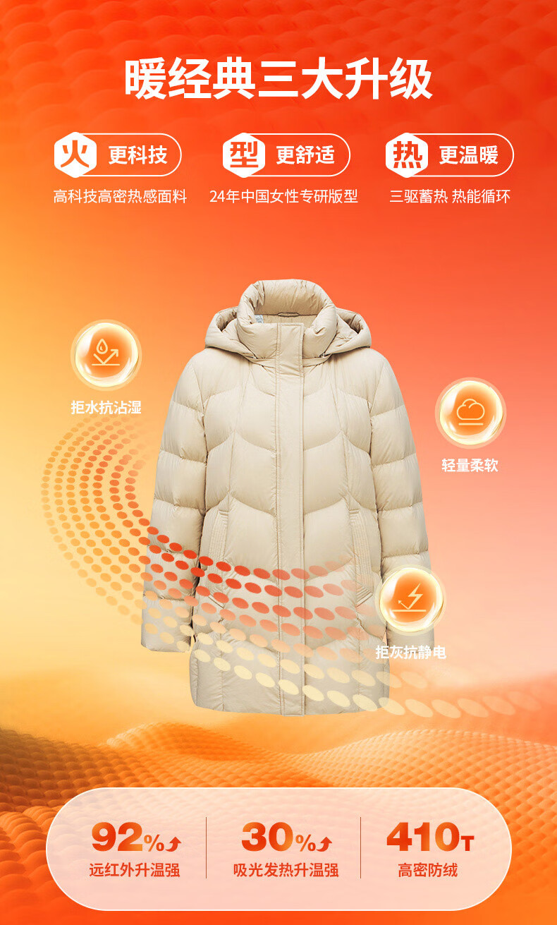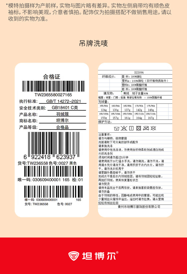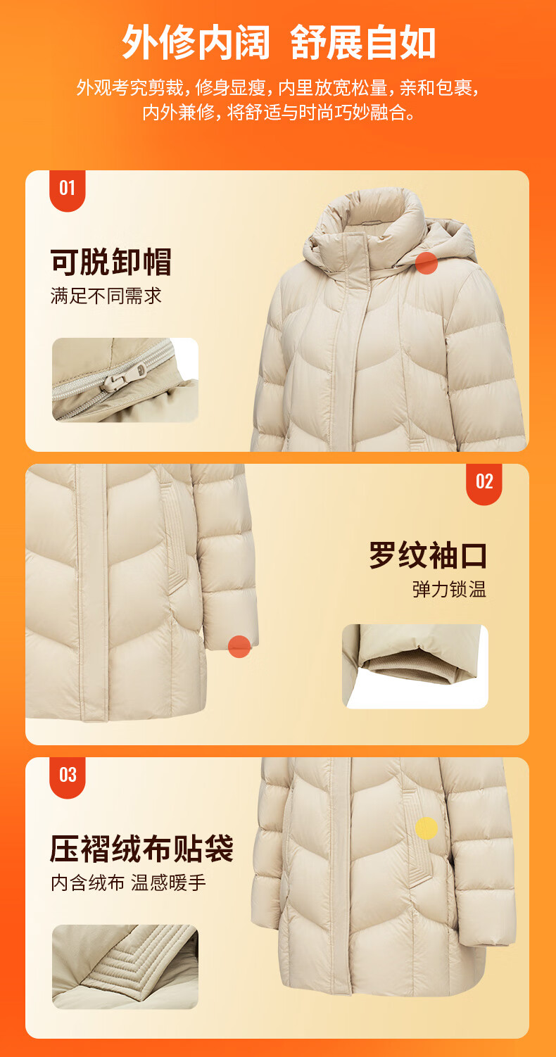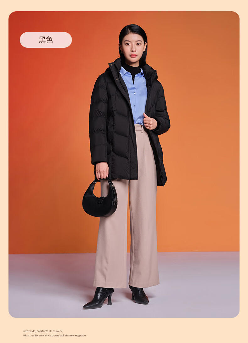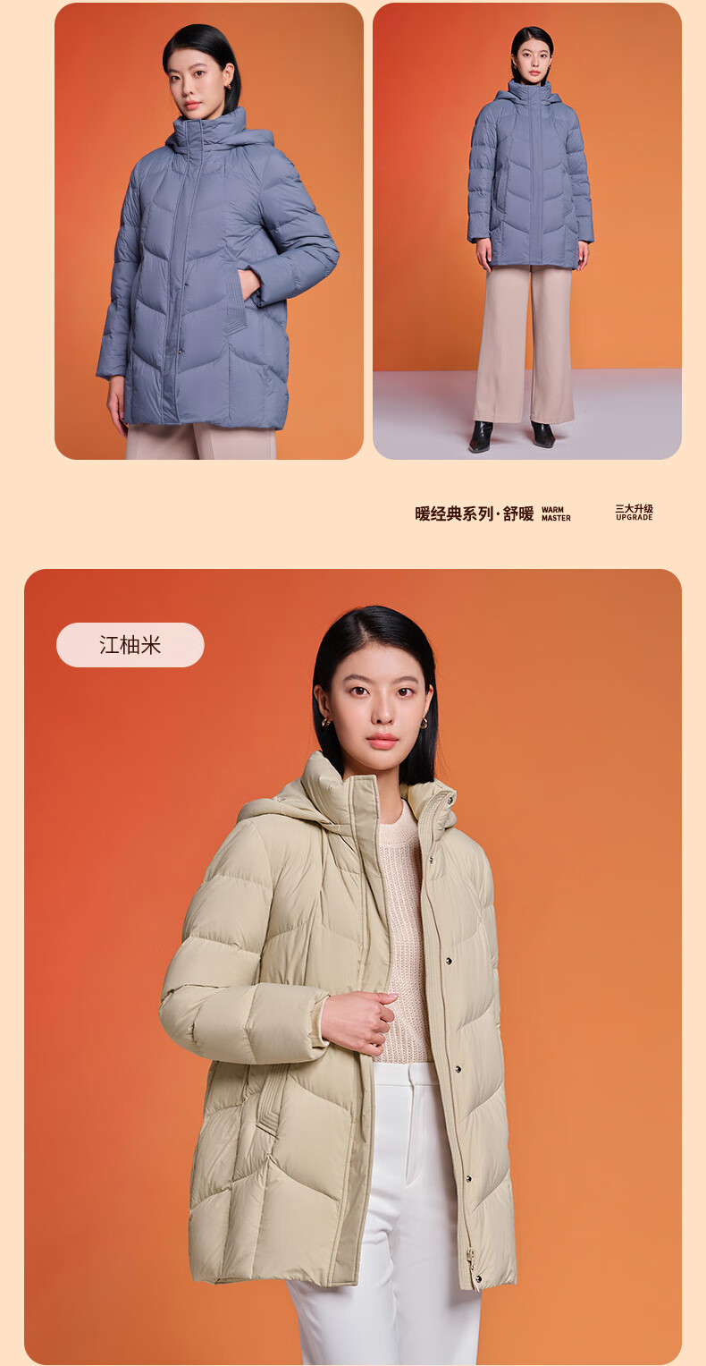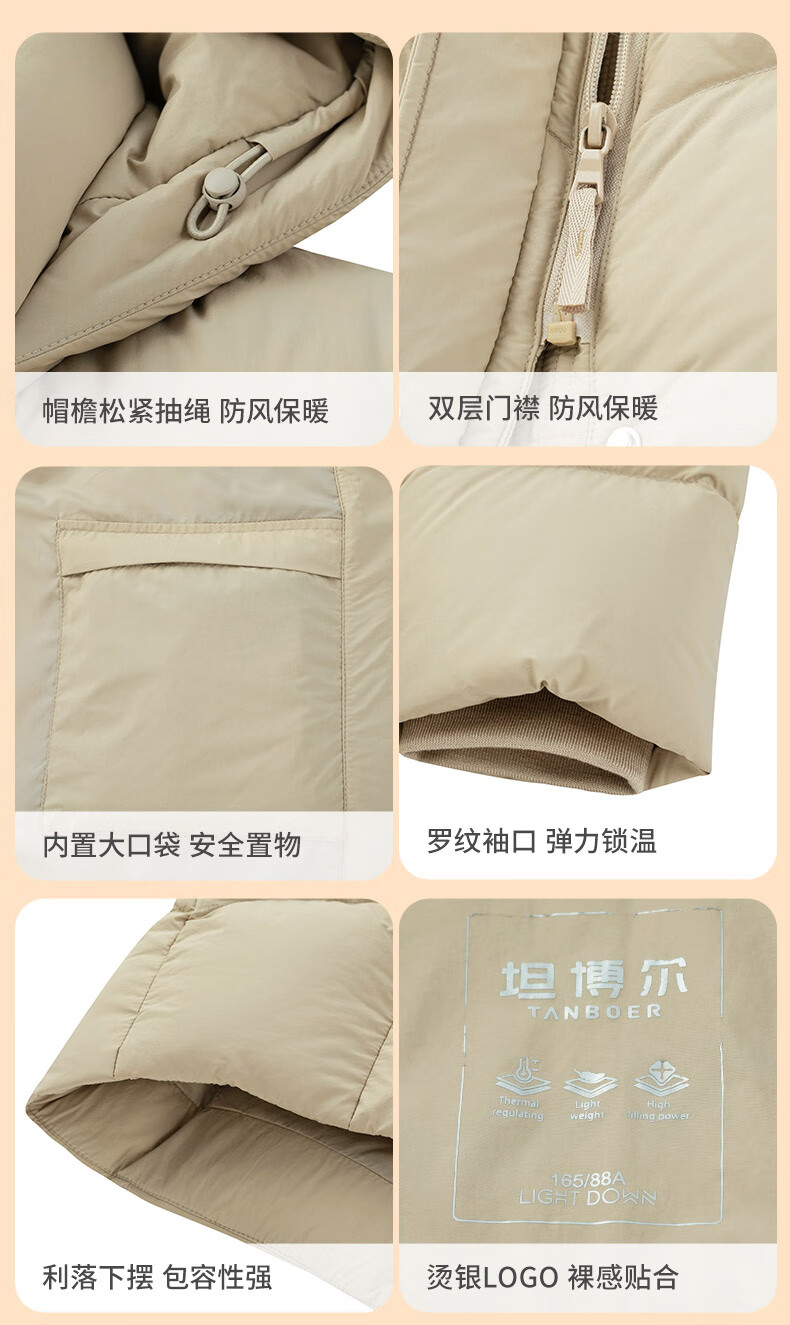 坦博尔羽绒服女中长款带帽宽松舒适保暖女士外套厚TW236558 香融紫 175
