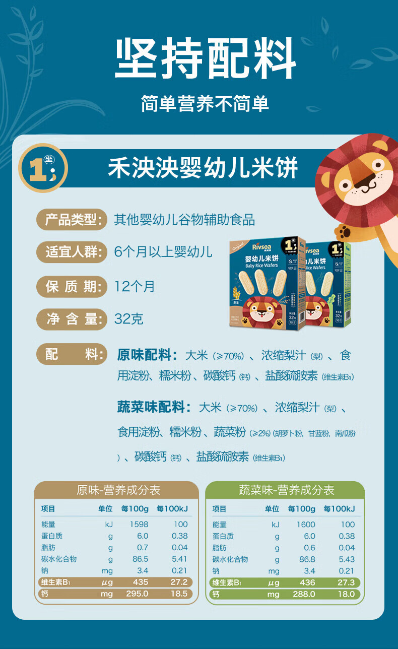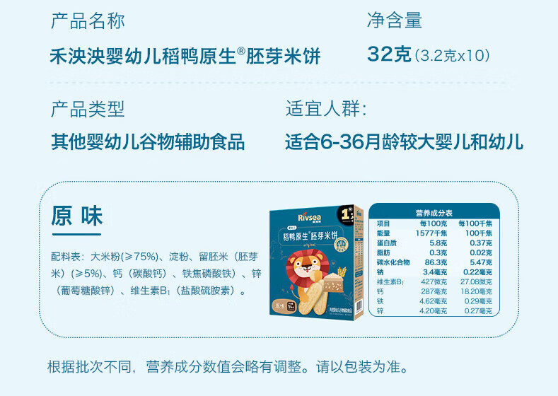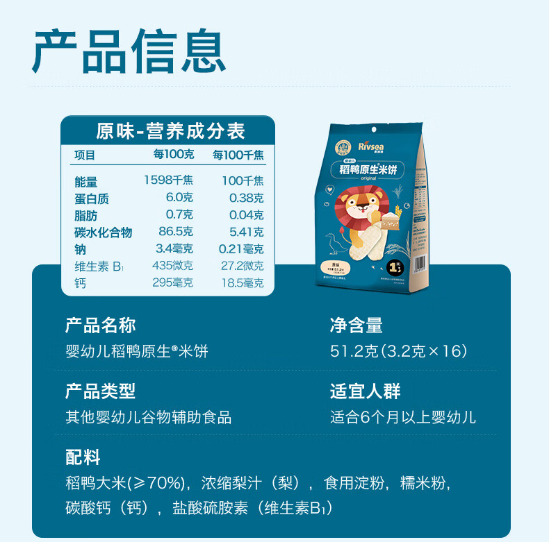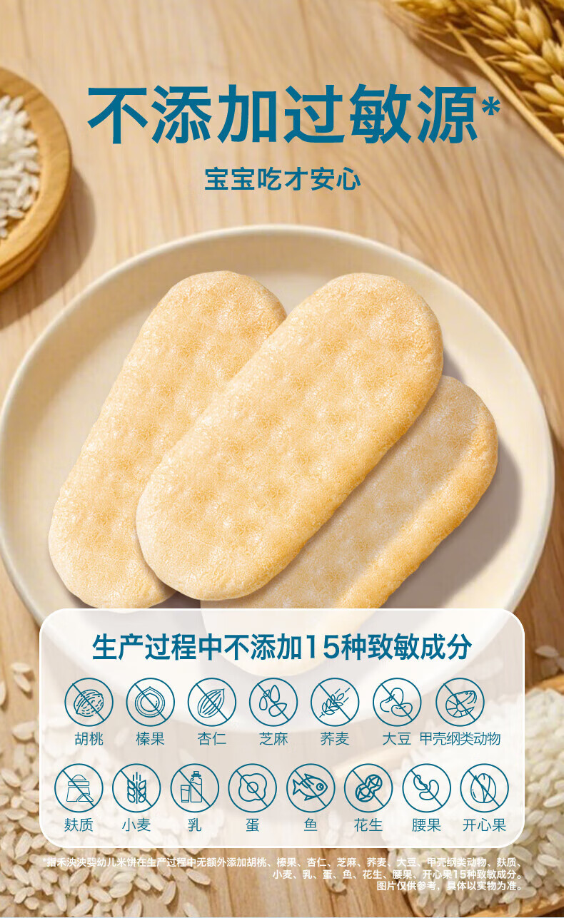禾泱泱婴幼儿稻鸭原生米饼宝宝零食婴儿辅食儿童磨牙棒饼干6月+ 1阶-米饼3袋【原味+蓝莓+蔬菜】