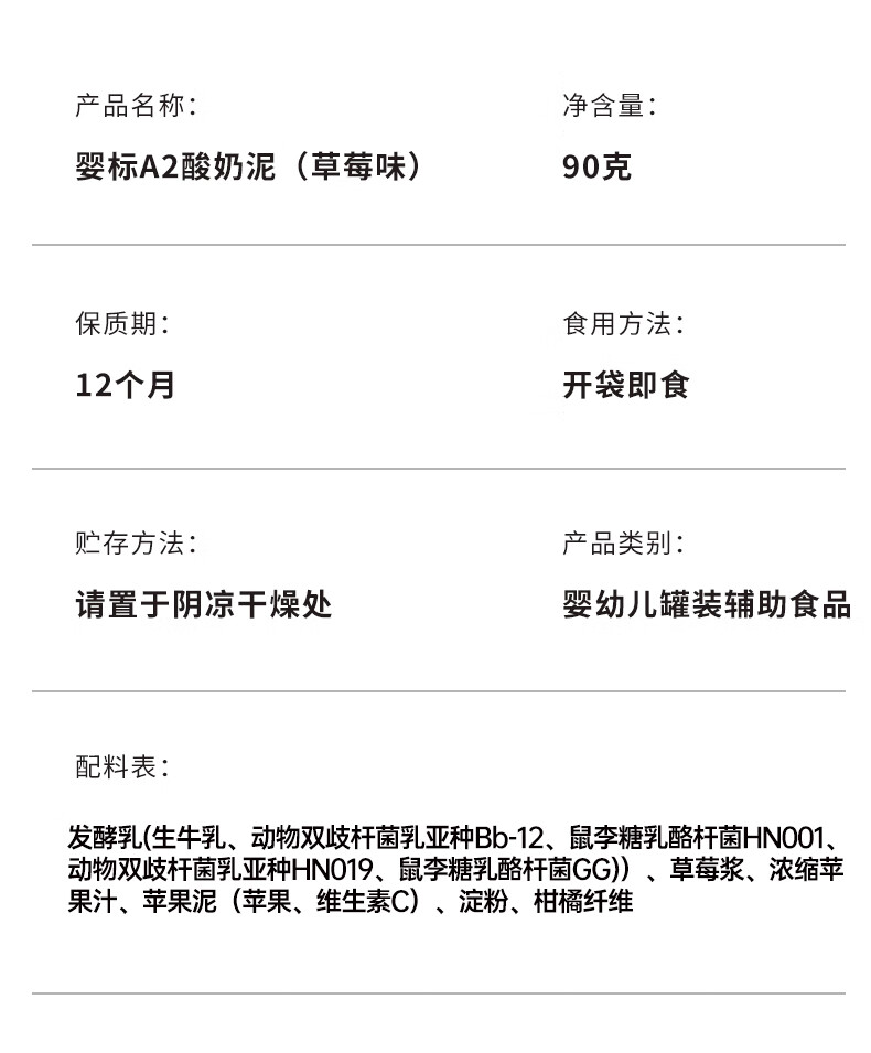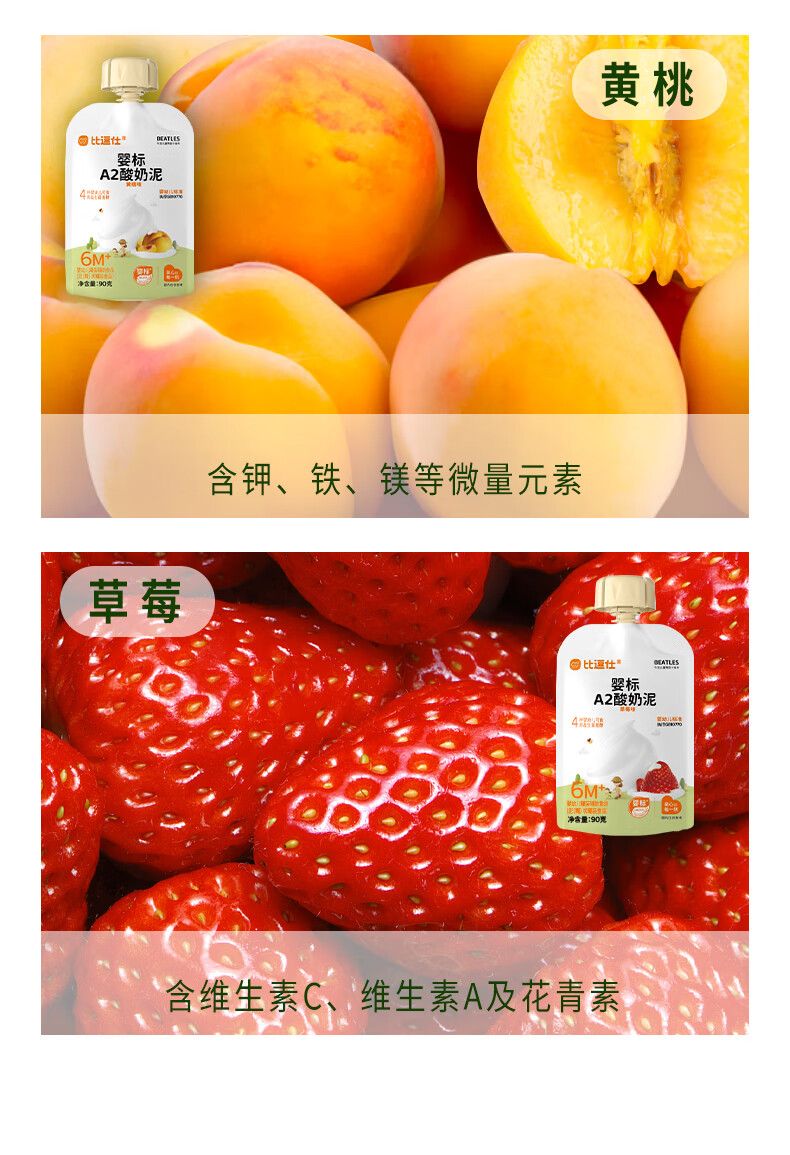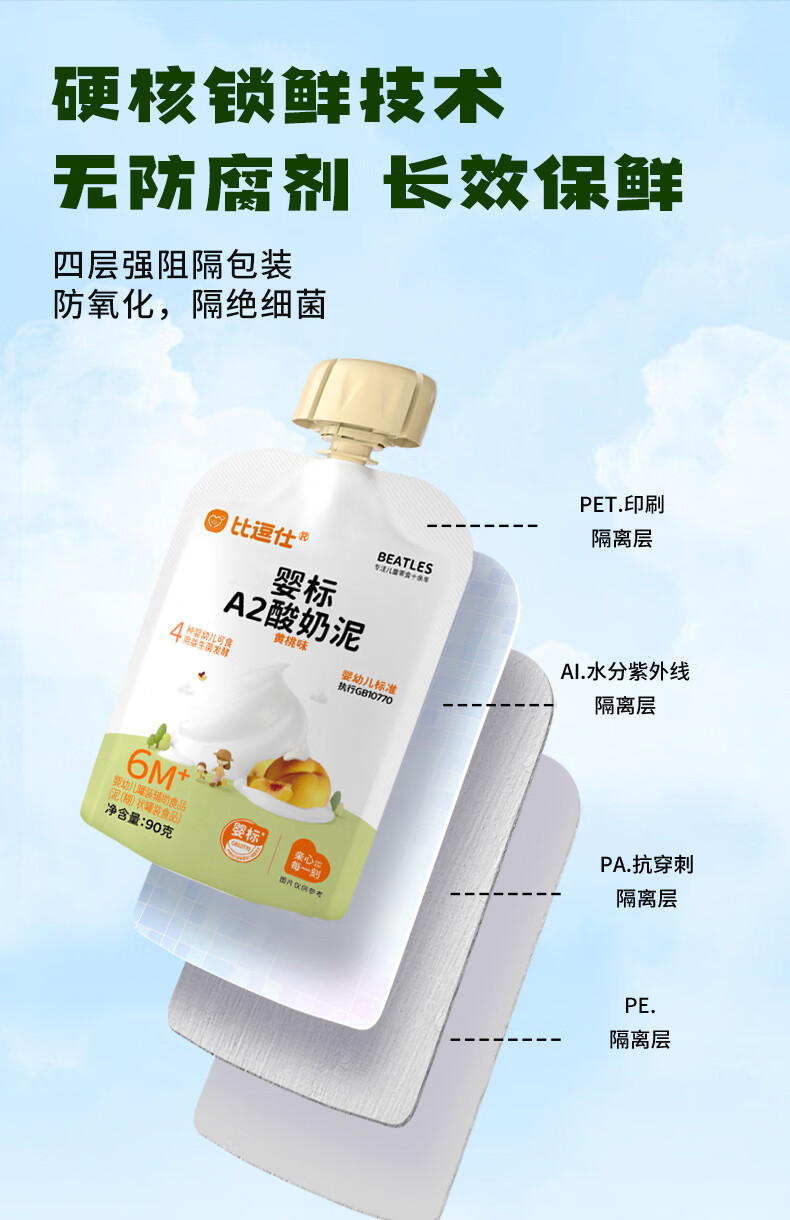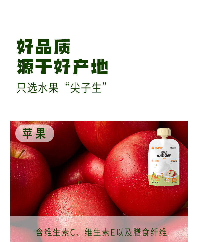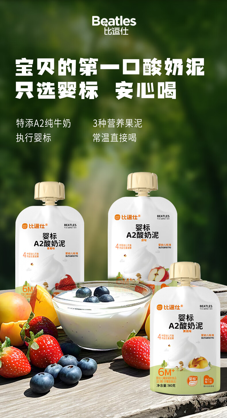 比逗仕婴标A2酸奶泥90g*10袋益生菌发酵苹果泥宝宝零食