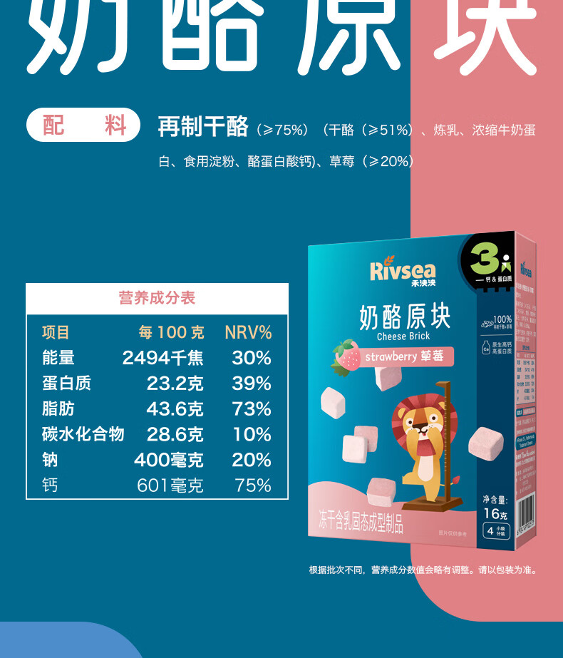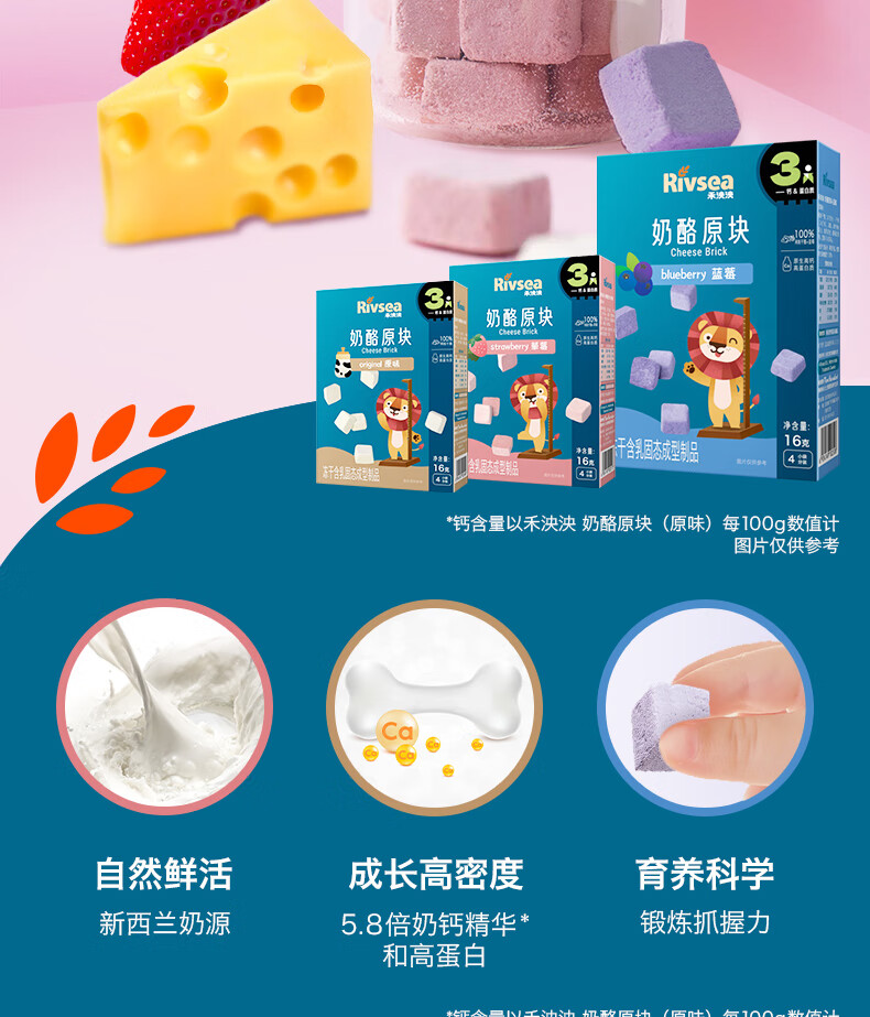 禾泱泱奶酪块 宝宝零食再制干酪51%奶酪 高钙高蛋白 方便携带出游小零食 【3阶】奶酪块蓝莓味