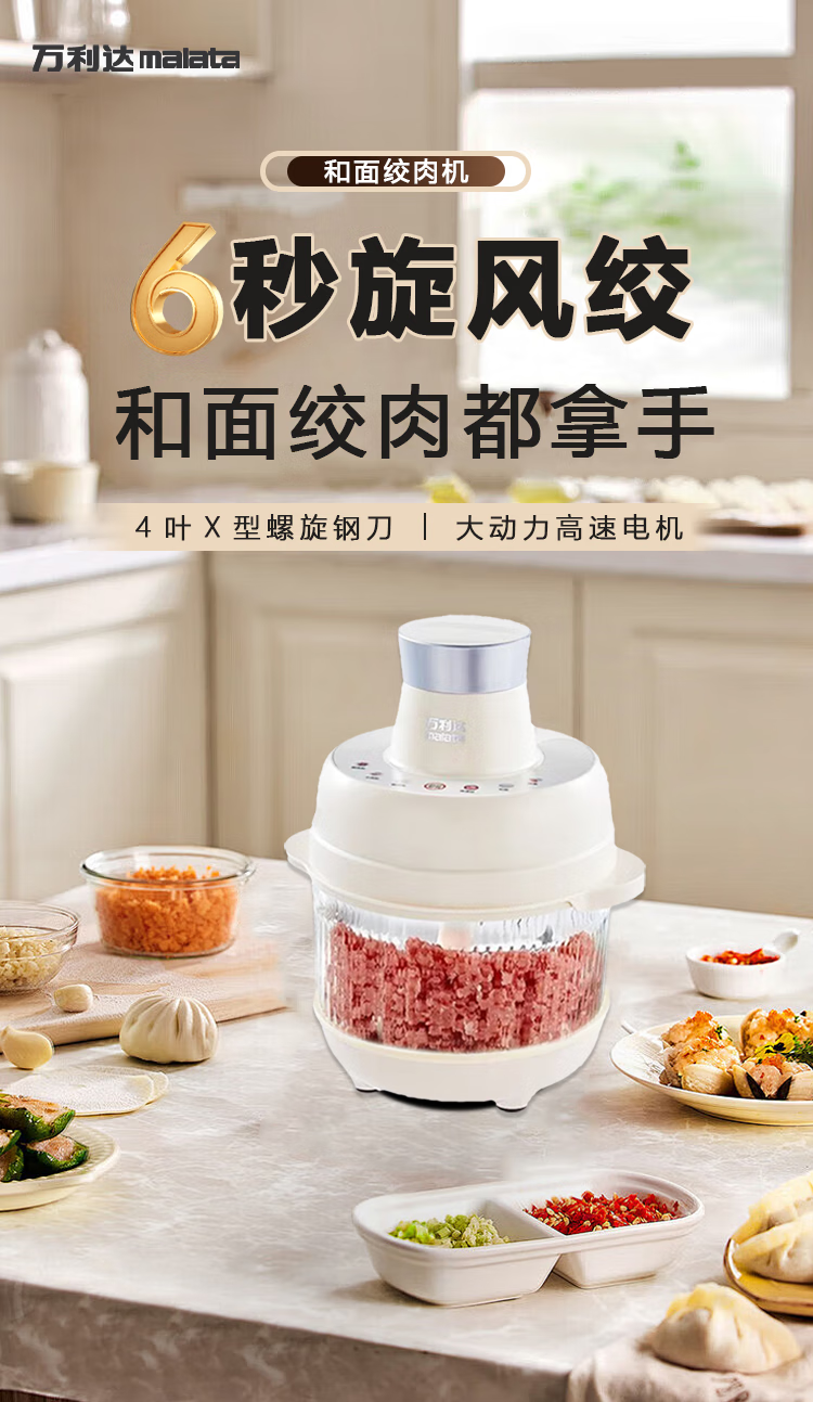 万利达料理机家用多功能和面机家用全自动和面揉面一体机绞肉机肉馅碎肉 智能旗舰款+纯铜电机-玻璃杯 5L
