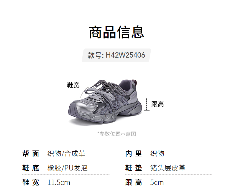热风(Hotwind)【商场同款】厚底老爹鞋女鞋2025冬季新款女士运动增高显瘦休闲鞋 137灰紫 36
