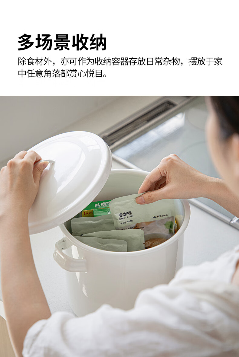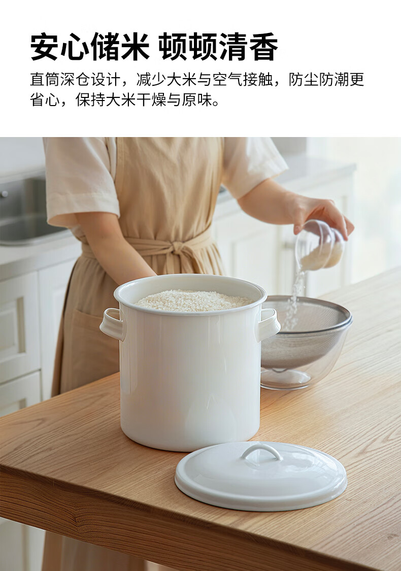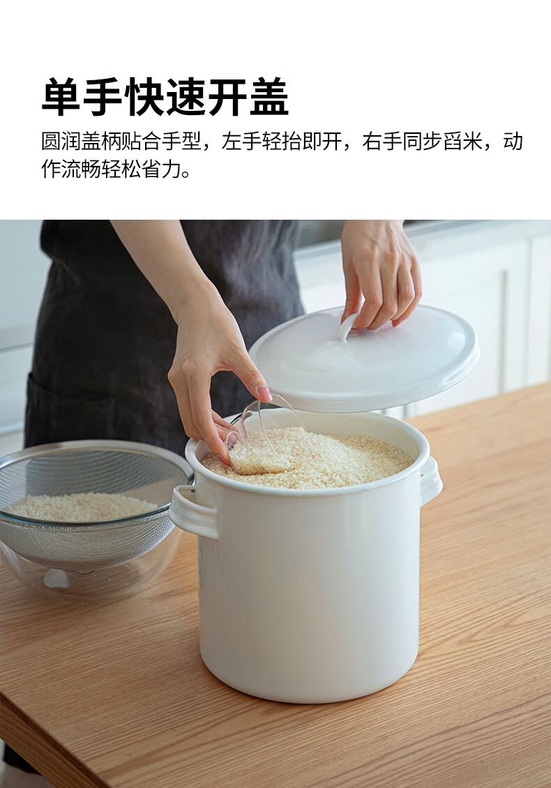 霜山搪瓷米桶老式带提手大容量带盖米缸五谷杂粮果蔬收纳桶储物罐 【6.6L】高25cm 能装约5kg大米