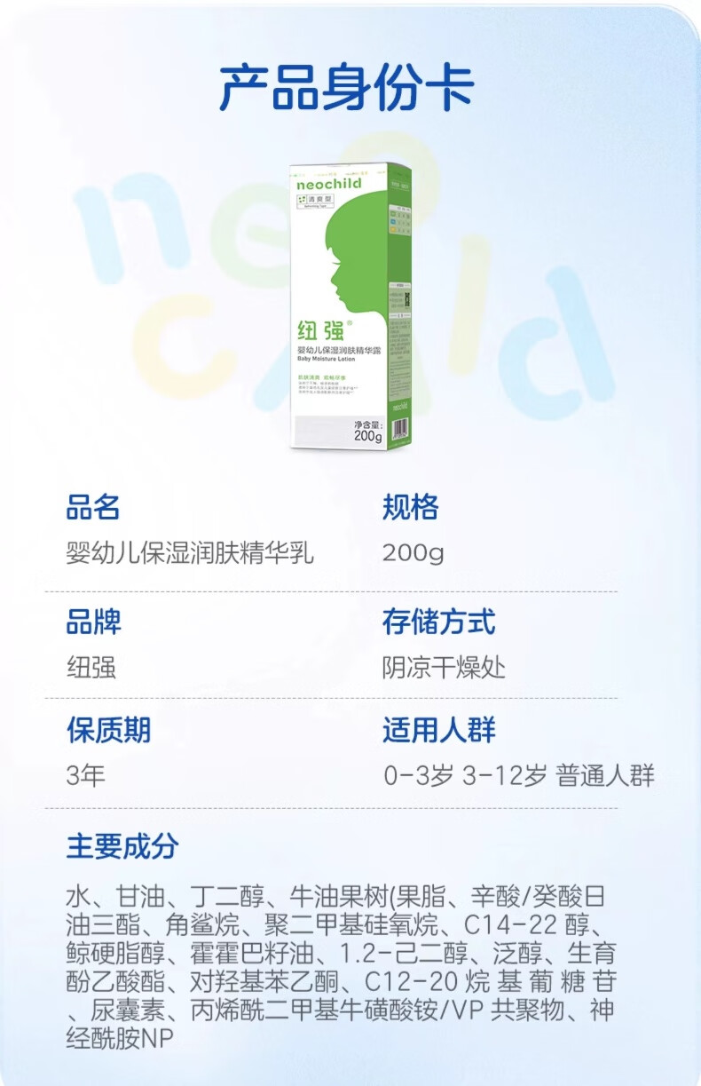 纽强婴儿保湿精华露婴幼儿童面霜保湿舒缓润肤乳全身可用宝宝身体乳 精华露