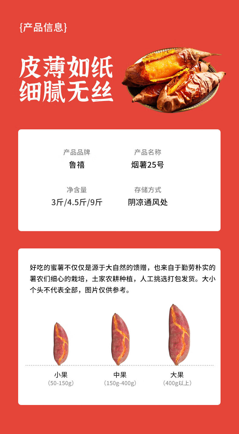 春福乐 山东烟薯25号 新鲜红薯糖心蜜薯现挖沙地番薯山芋农家自种烤地瓜 5斤甄选装【香甜流油】净4.5斤