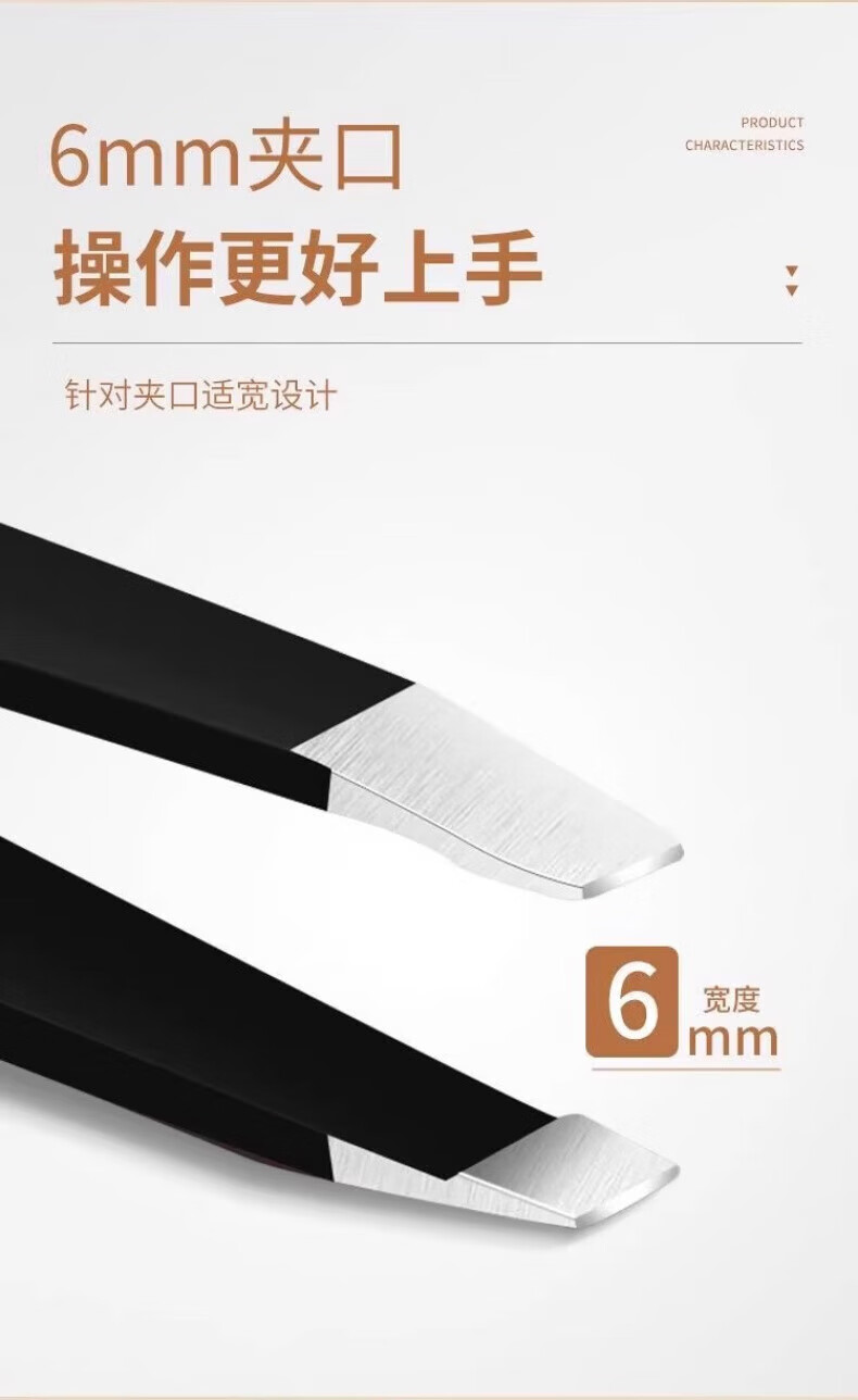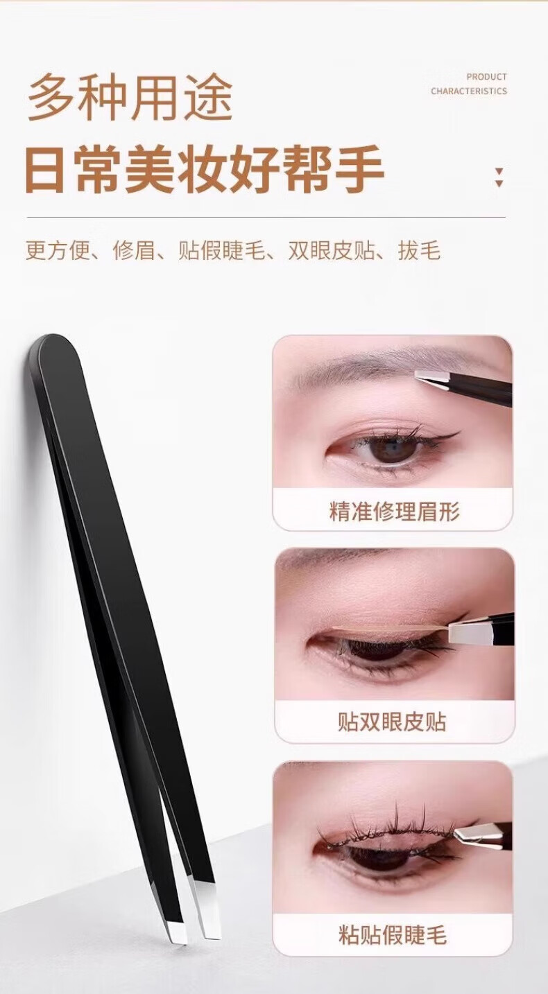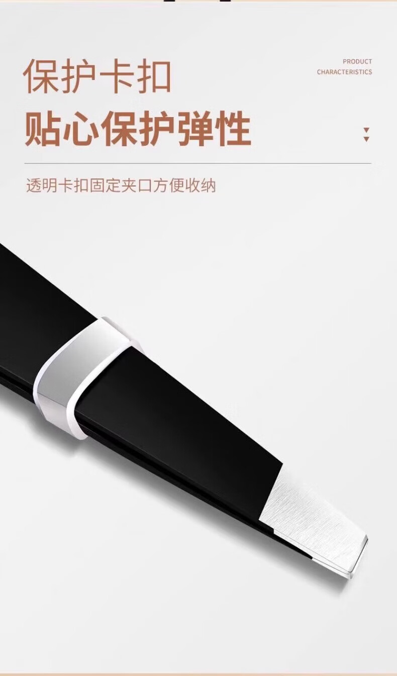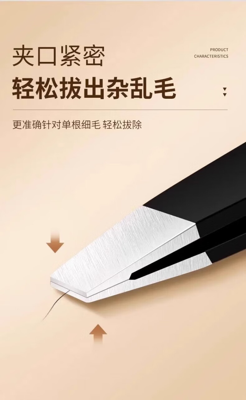 AILUKI日本护理眉毛夹镊子专业拔胡子神器男士高精密眉夹拔毛镊子拔白头 黑色-平+斜(送收纳盒)