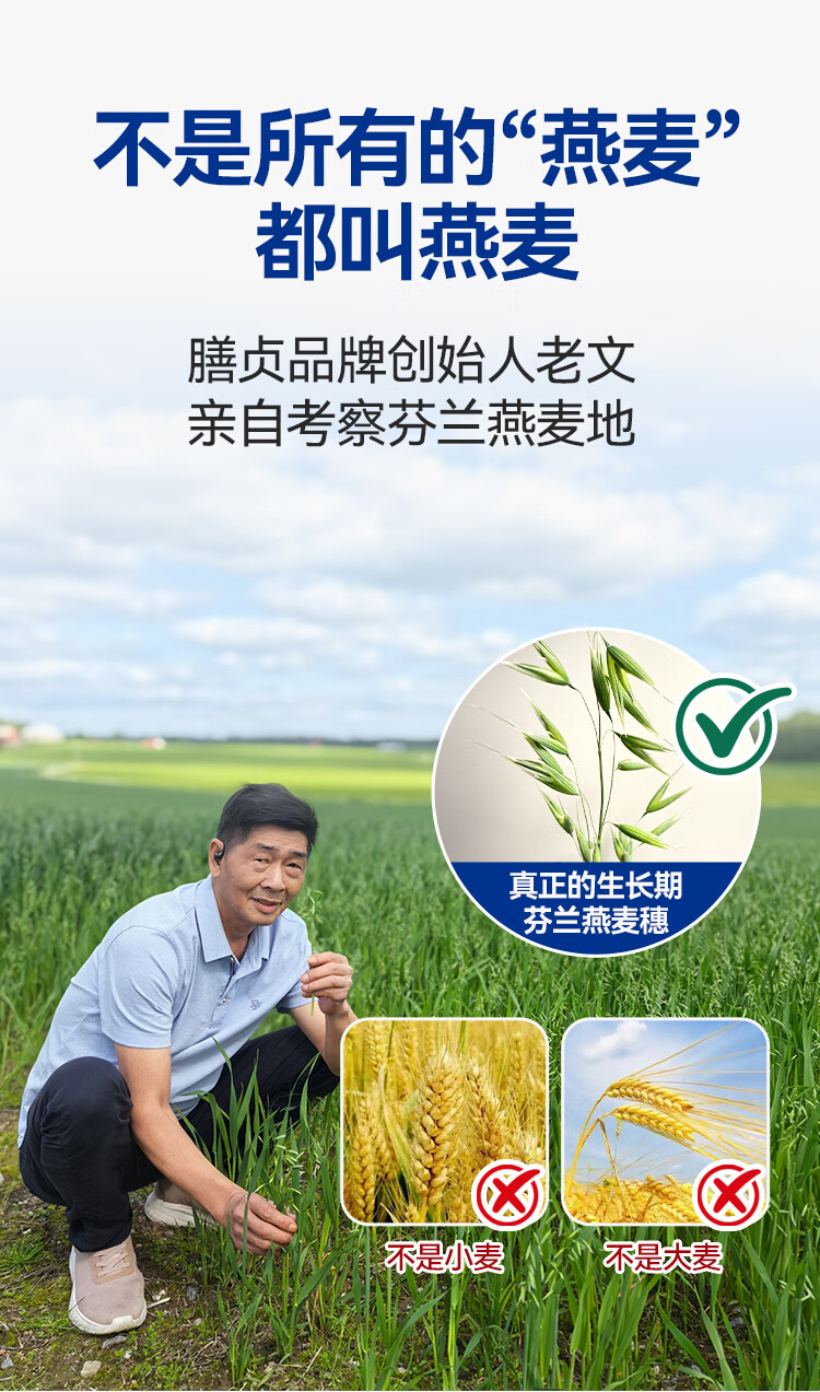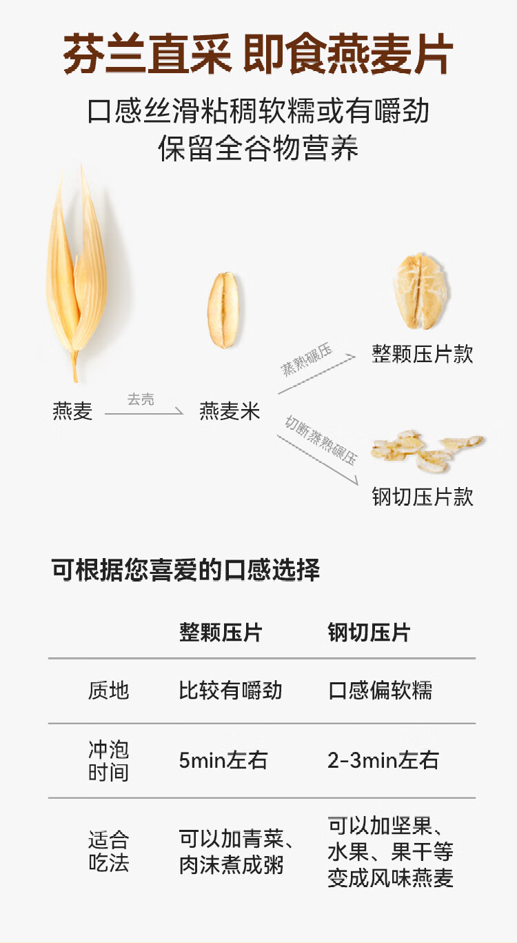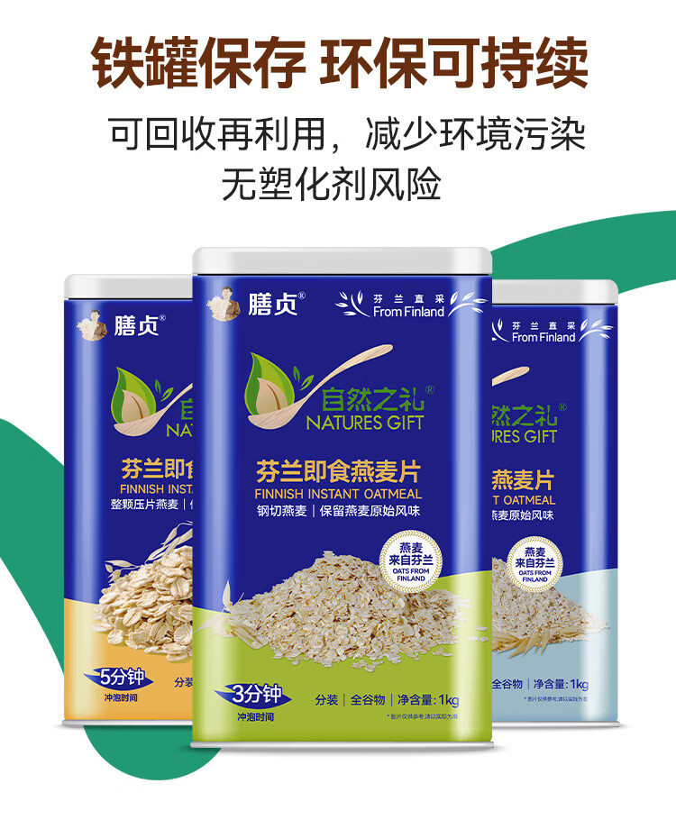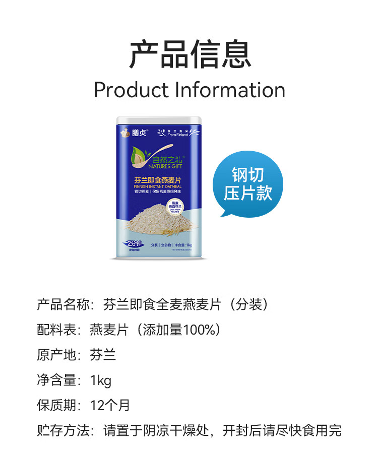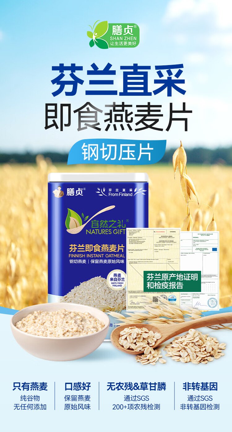 膳贞芬兰即食纯燕麦片1kg装直采芬兰燕麦免煮钢切燕麦早餐燕麦