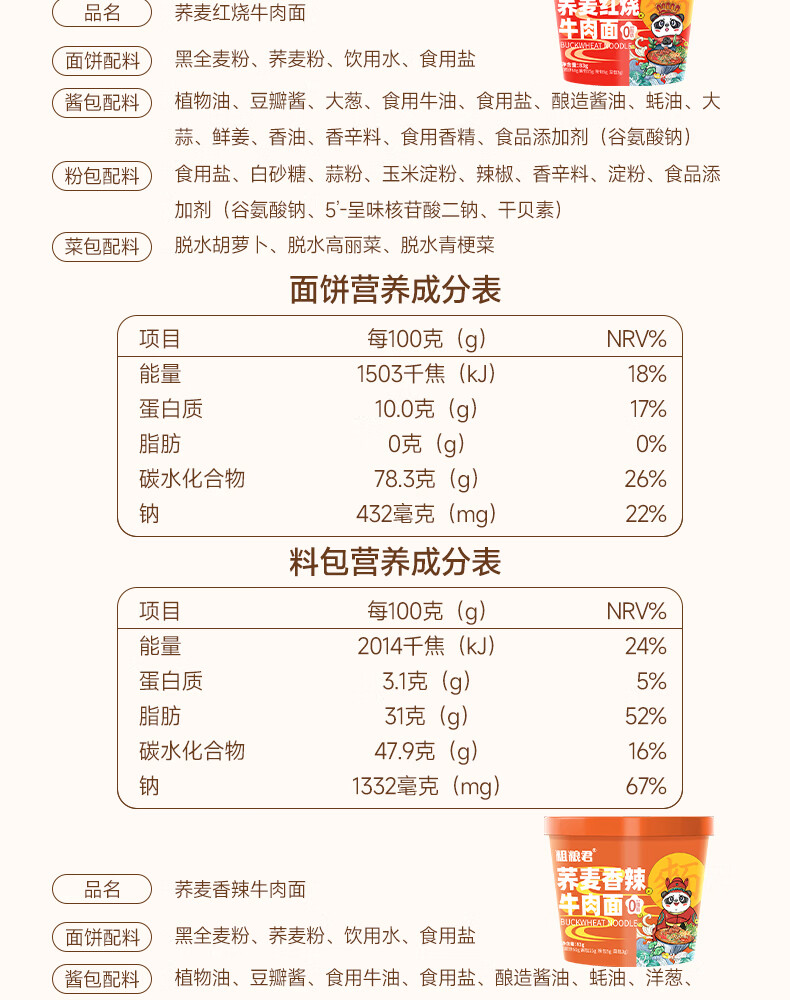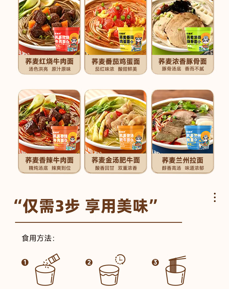 粗粮君荞麦方便面83g桶装减0脂肥肪代餐主食泡面带调料包免煮面饼非油炸 三桶混合装(可备注口味)