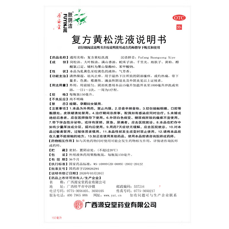 肤阴洁复方黄松洗液150ml/瓶外阴炎霉菌性阴道炎症瘙痒灼热痛妇科止痒用药