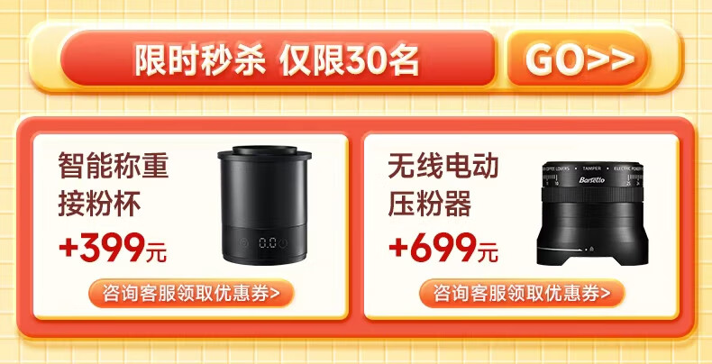 Barsetto【国家补贴15%】百胜图二代2S带称咖啡机双加热意式商用全半自动家用奶泡电动现磨豆研磨一体机 米白色