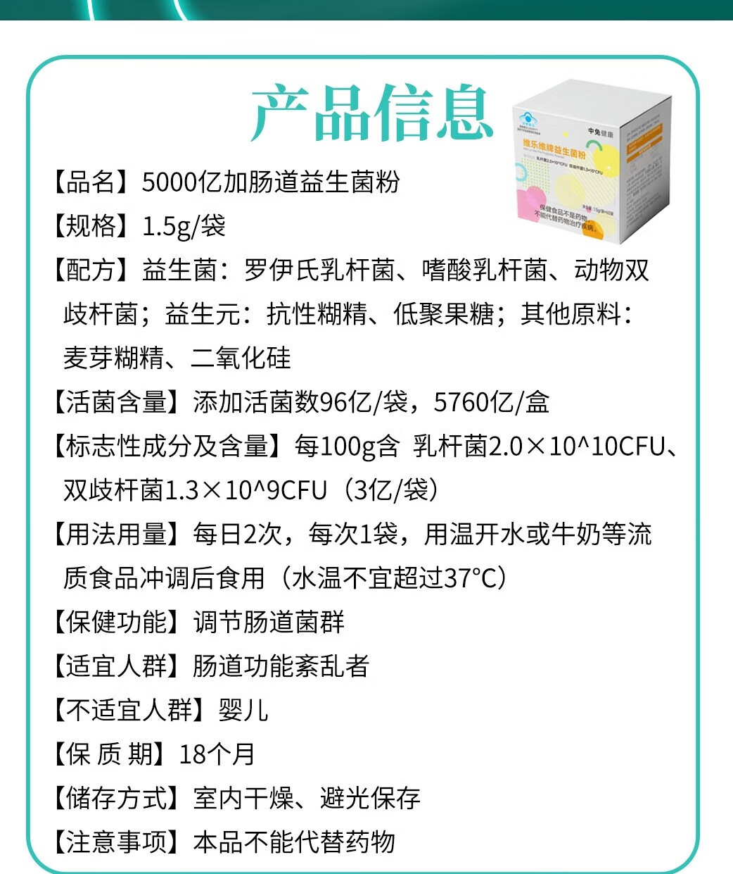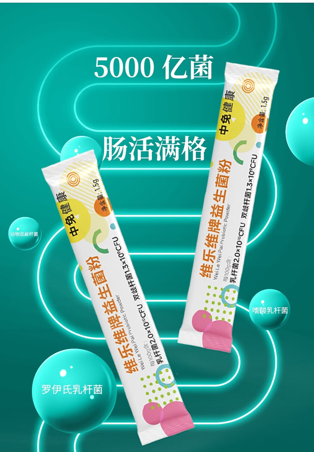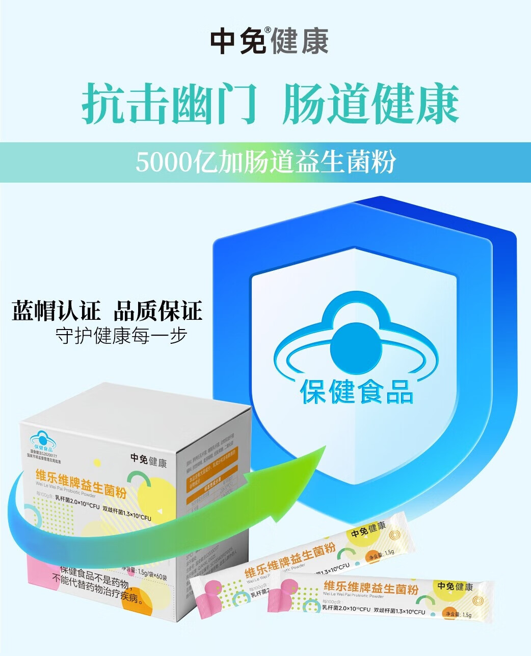 中免健康益生菌粉5000亿+CFU成人肠胃益生菌营养调理1.5g*60袋独立包装