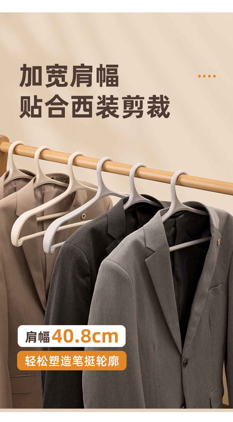 茶花(CHAHUA)衣架挂衣家用防肩角滑西装羊绒大衣架子晾衣服架无痕凉衣宽肩衣撑 3支 灰色